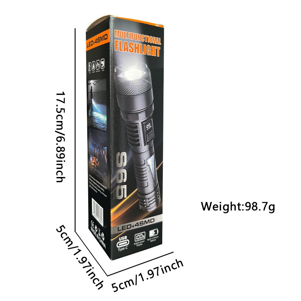 USB 강력한 LED 측면 조명 손전등 야외 장거리 집중 조명 손전등 디지털 디스플레이 가정용 충전식 광학 줌