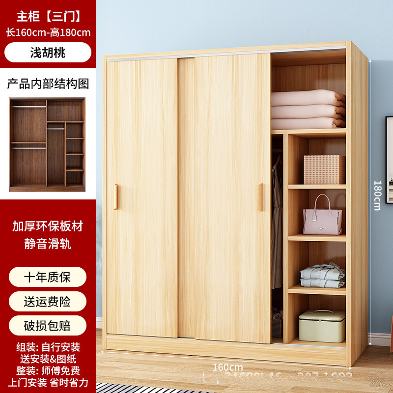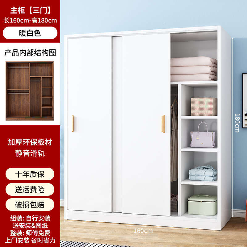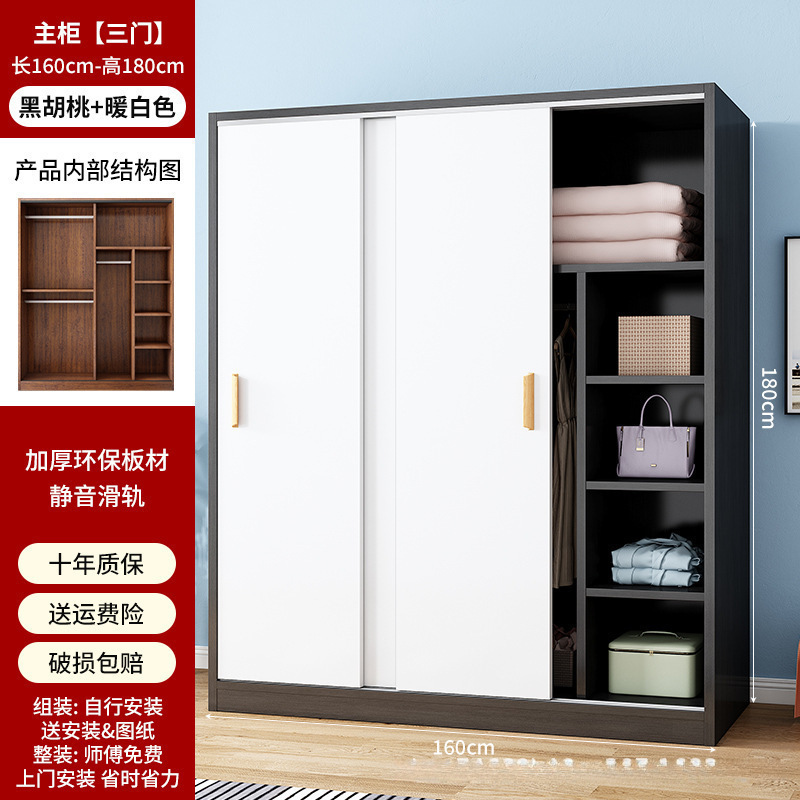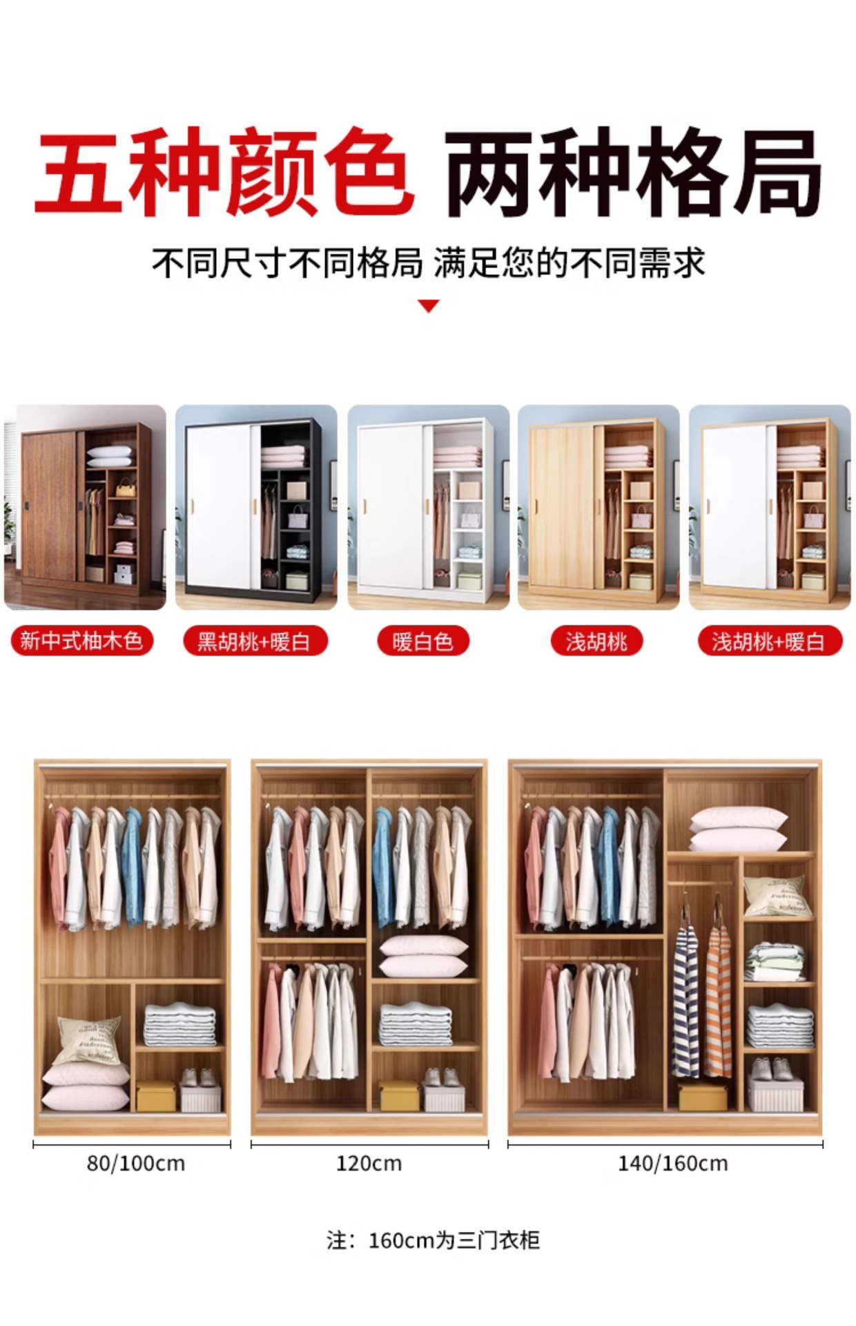 슬라이딩 도어 옷장 홈 침실 대형 옷장 임대 집 나무 보관 캐비닛 작은 아파트 간단한 어린이 옷장