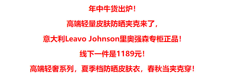 강력한 상품! 이탈리안 라이트 럭셔리 Leavo Johnson 레이저 홀 통기성 UPF50+ 자외선 차단 남성용 경량 재킷