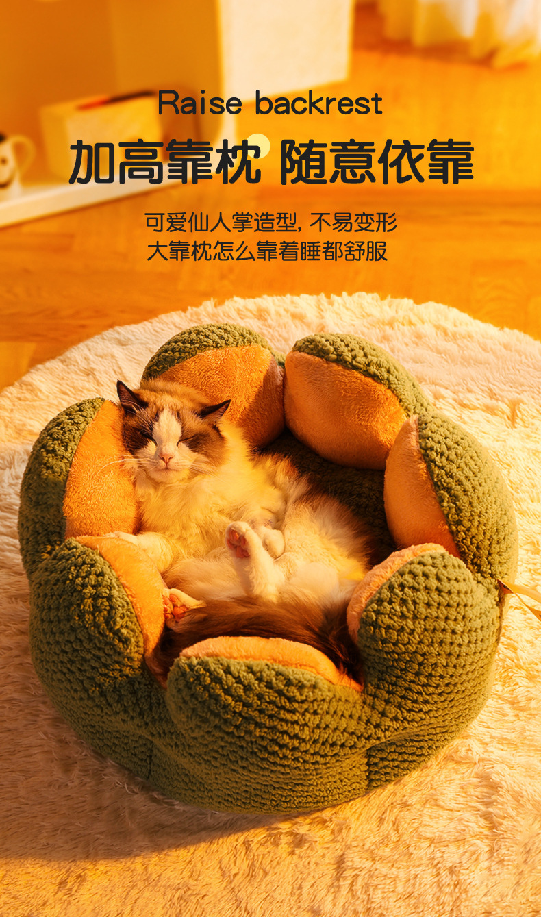 크로스미러 신형 선인장 꽃잎 모양의 애완동물 둥지, 대형 공간 개 매트, 부드러운 고양이 둥지, 따뜻한 개 둥지스토어 가기