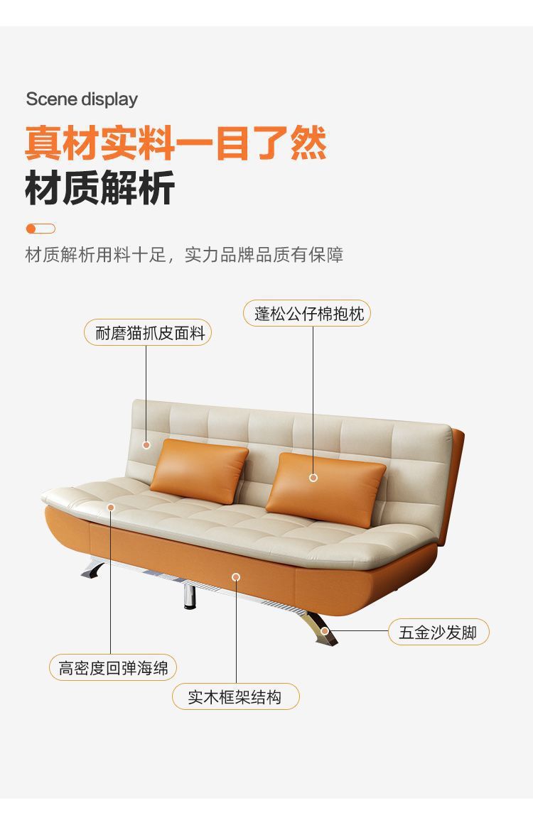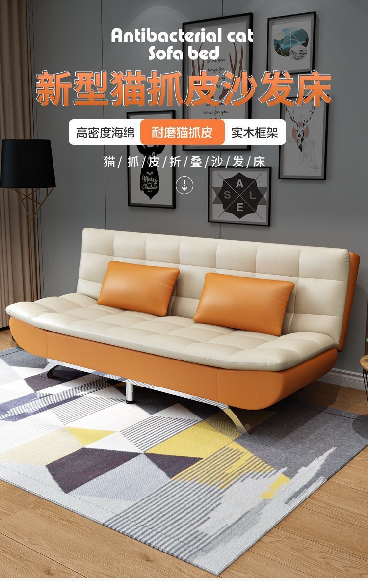 3중 고양이 스크래치 가죽 소파 베드 일체형 아파트 소형 거실 홈 다기능 노워시 소파 Foshan