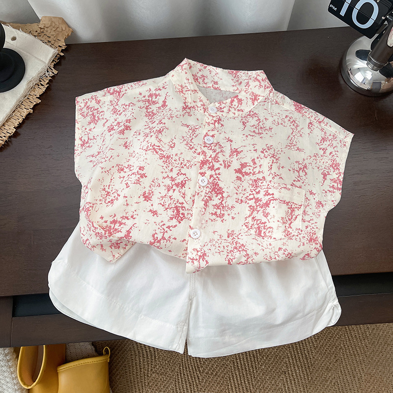 소년 여름 2025 새로운 스타일의 가볍고 편안한 반팔 캐주얼 셔츠 정장 루즈 반바지 중소형 어린이 투피스 세트스토어 가기