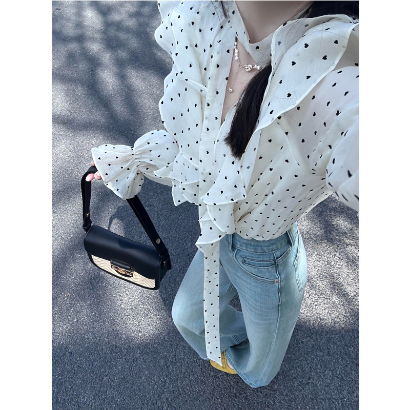 여성을 위한 러플 도트 무늬 긴팔 얇은 자외선 차단 셔츠, 독특하고 시크한 셔츠, 2025 여름 한국 탑스토어 가기
