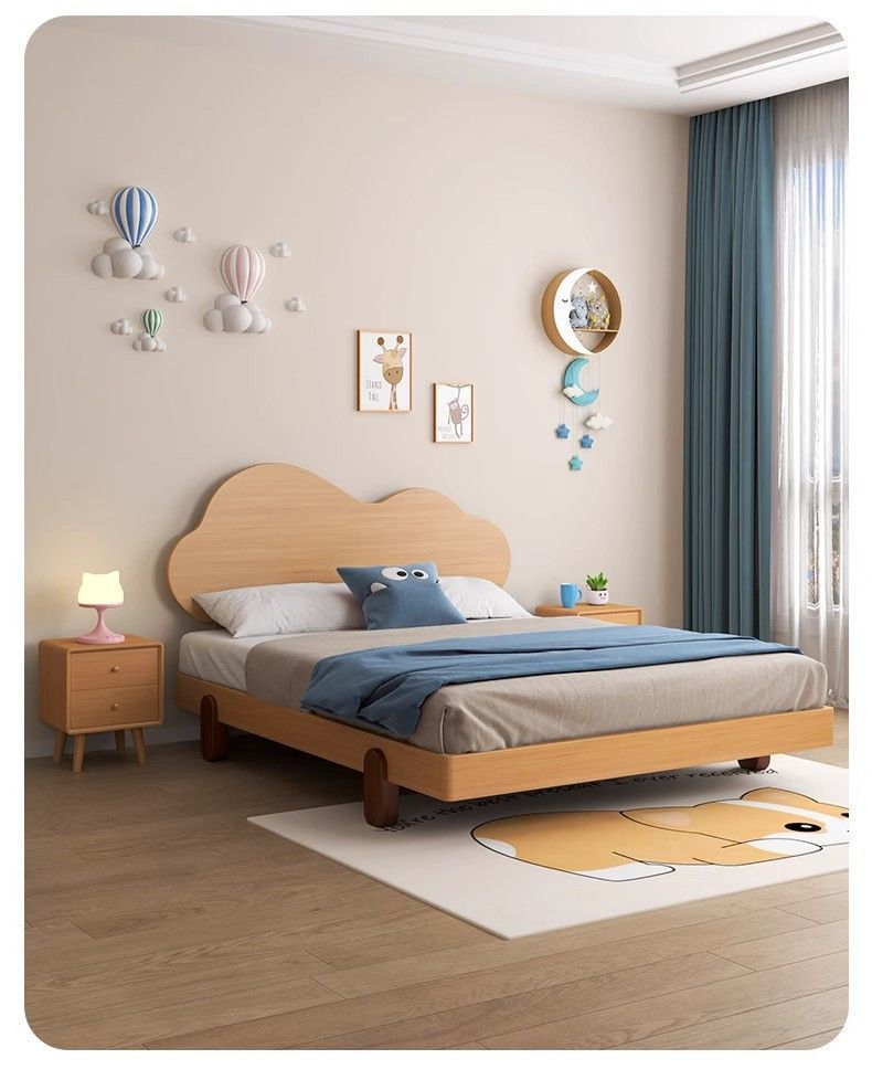 모든 단단한 나무 어린이 침대 소년 소녀 침실 1.5m 귀여운 공주 침대 1.2m 싱글 침대 십대 너도밤 나무 침대