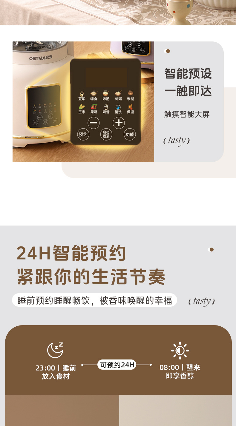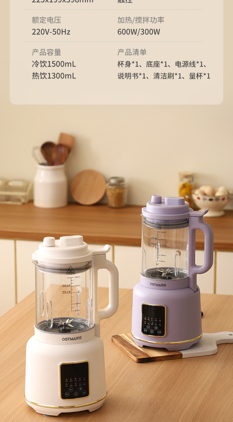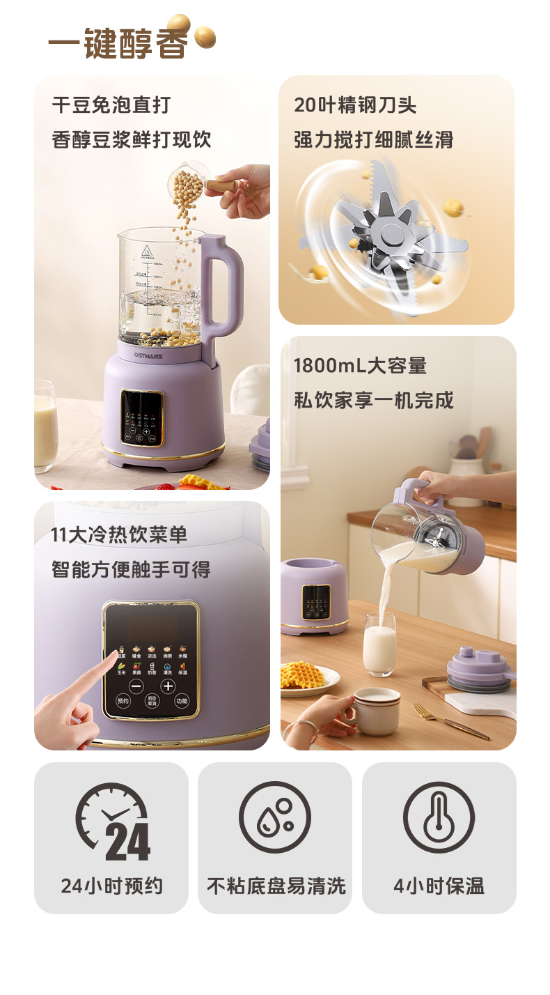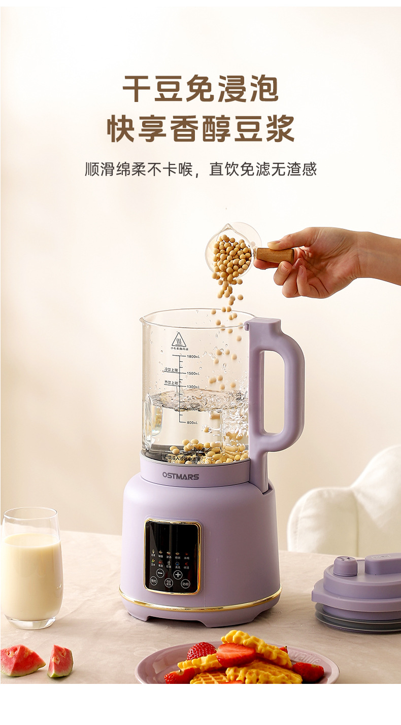 OSTMARS 새로운 두유 기계 지능형 벽 파괴 조리 기계 가정용 1.8L 라이트 사운드 완전 자동 다기능스토어 가기