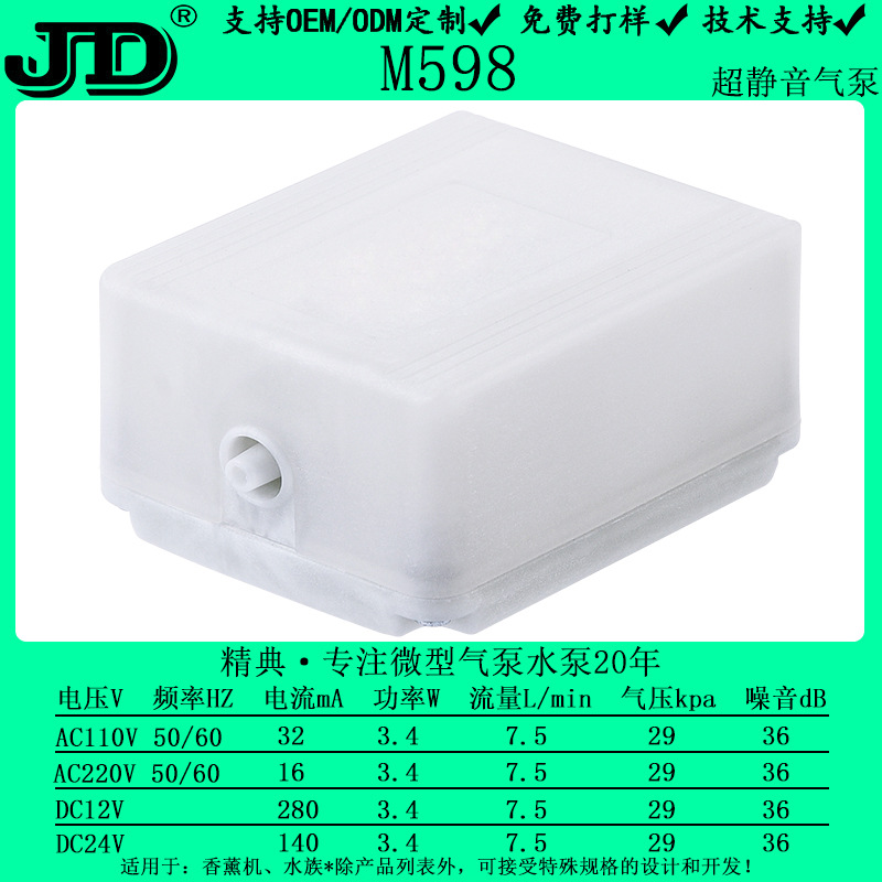 JD 클래식 초저소음 에어펌프는 오존 살균, 수경재배, 수족관, 아로마 디퓨저에 적합합니다.