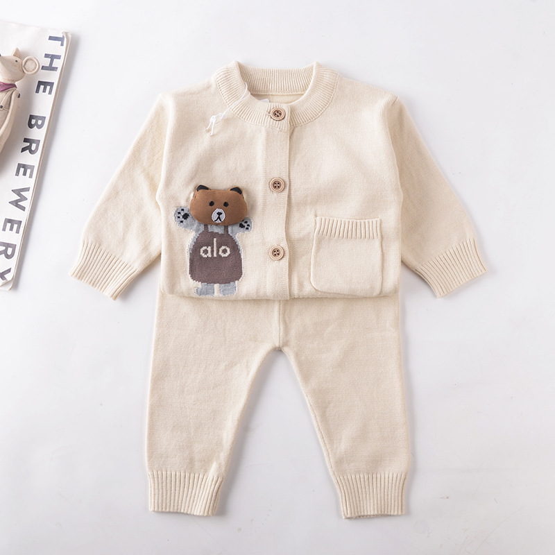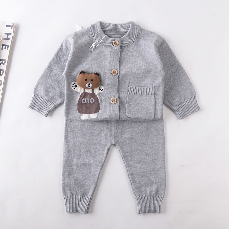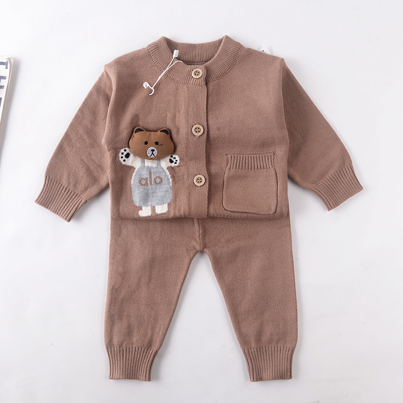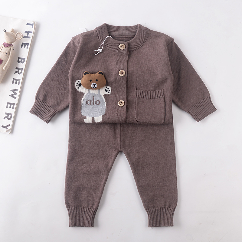 아기 소년 스웨터 유아 카디건 스웨터 바지 정장 가을 싱글 브레스트 유행 라운드 넥 어린이 투피스 세트 도매