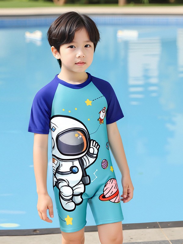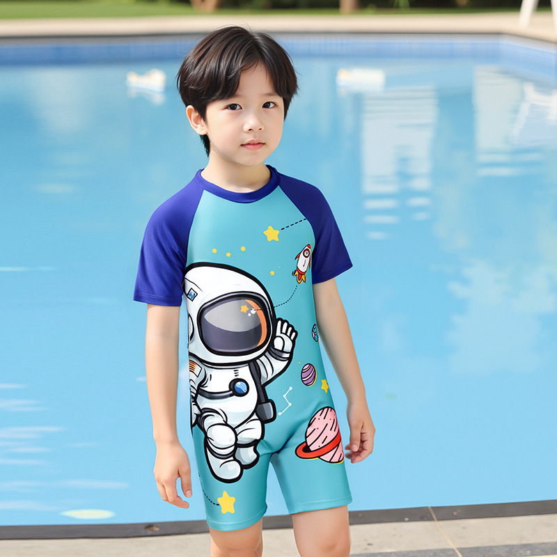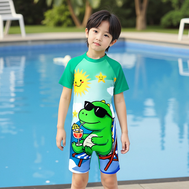 새로운 어린이 수영복 귀여운 만화 소년 원피스 소형, 중형 및 대형 어린이 수영복 아기 원피스 수영복 도매