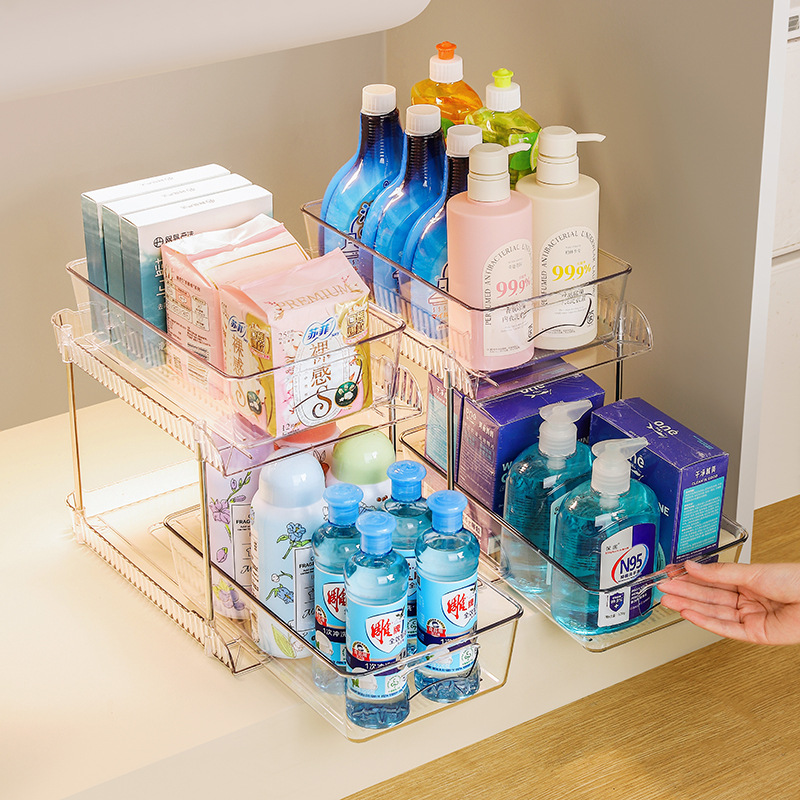 새로운 싱크대 하부 수납선반, 주방 및 욕실 캐비닛 내장형 슬라이드식 수납선반, 욕실 조리대 이중 수납선반