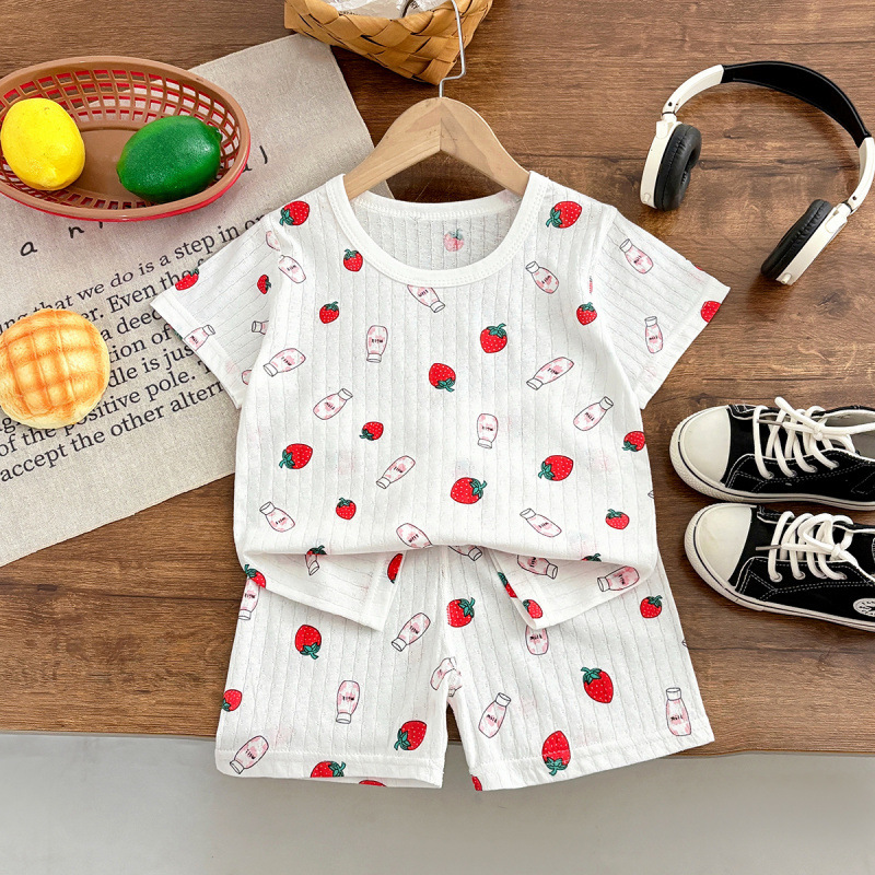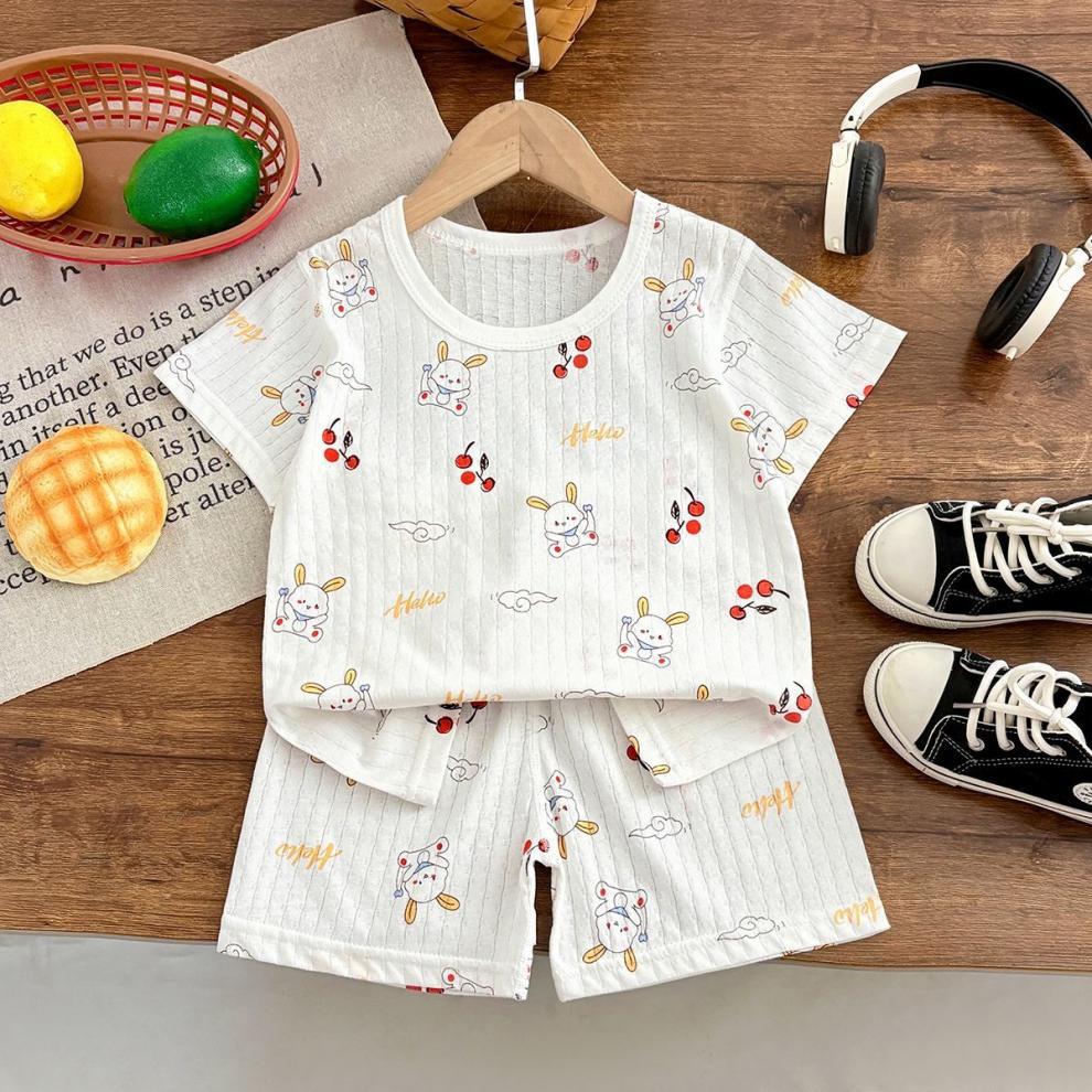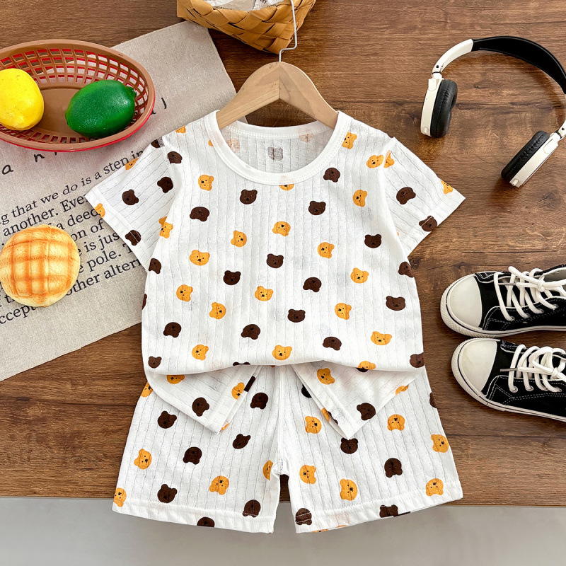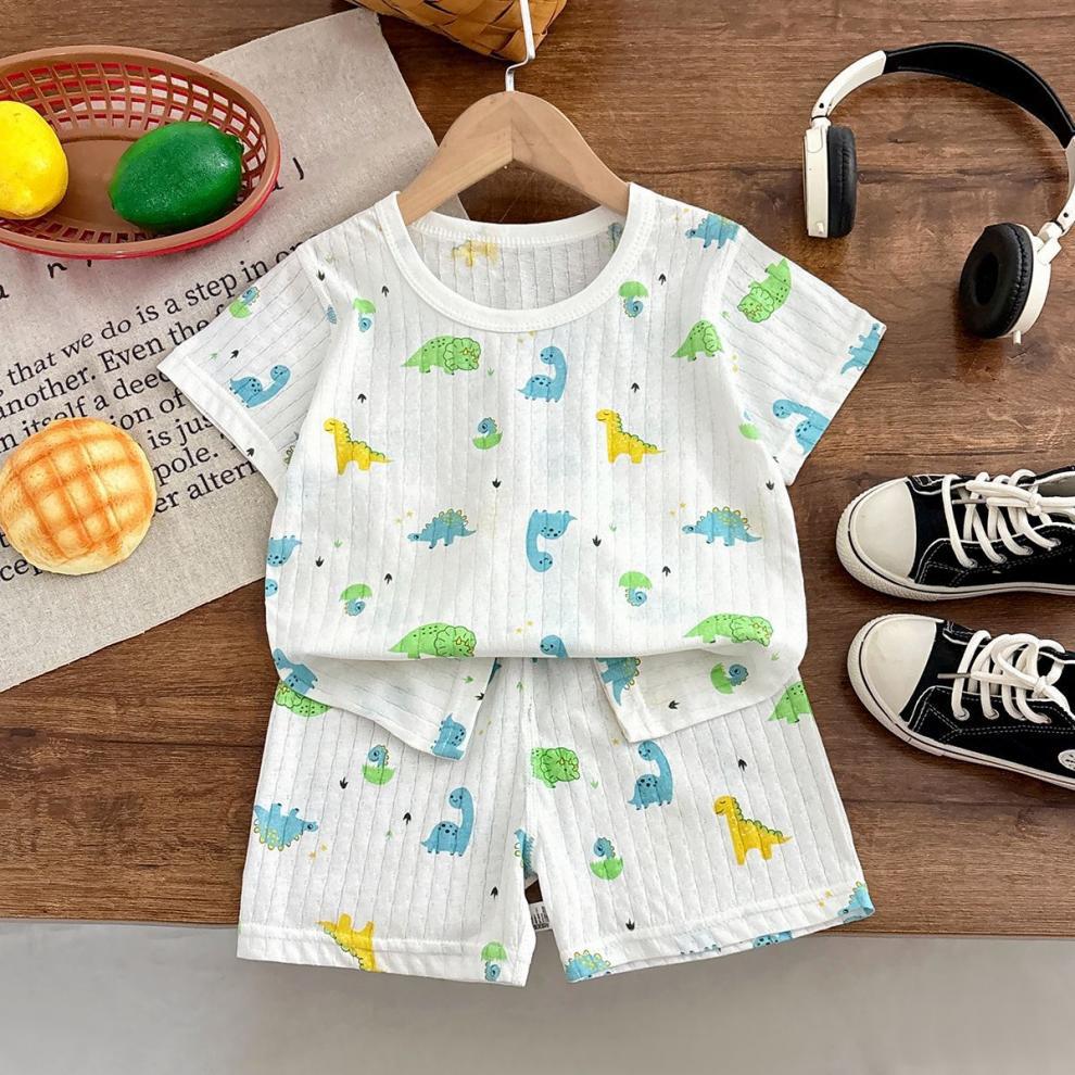 소년 잠옷 반팔 어린이 면화 얇은 소녀 반바지 여름 아기 소년 가정 의류 에어컨 정장스토어 가기