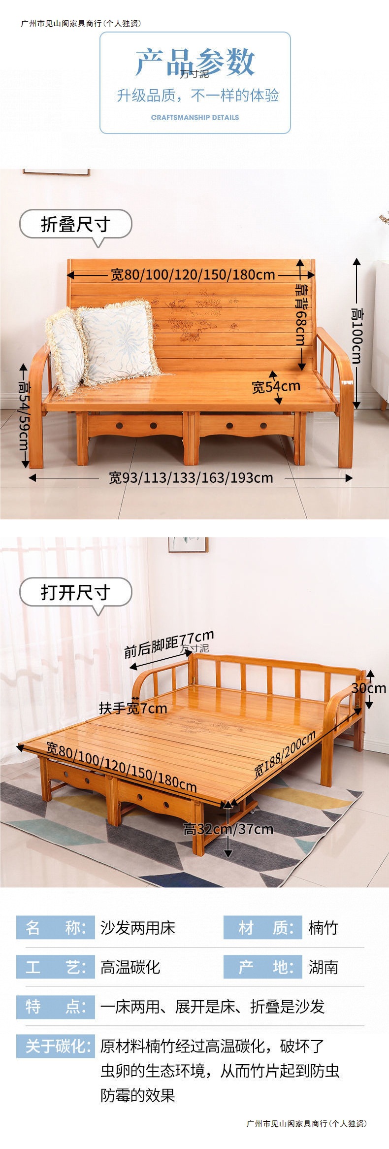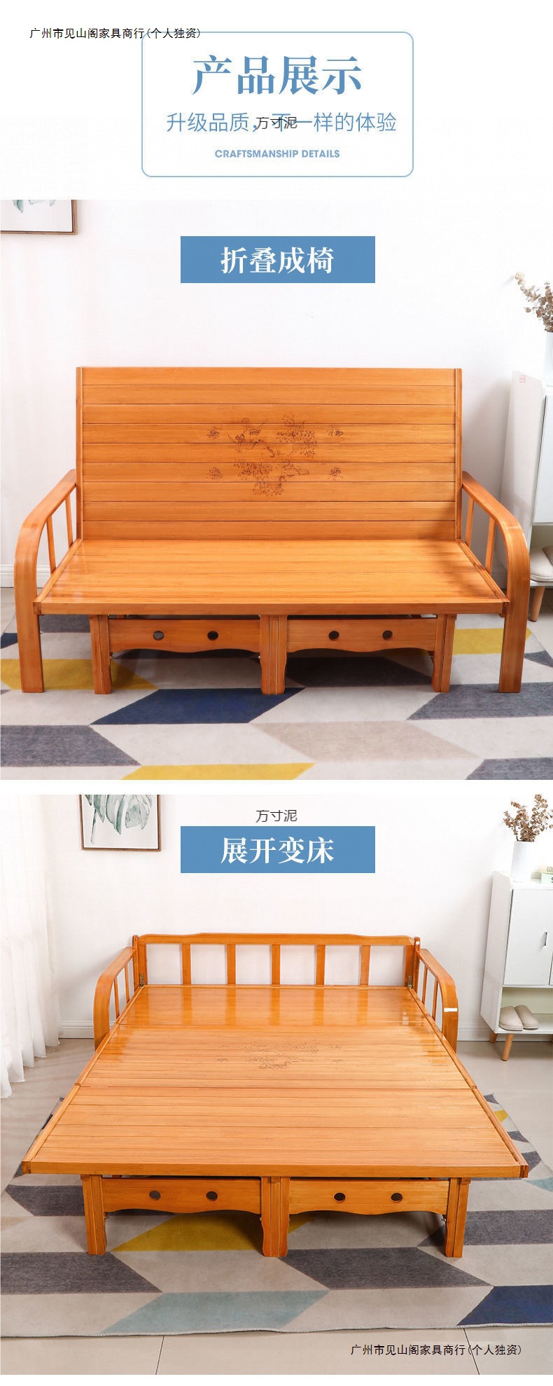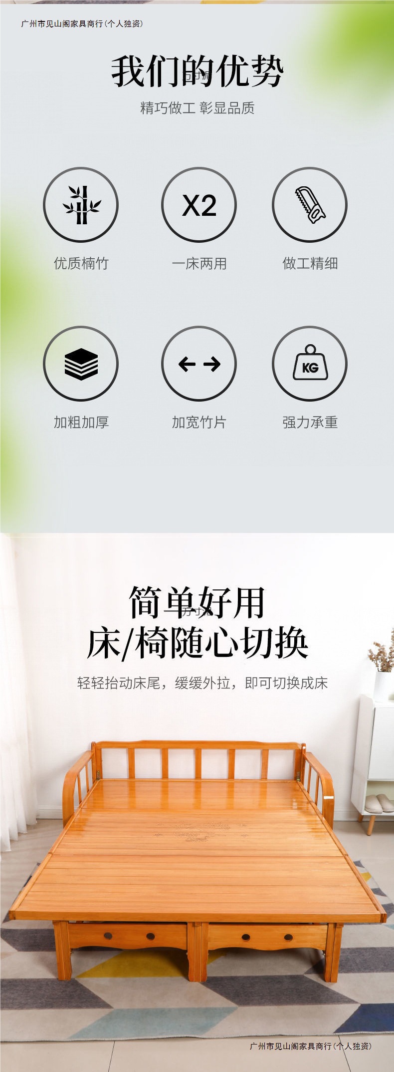 접이식 침대 다기능 가정용 점심 시간 이중 목적 대나무 소파 침대 단단한 나무 싱글 간이 침대 경제적 인 낮잠 시원한 침대스토어 가기
