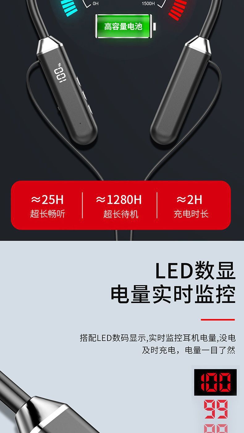 블루투스 헤드셋 새로운 2025 무선 목 장착형, 장기간 착용 가능, 통증 없음, 남성과 여성을 위한 스포츠 및 달리기 특수, 대용량 배터리