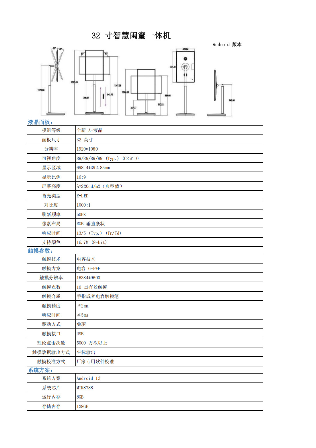 Bestie Machine LED HDR 휴대용 TV 32인치 TV 대형 스크린 터치 회전 디스플레이