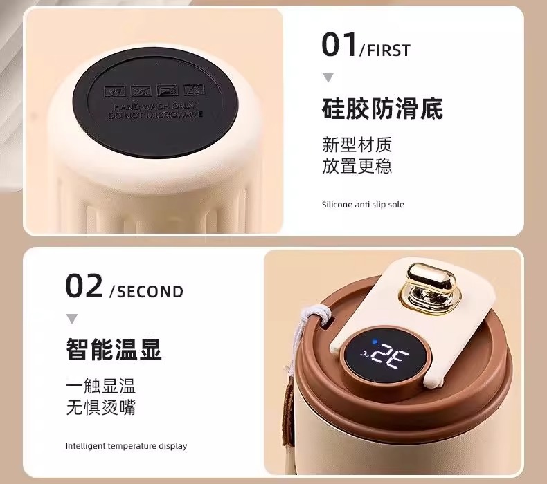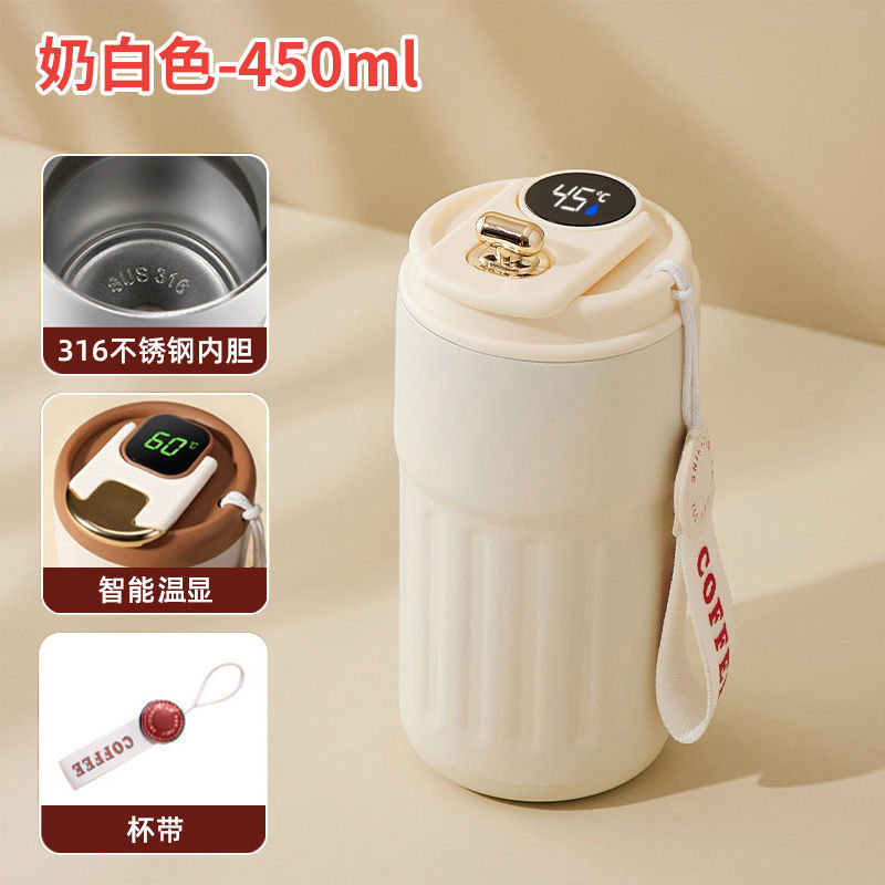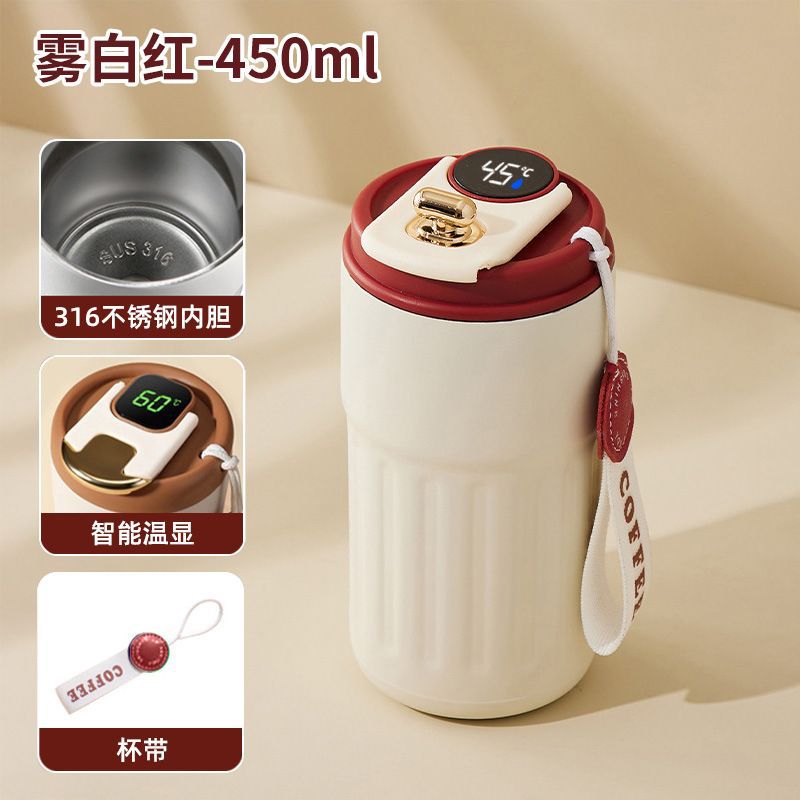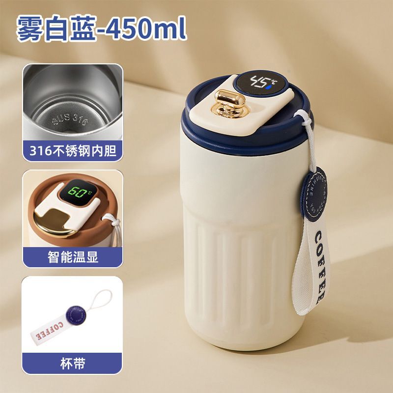새로운 스마트 온도 표시 304 스테인리스 보온병 남녀 공용 커피컵 고급스러운 휴대용 심플 물컵