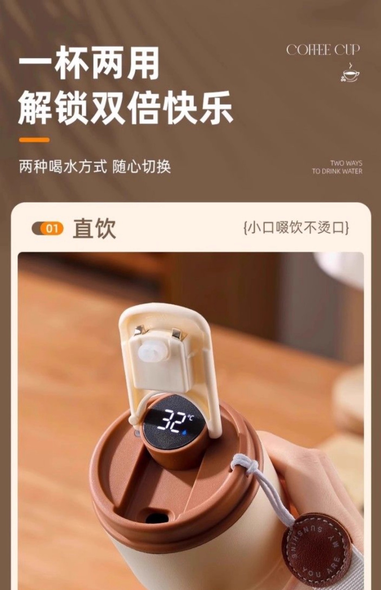 새로운 스마트 온도 표시 304 스테인리스 보온병 남녀 공용 커피컵 고급스러운 휴대용 심플 물컵스토어 가기