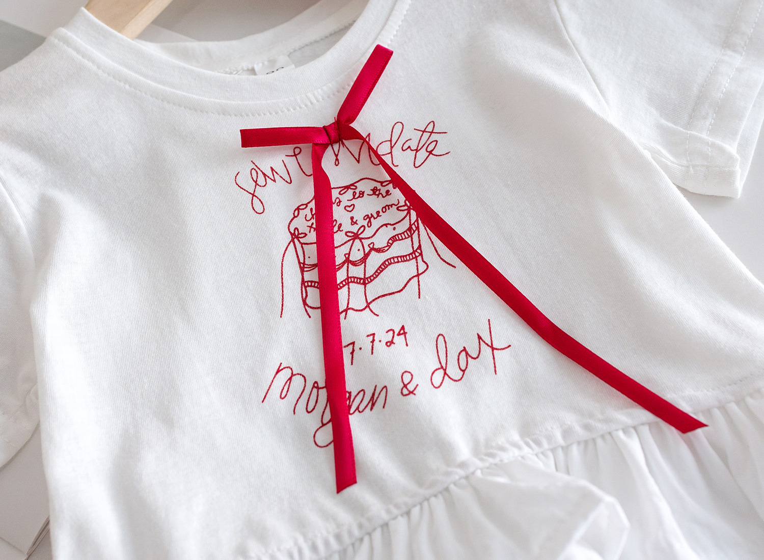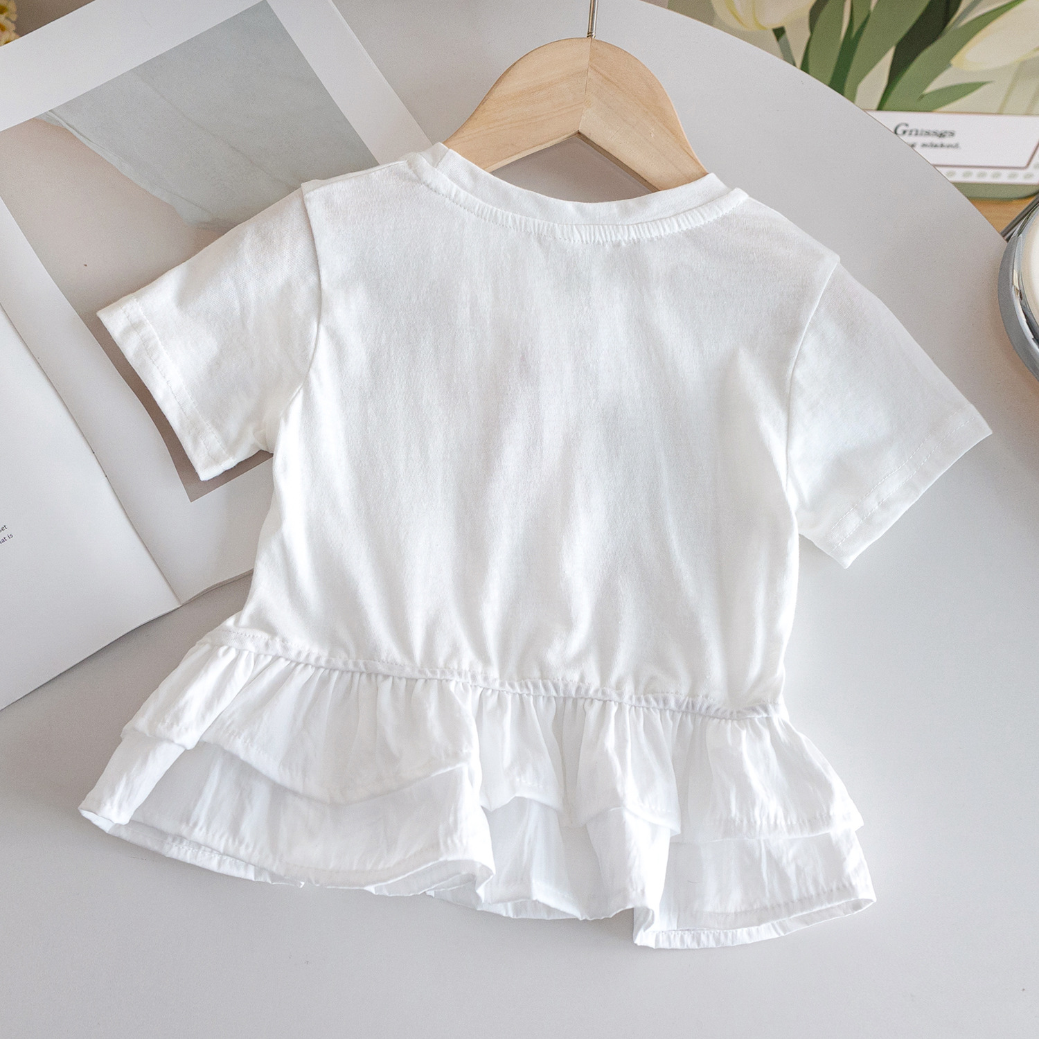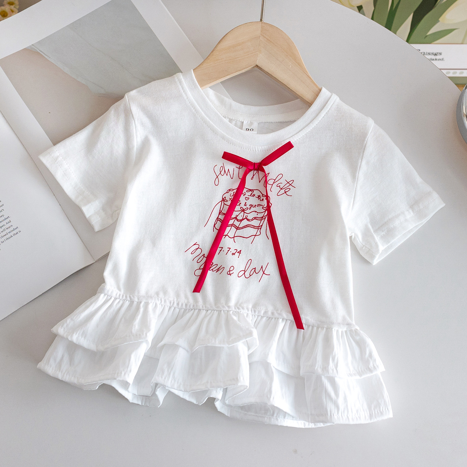 여아 여름 상의, 반팔 아동용 티셔츠, 프린트가 귀여운 리본, 투투 스커트, 레이스 베이비 탑, 트렌디스토어 가기
