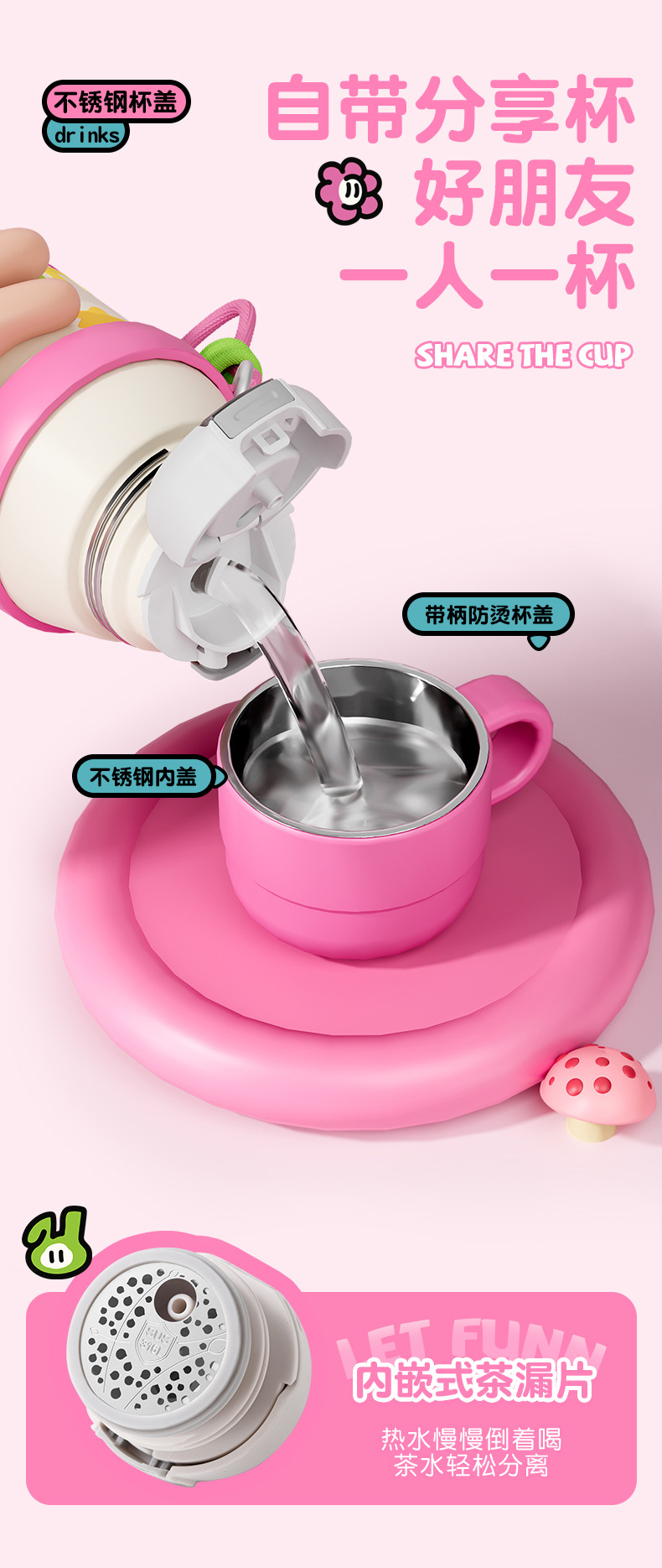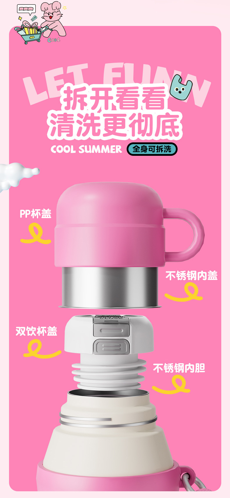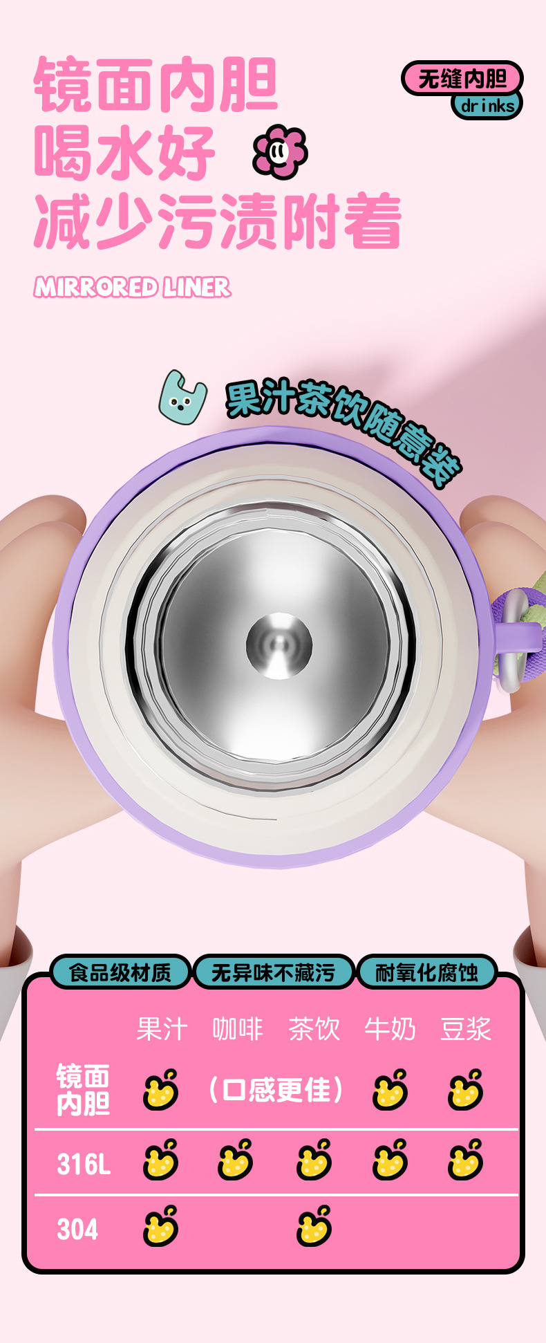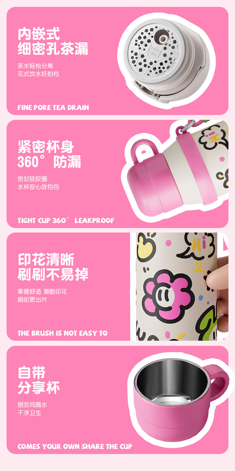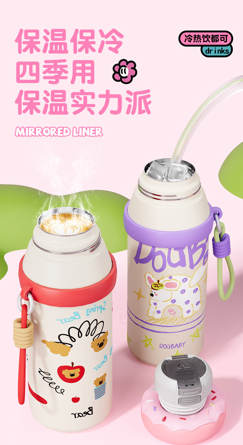 만화 귀여운 낙서 여성용 보온병 컵 스테인레스 스틸 어린이 주전자 고가 야외 휴대용 더블 마시는 밀짚 컵