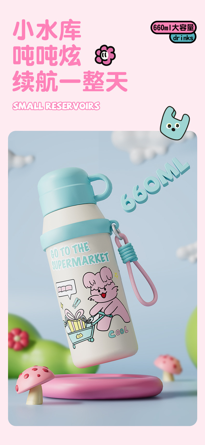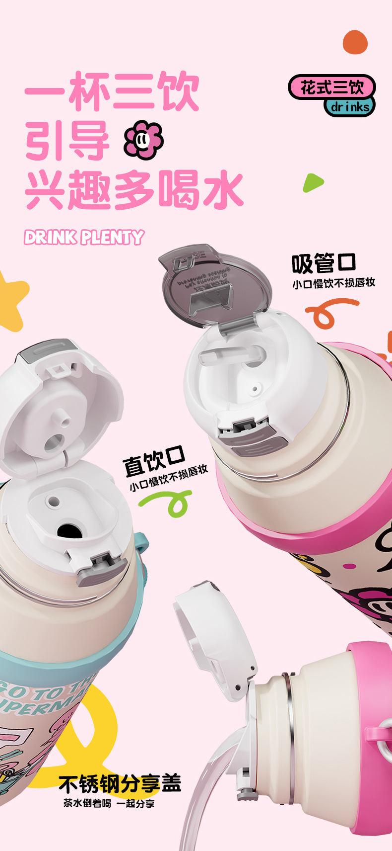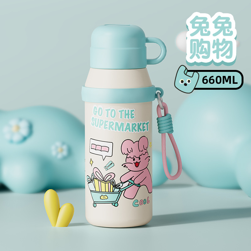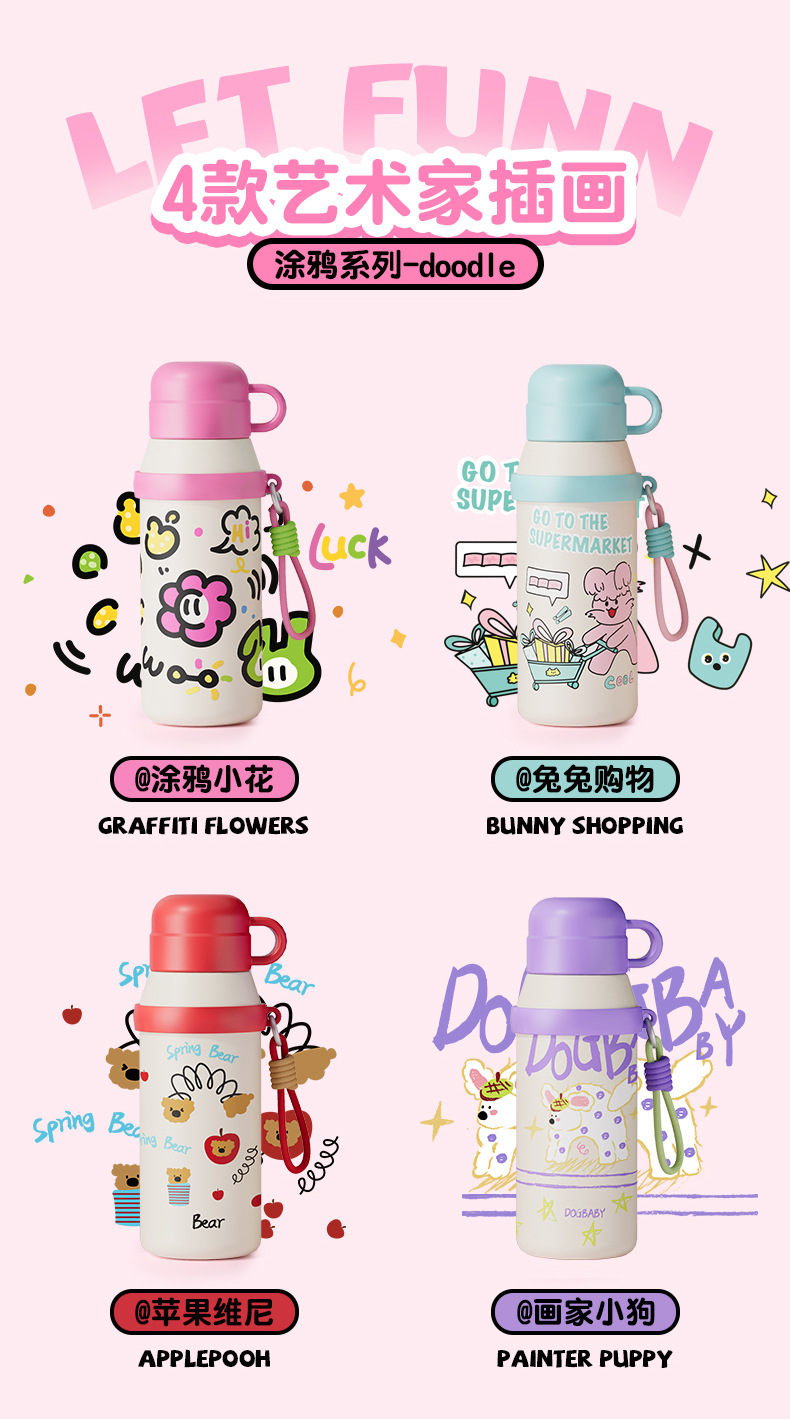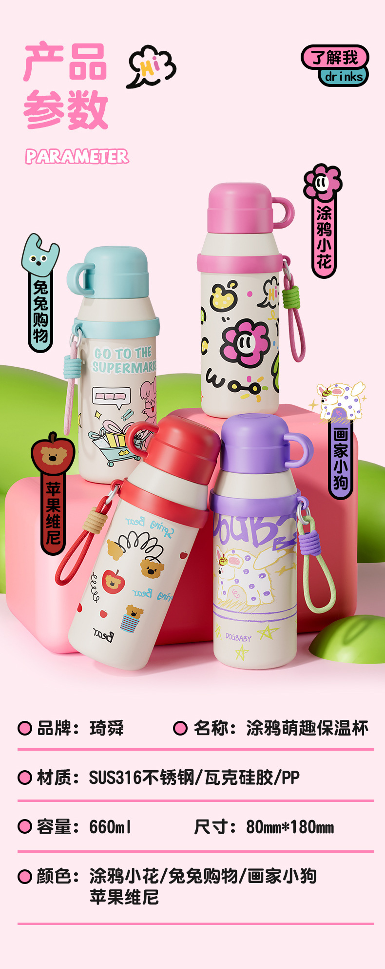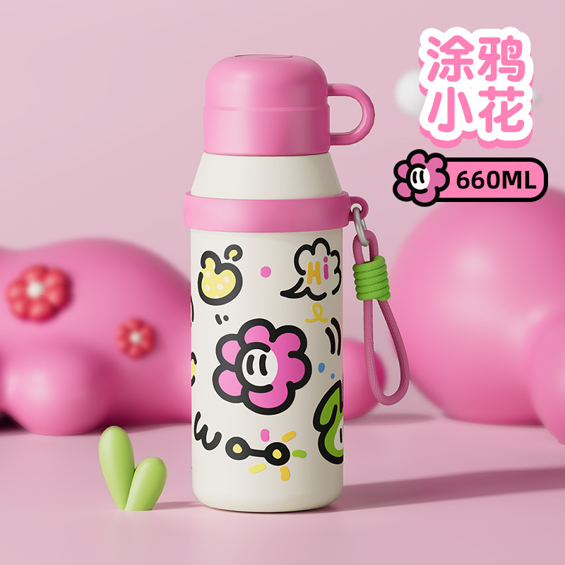 만화 귀여운 낙서 여성용 보온병 컵 스테인레스 스틸 어린이 주전자 고가 야외 휴대용 더블 마시는 밀짚 컵스토어 가기