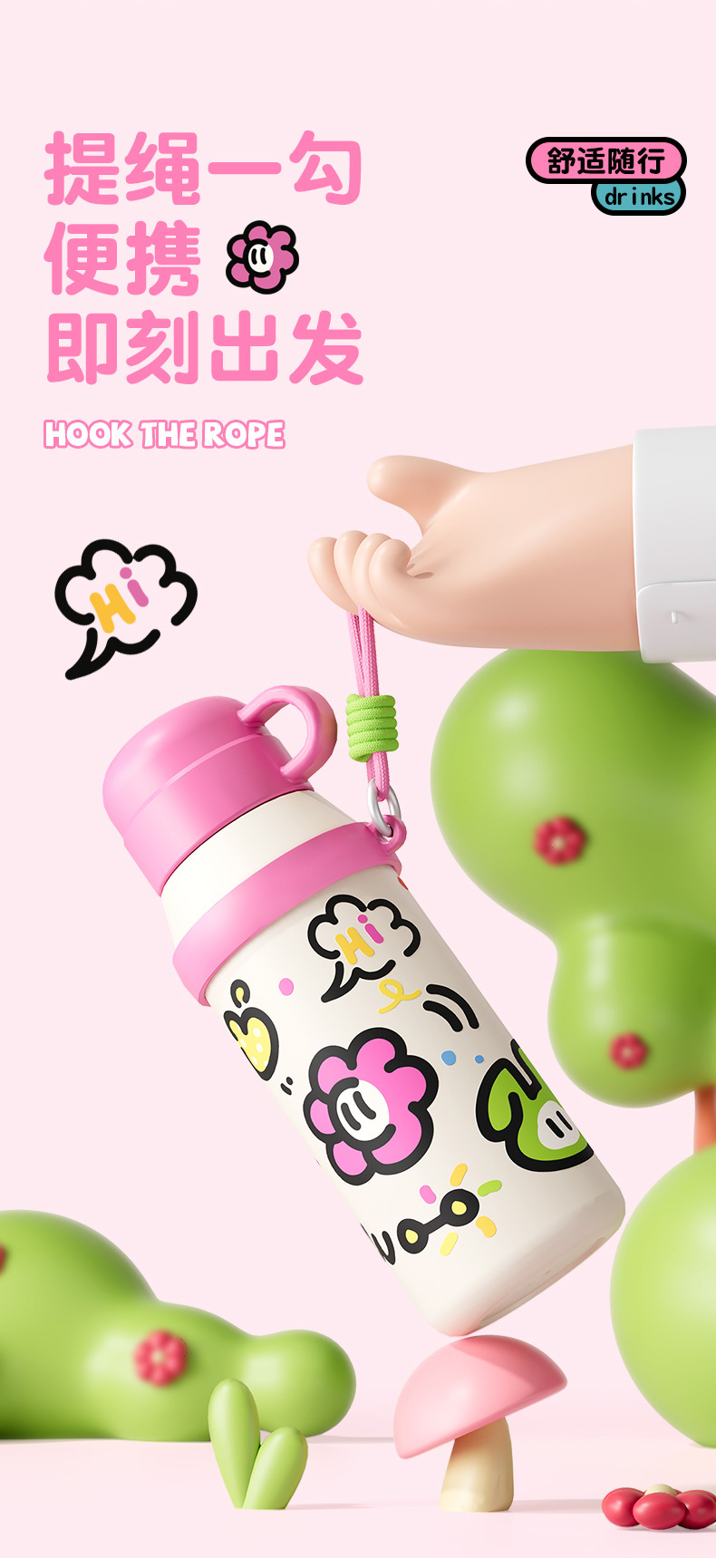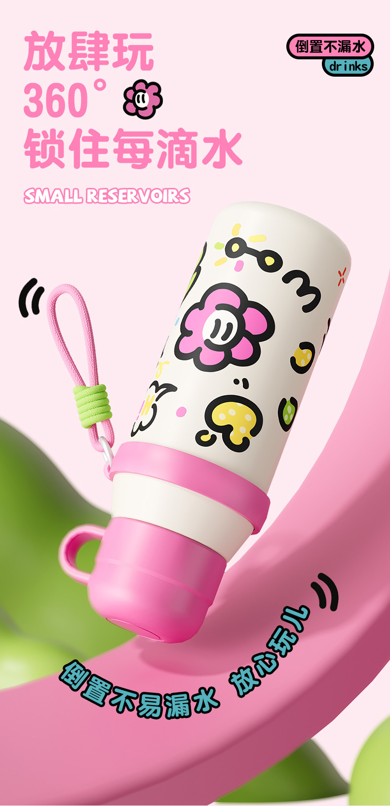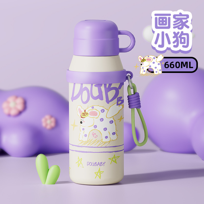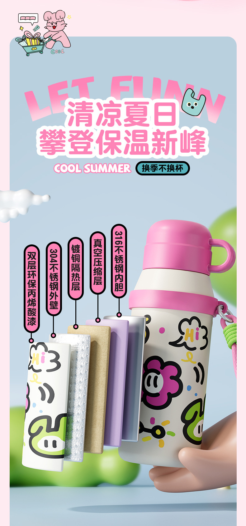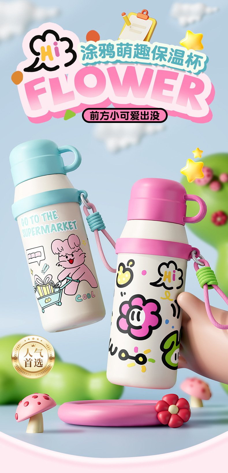 만화 귀여운 낙서 여성용 보온병 컵 스테인레스 스틸 어린이 주전자 고가 야외 휴대용 더블 마시는 밀짚 컵스토어 가기