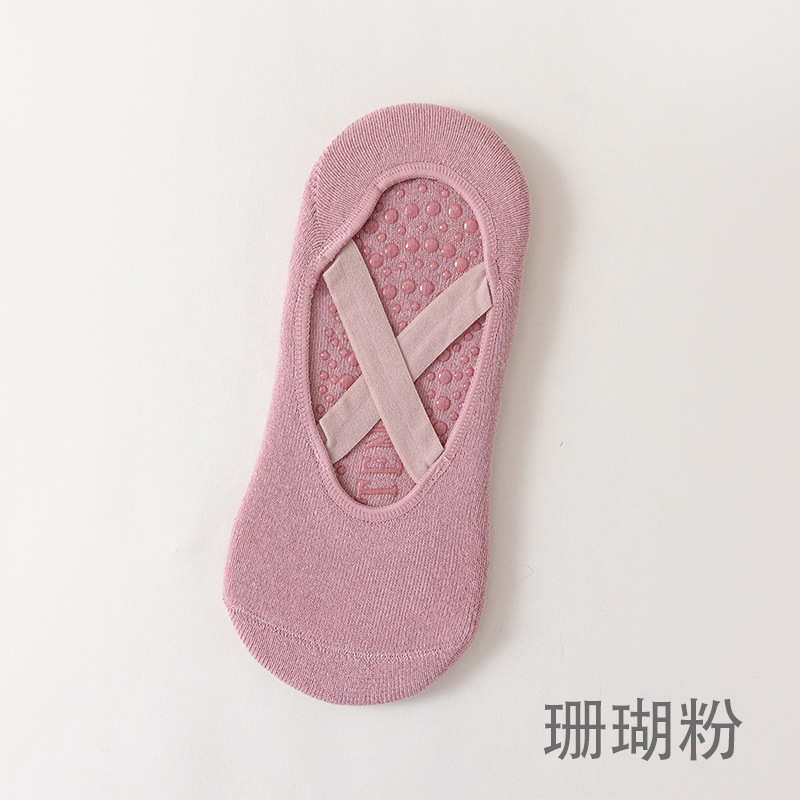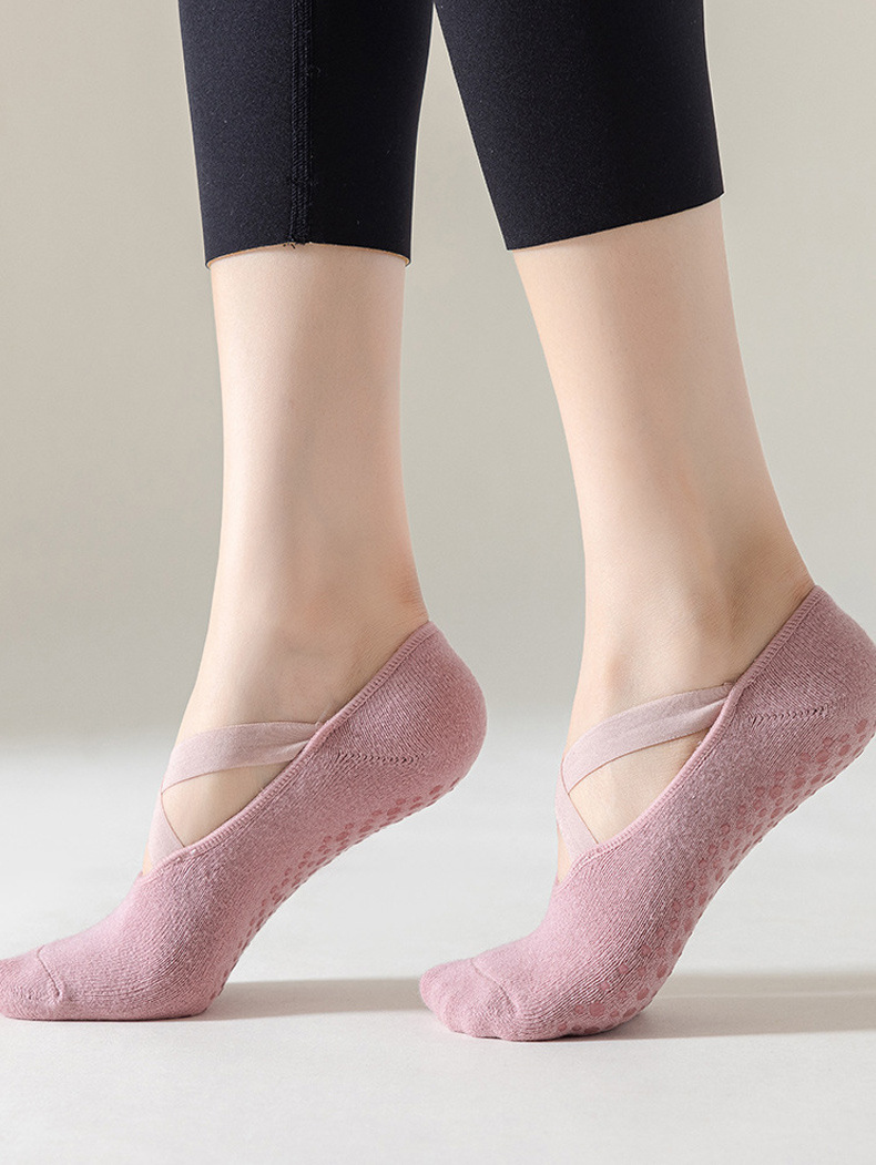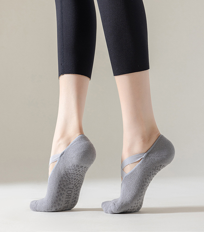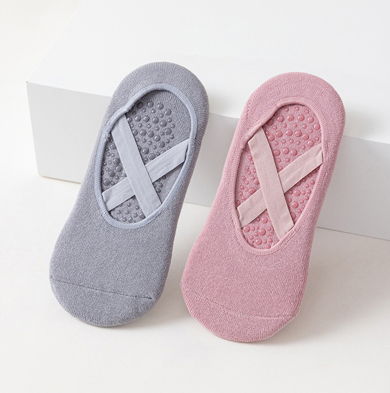 국경을 넘는 인기 상품 여성용 요가 양말, 실내 필라테스 운동용 바닥 양말, 단색 보호용 스트랩 피트니스 스포츠 양말스토어 가기