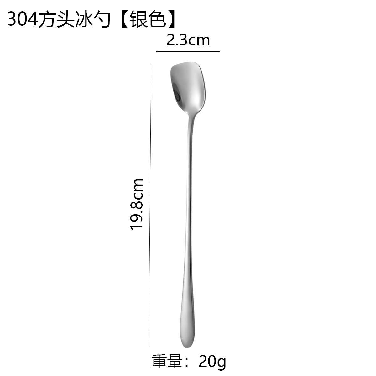 304 스테인레스 스틸 스퀘어 헤드 스푼 롱 핸들 커피 교반 스푼 바 아이스 스푼 바 스푼 홈 허니 디저트 스푼 크로스 보더스토어 가기