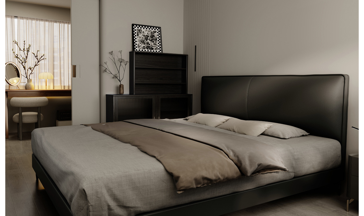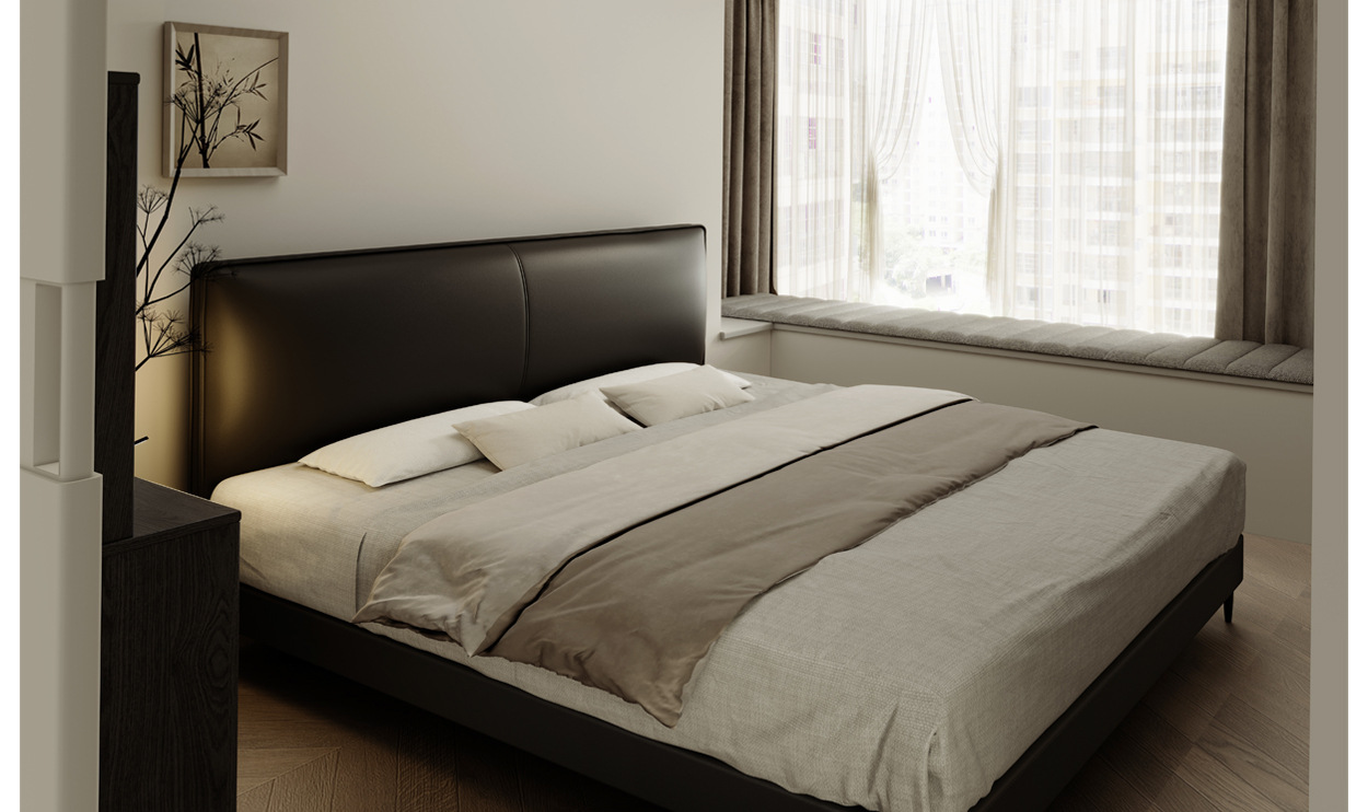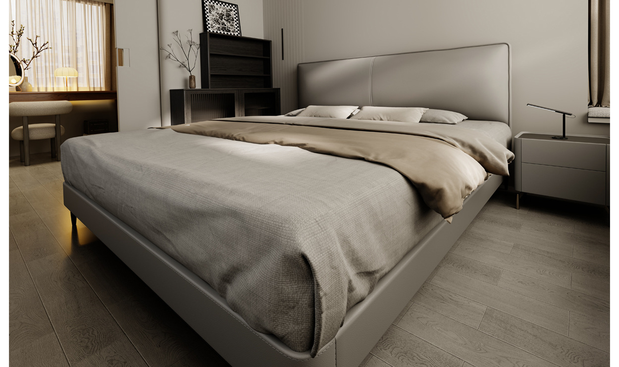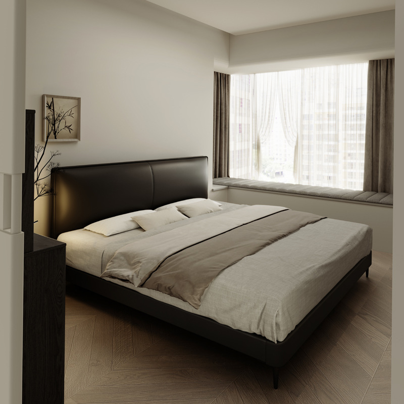 이탈리아 미니멀리스트 정품 가죽 침대 옆 레이어 소가죽 초박형 침대 옆 작은 아파트 전체 가장자리 서스펜션 전기 스마트 침대 프레임