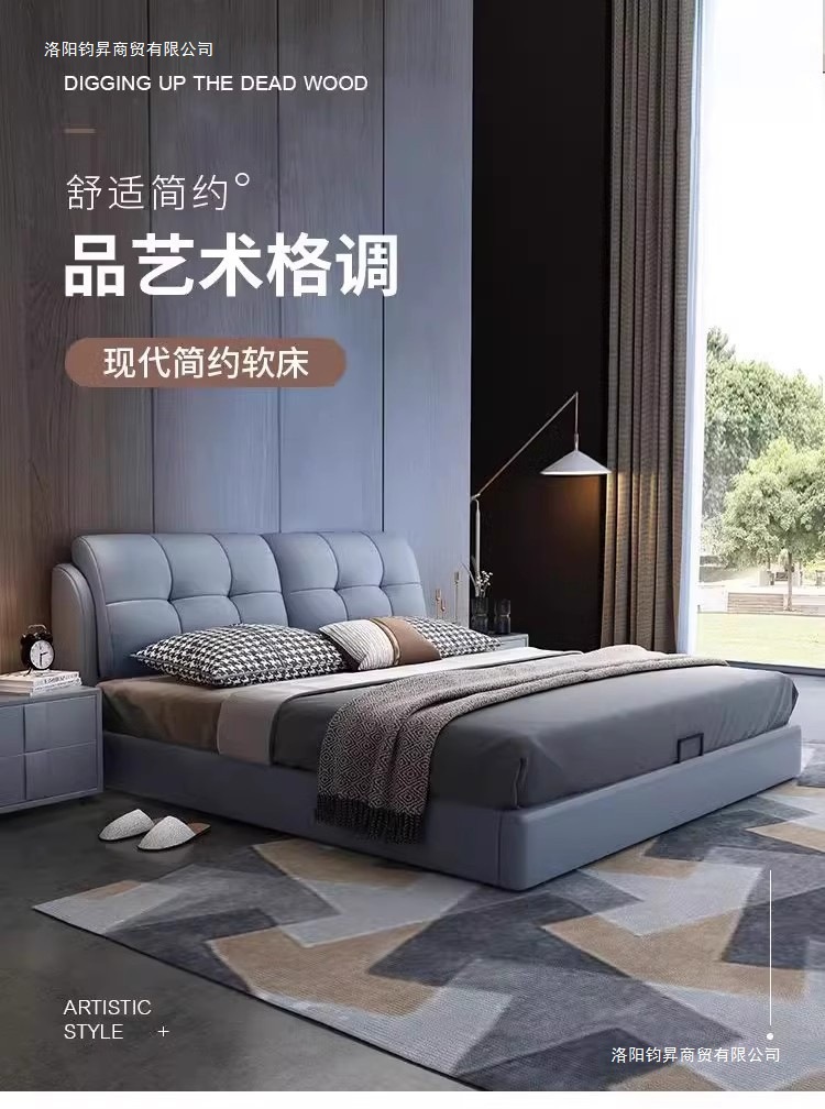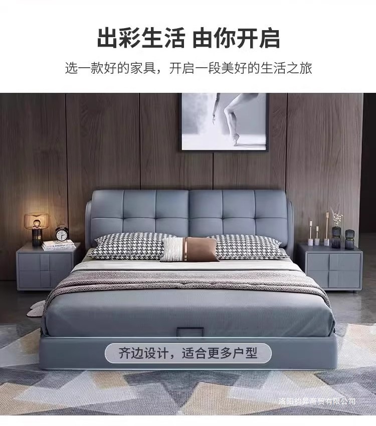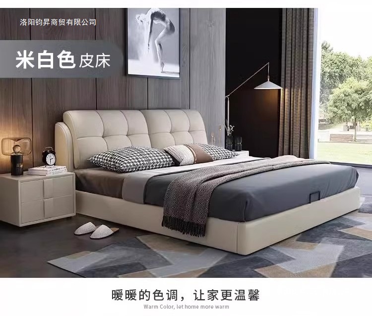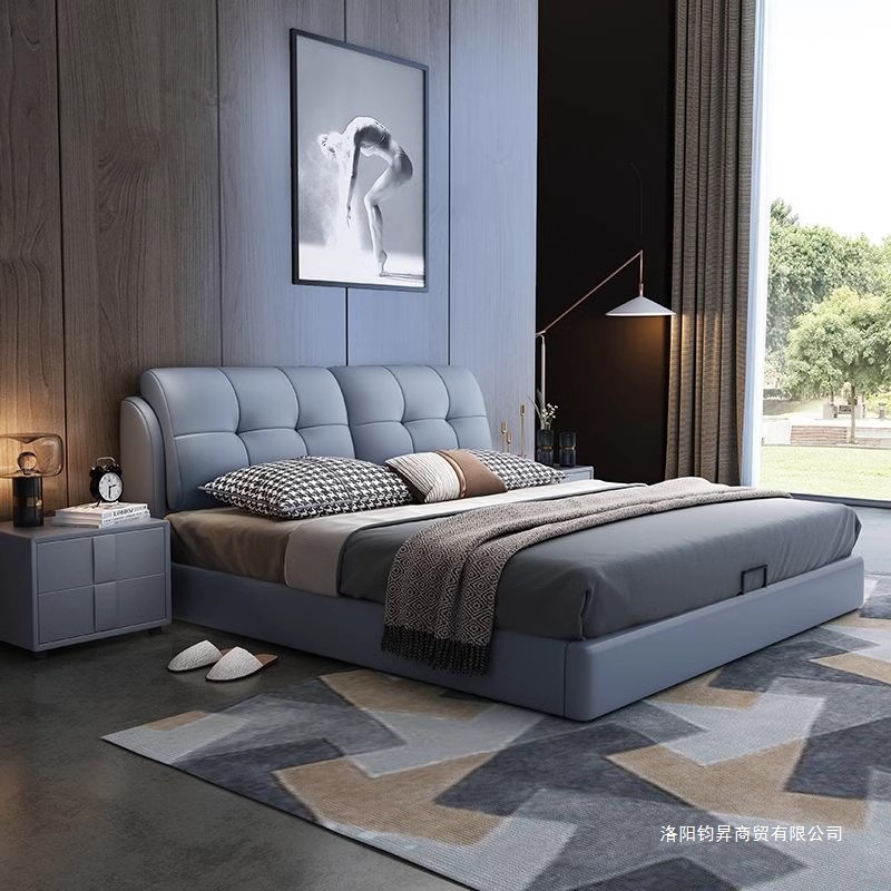 새로운 마스터 침실 침대 가죽 하이 엔드 분위기 현대 미니멀리스트 침대 미터 더블 침대 웨딩 침대 홈 침실 침대스토어 가기