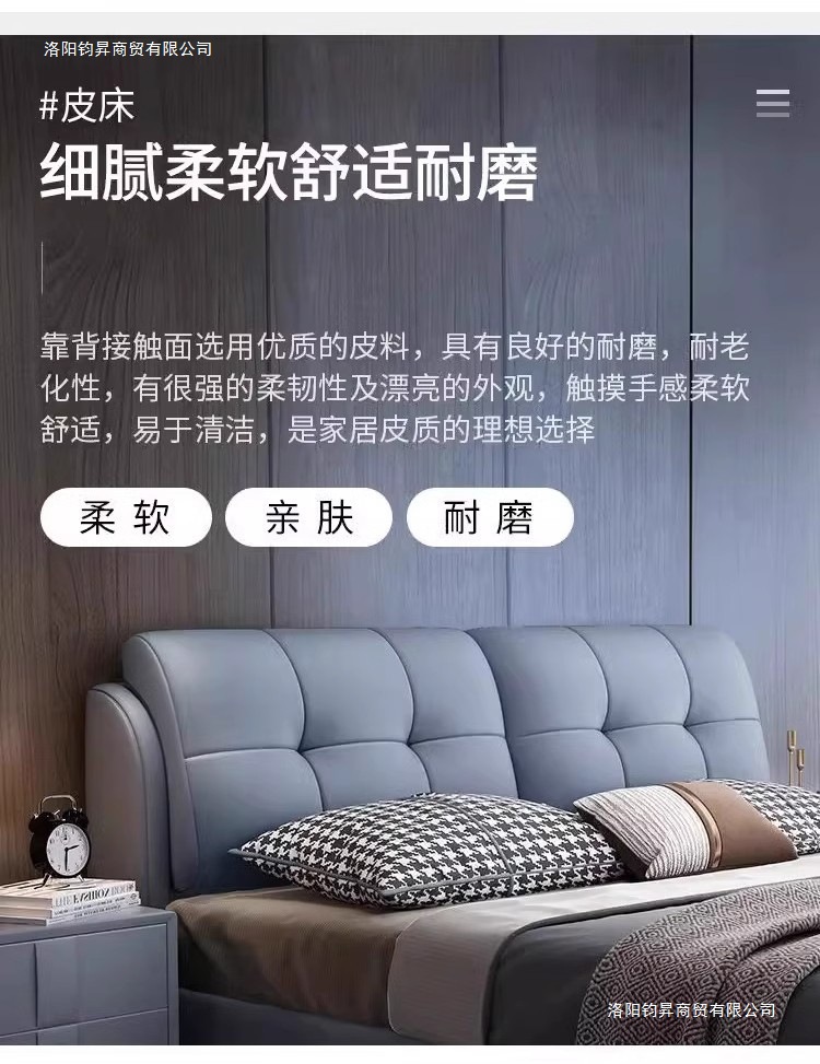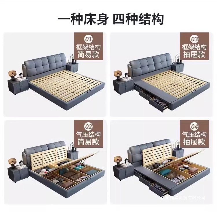 • 고급 가죽 침대 + 겨울 및 여름 겸용 아이스 실크 매트 매트리스 + 캐비닛 2개