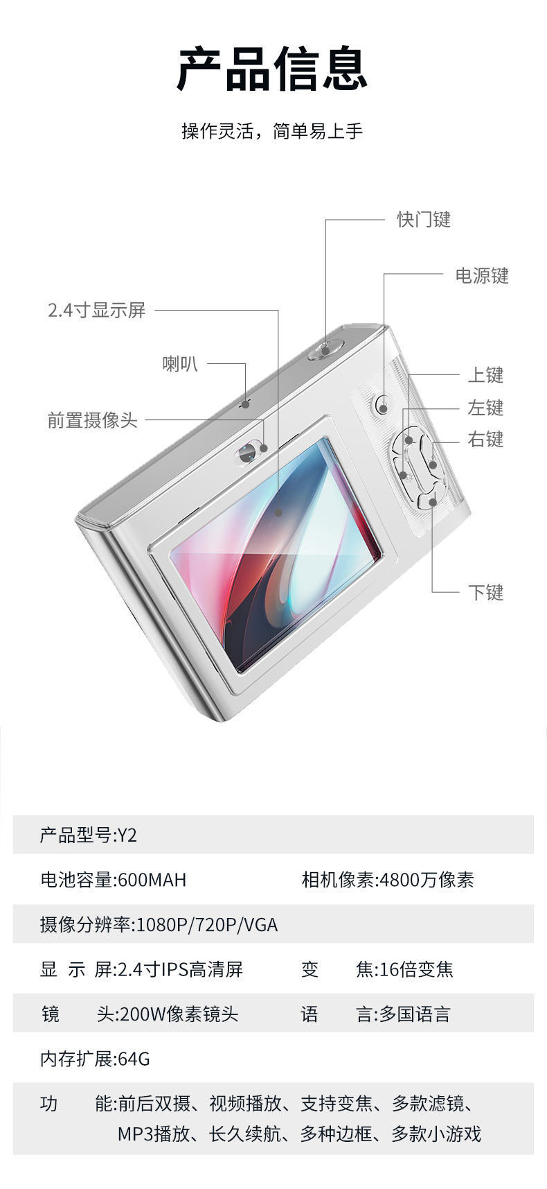 새로운 복고풍 디지털 CCD 고화질 듀얼 카메라 9600만 2.4인치 고화질 미니 캠퍼스 학생 카메라 vlog