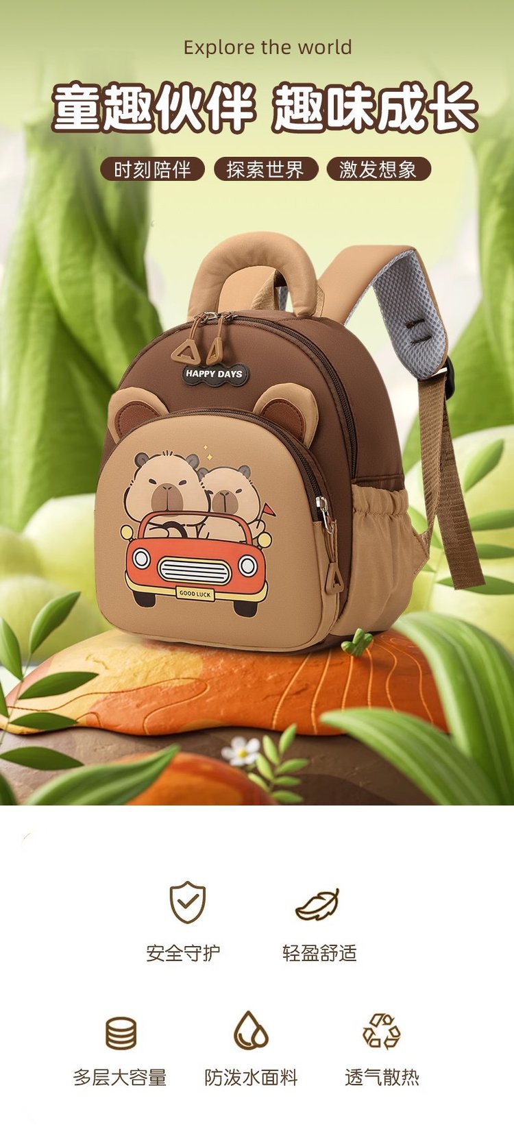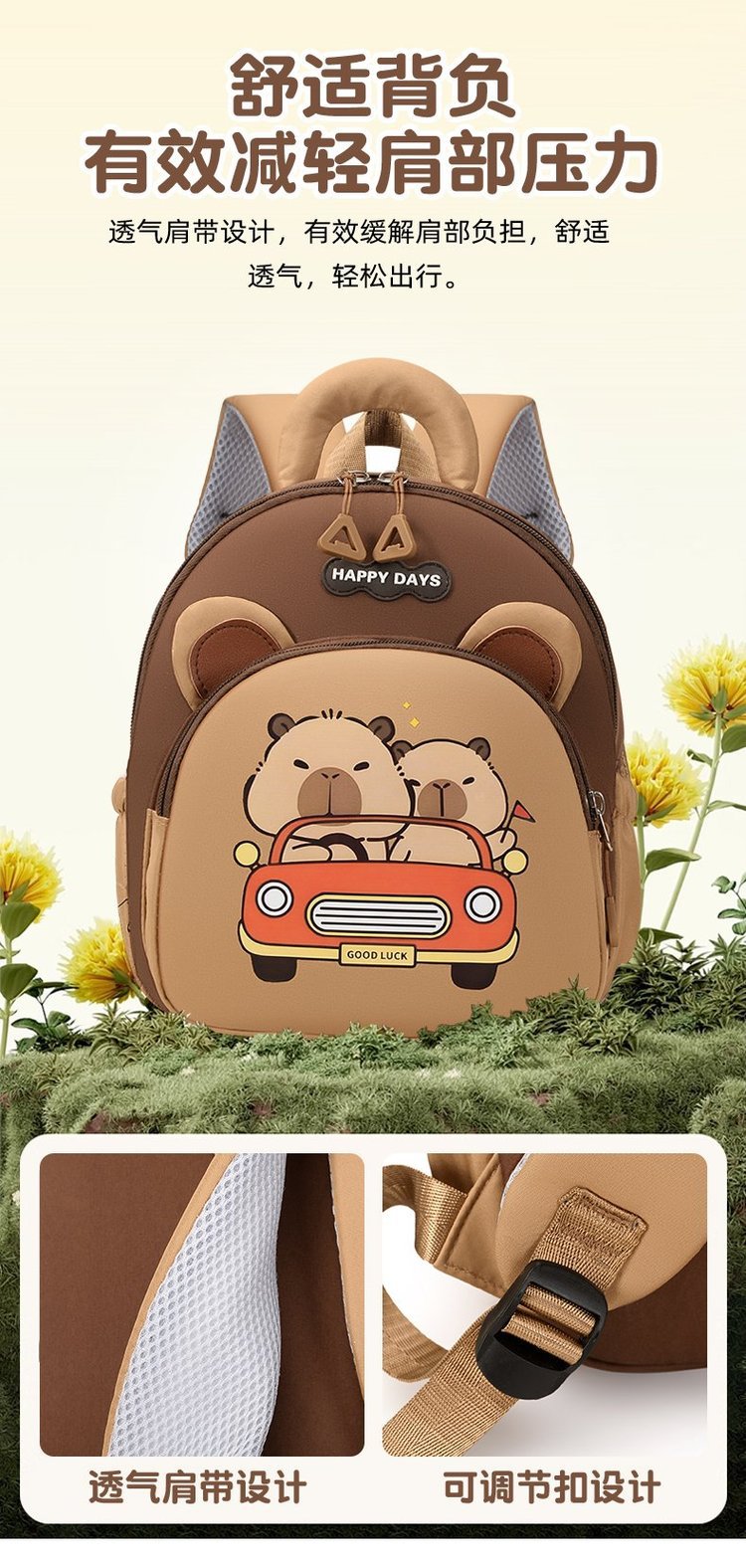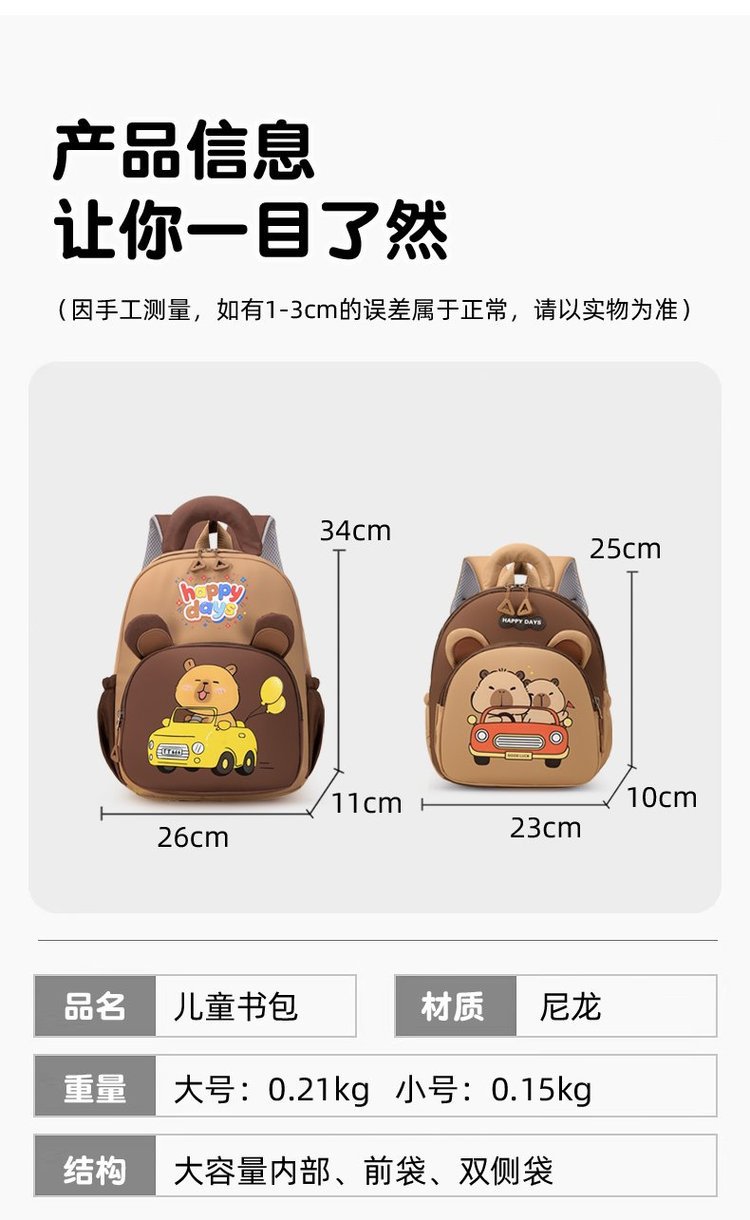 男童卡皮巴拉水豚背包2岁3岁托班早教班小班入园书包轻便可爱双
