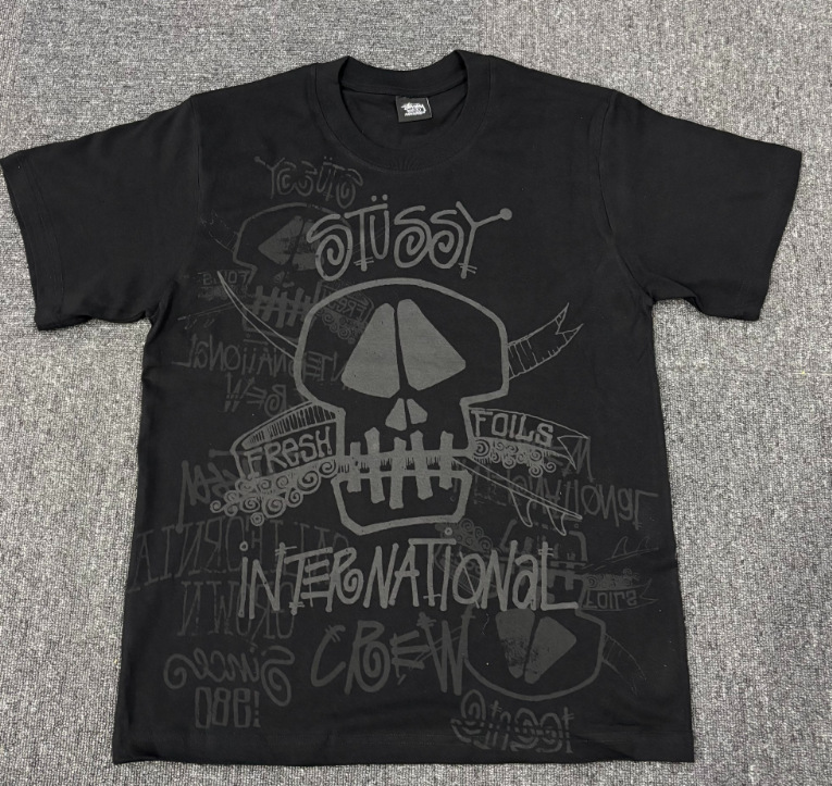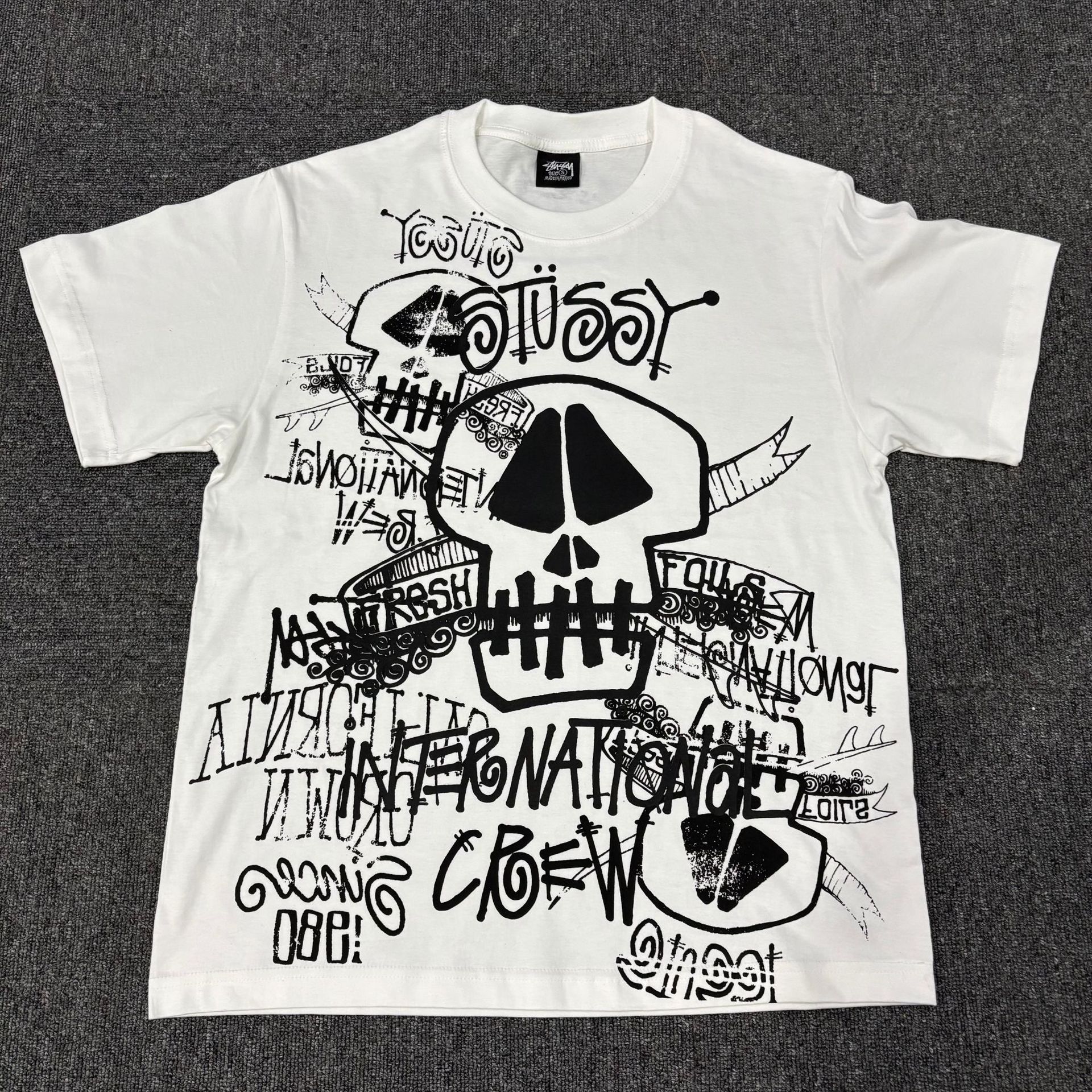 斯图西2025新款男女短袖T恤夏季男士宽松230g重磅丝网印T恤