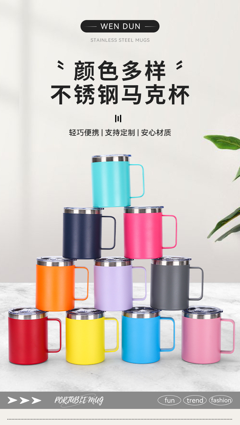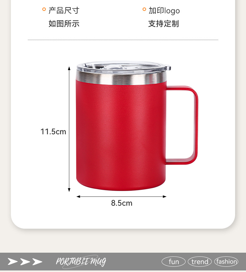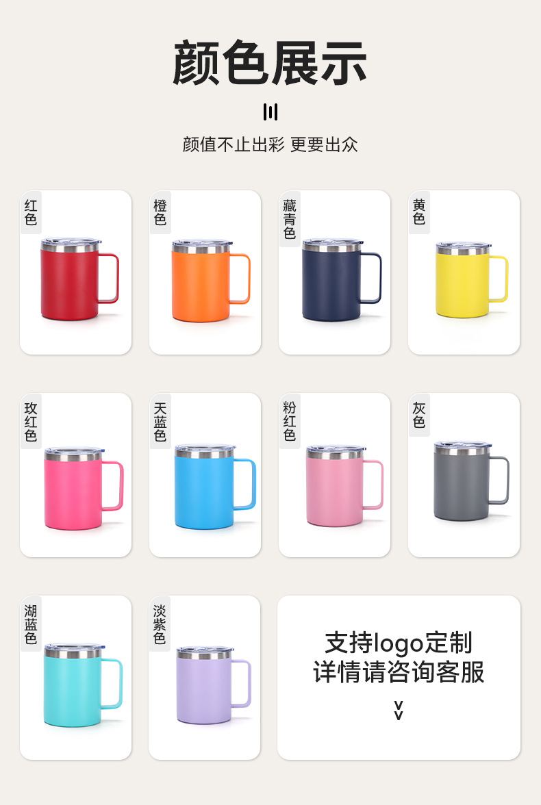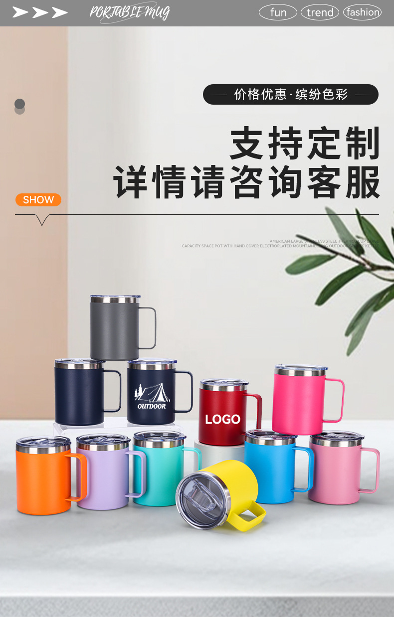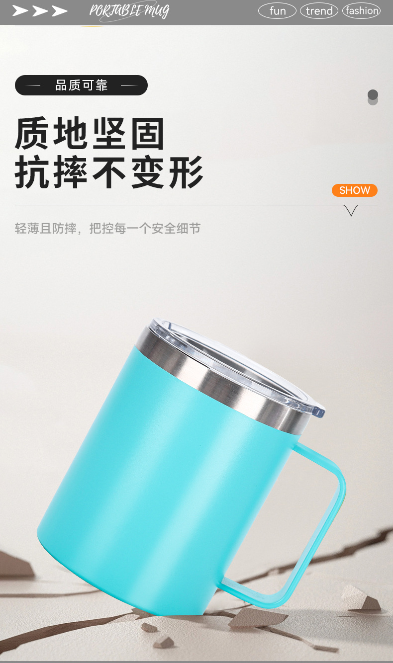 Amazon 12oz 자동차 컵 뚜껑 포함 304 스테인레스 스틸 이중층 절연 컵 비즈니스 오피스 핸들 머그잔스토어 가기