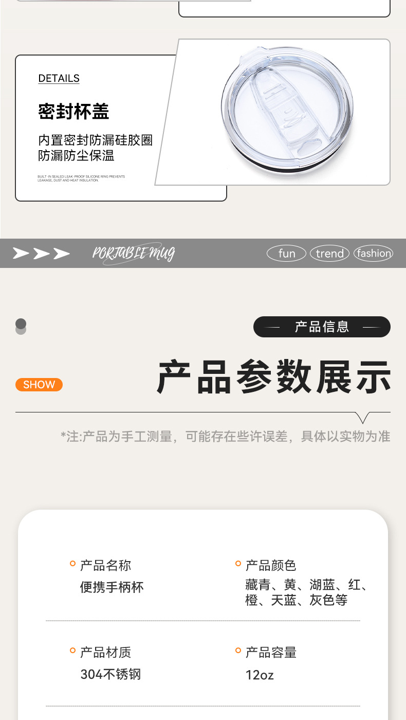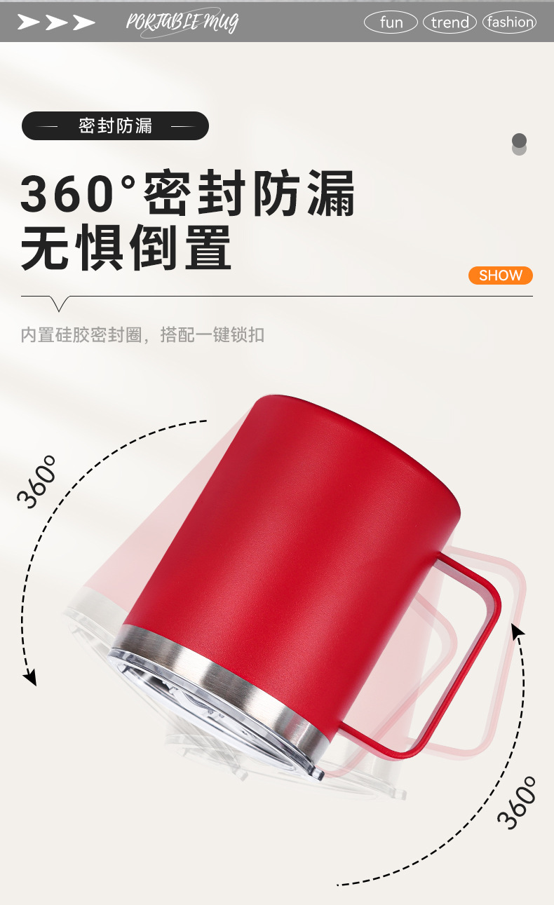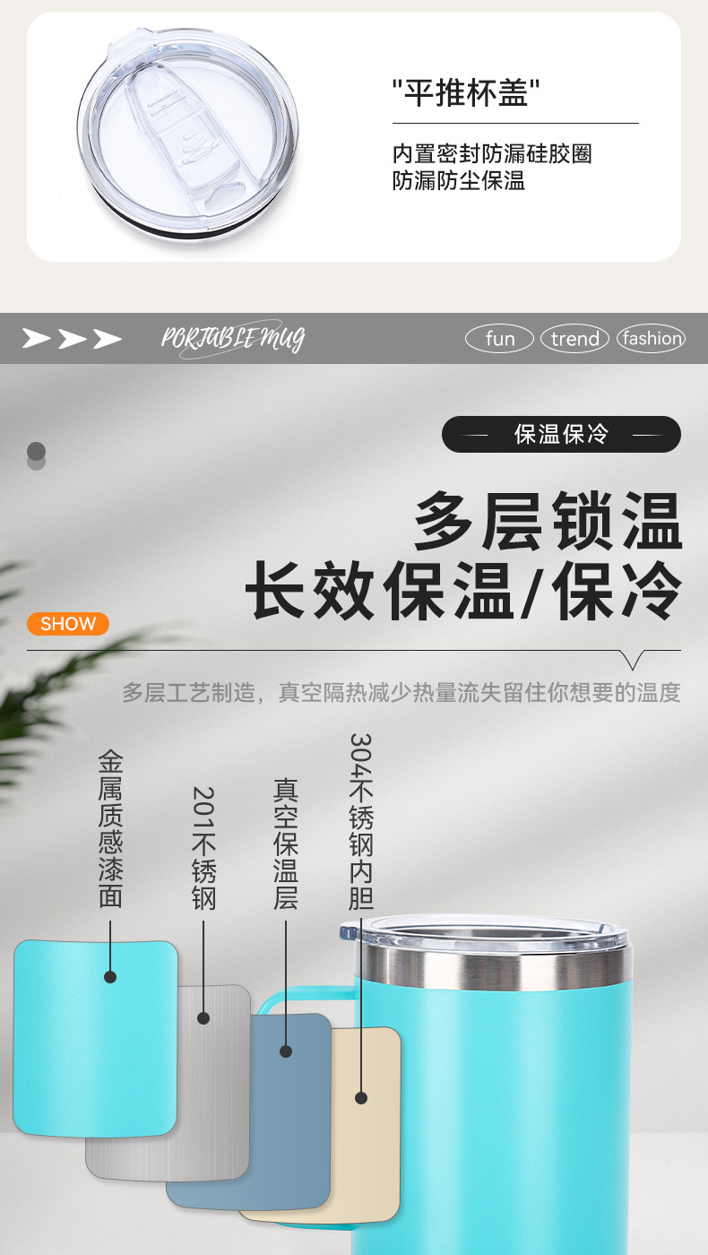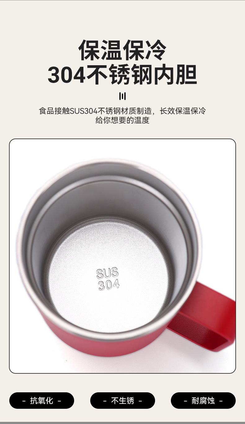 Amazon 12oz 자동차 컵 뚜껑 포함 304 스테인레스 스틸 이중층 절연 컵 비즈니스 오피스 핸들 머그잔스토어 가기