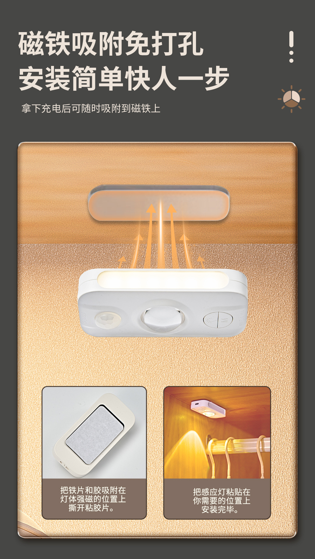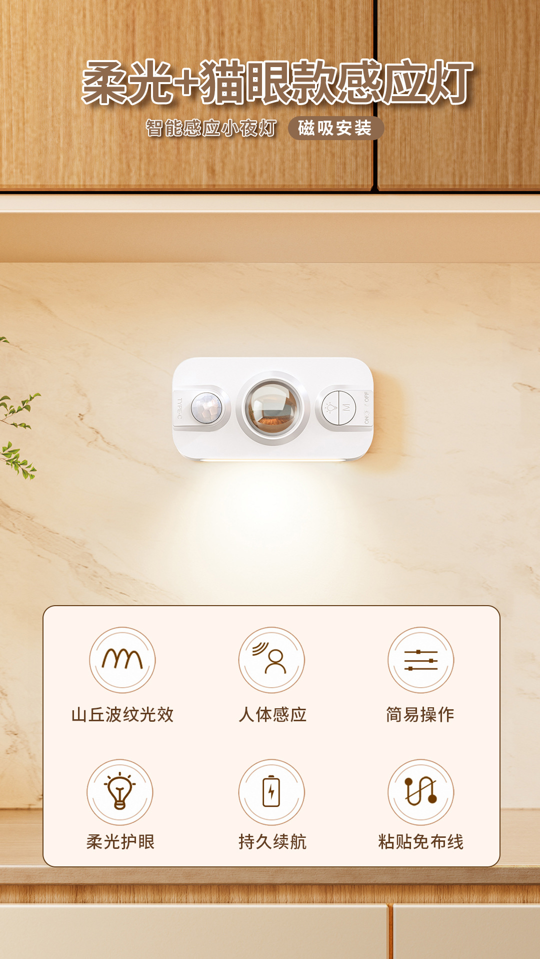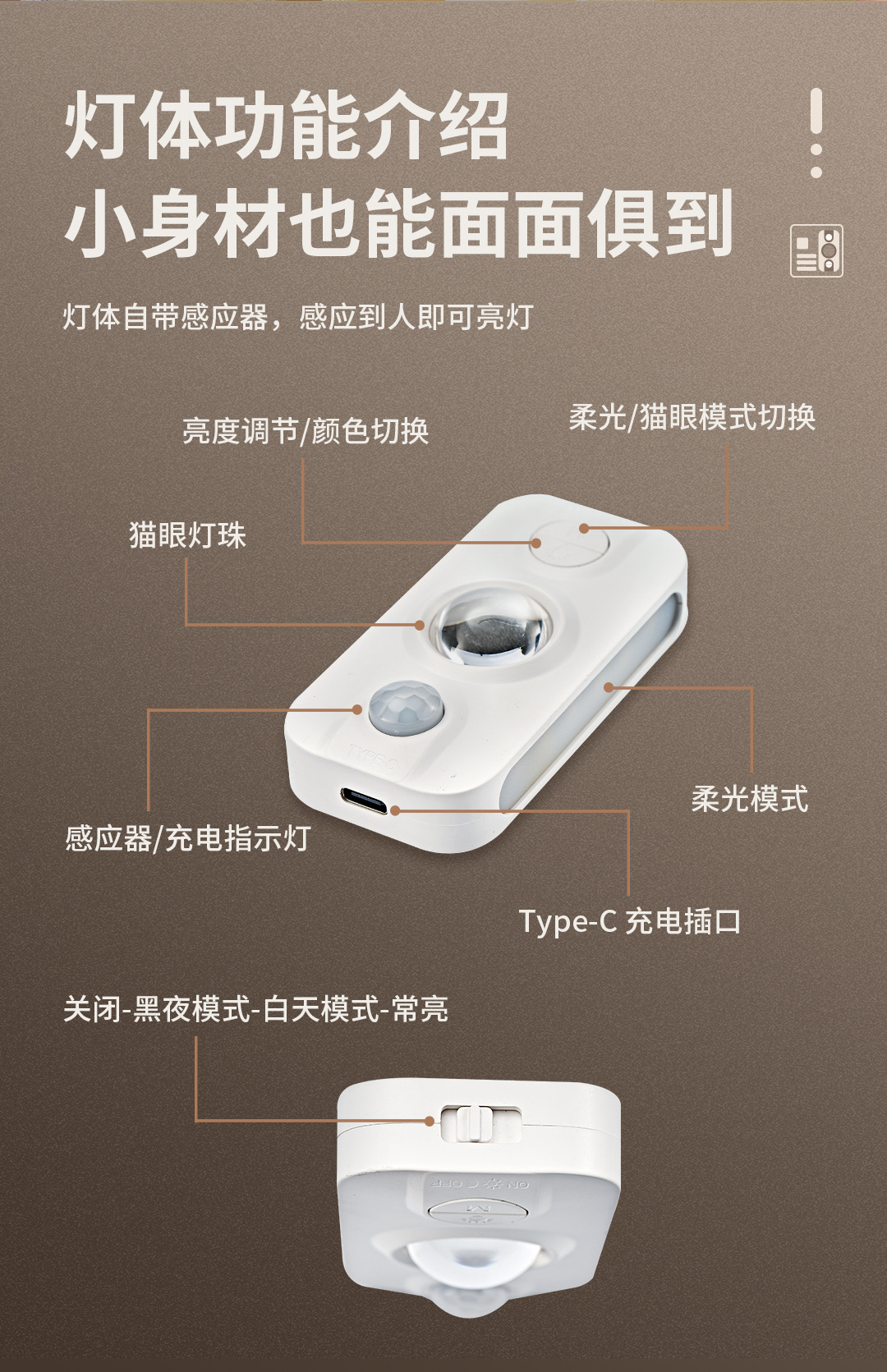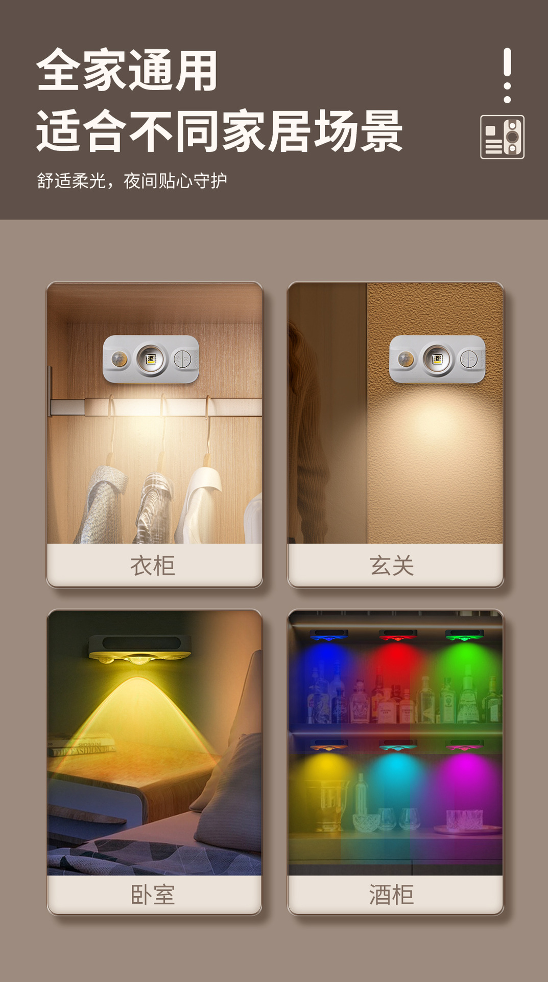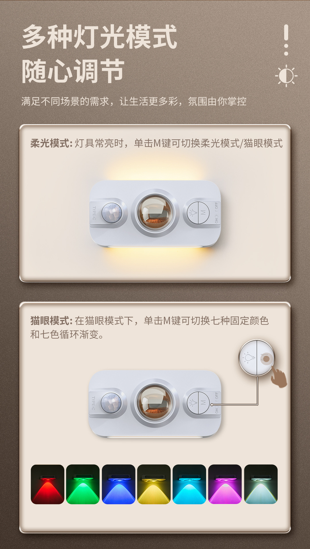 RGB 컬러 분위기 야간 조명 새로운 국경 간 지능형 인체 유도 램프 측면 발광 고양이 눈 효과 충전식 램프스토어 가기
