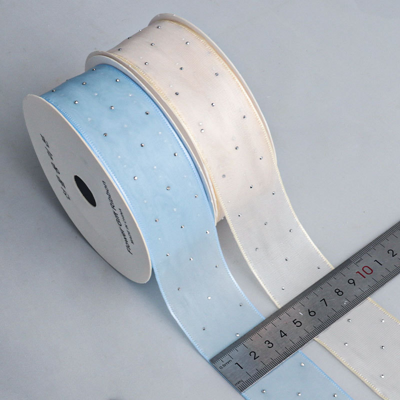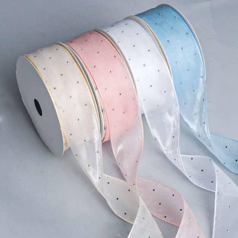 한국 스타일 실버 도트 핫 다이아몬드 스노우 섬유 벨트 수제 Diy 꽃 아트 선물 상자 장식 리본 활 헤어 액세서리 리본