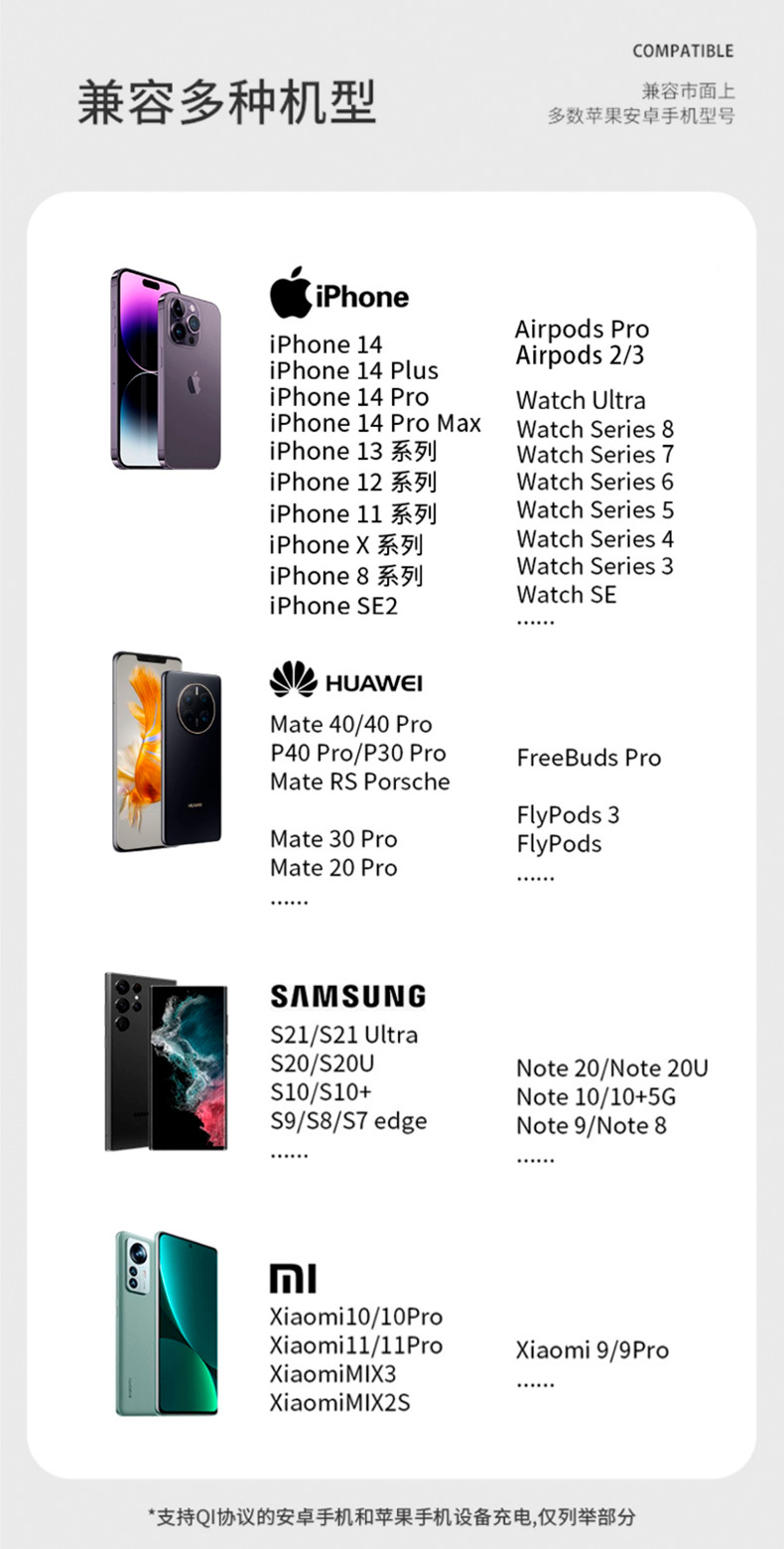 无线输出:15W兼容10W/7.5W/5W
