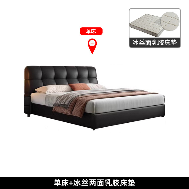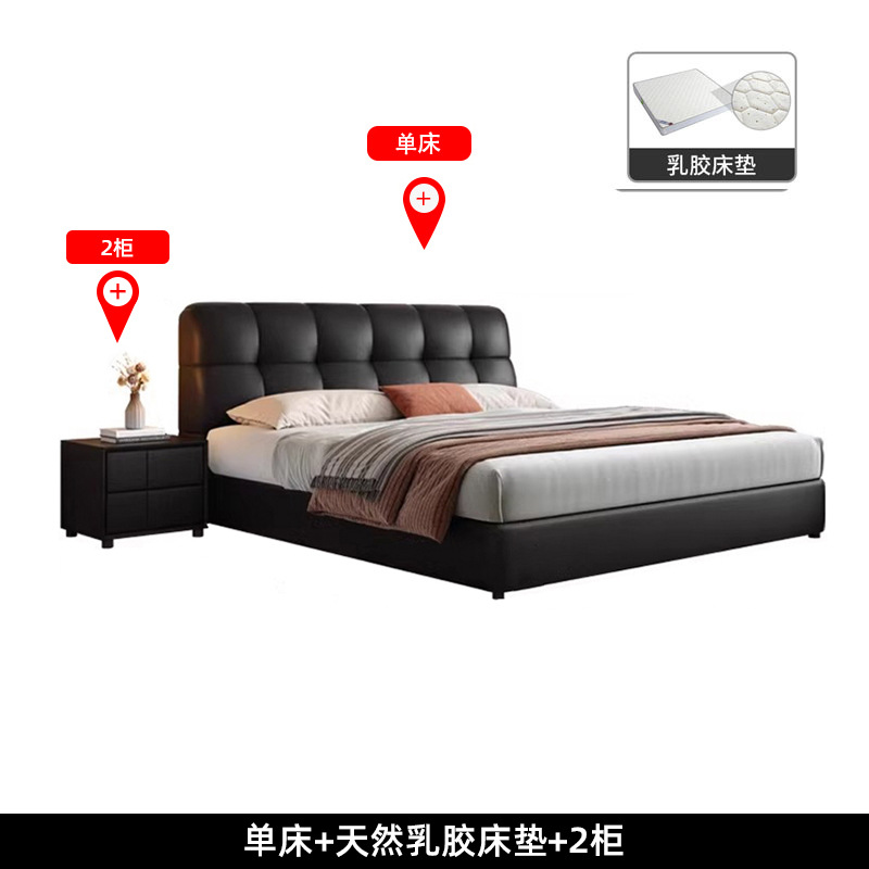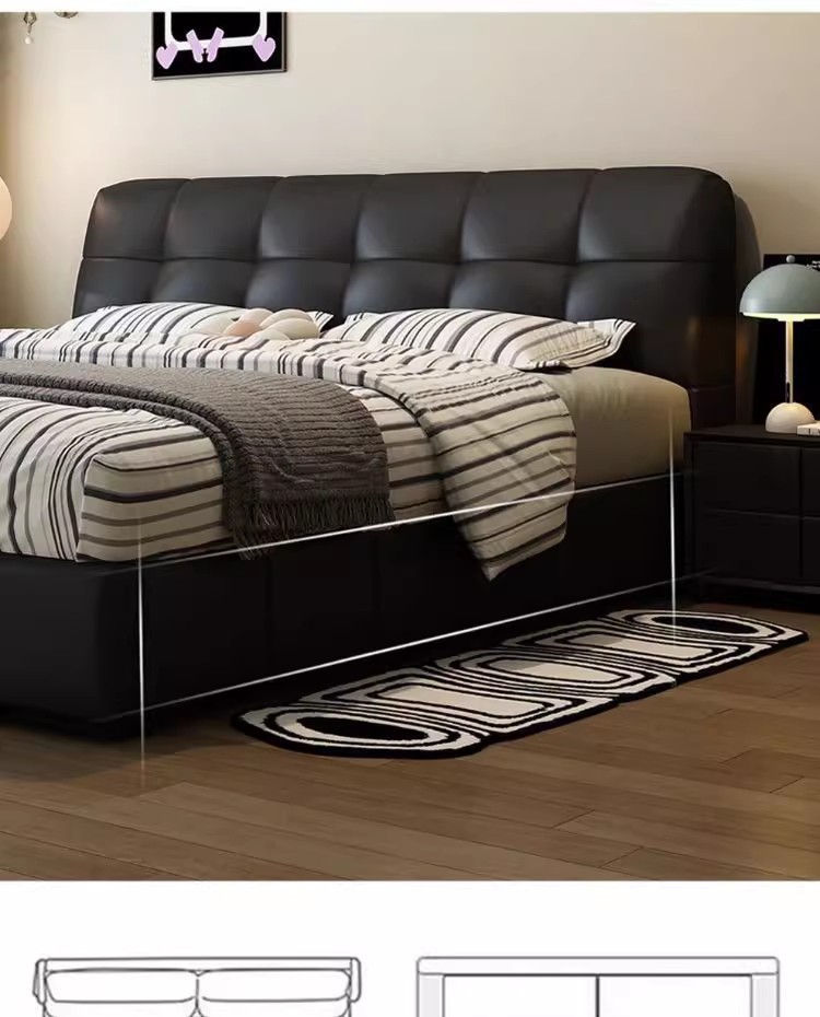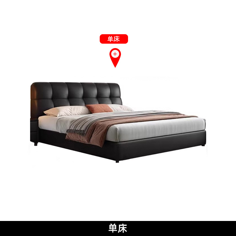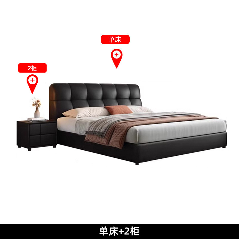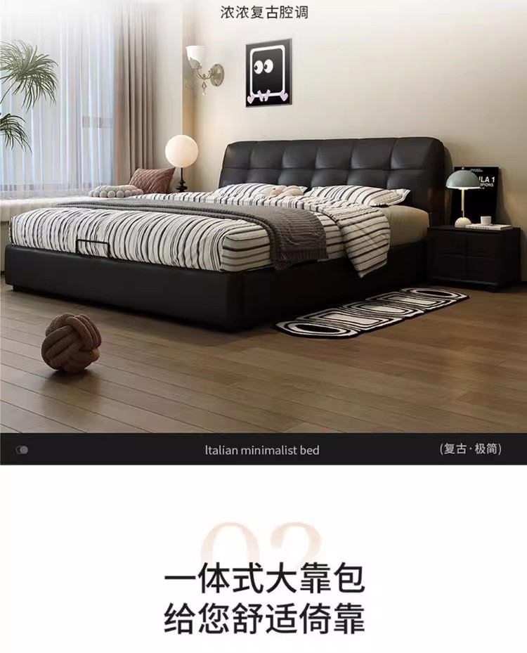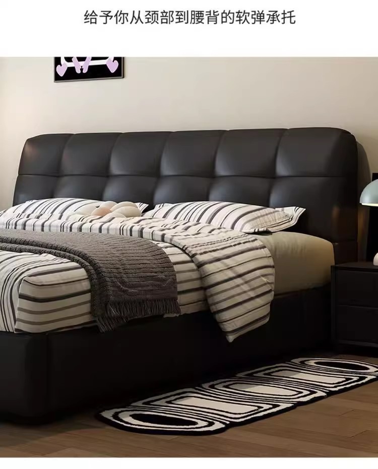 이탈리아 복고풍 검은색 가죽 침대 현대적인 미니멀리스트 크림 퍼프 더블 수납 마스터 침실 대형 침대 작은 아파트 가죽 침대스토어 가기