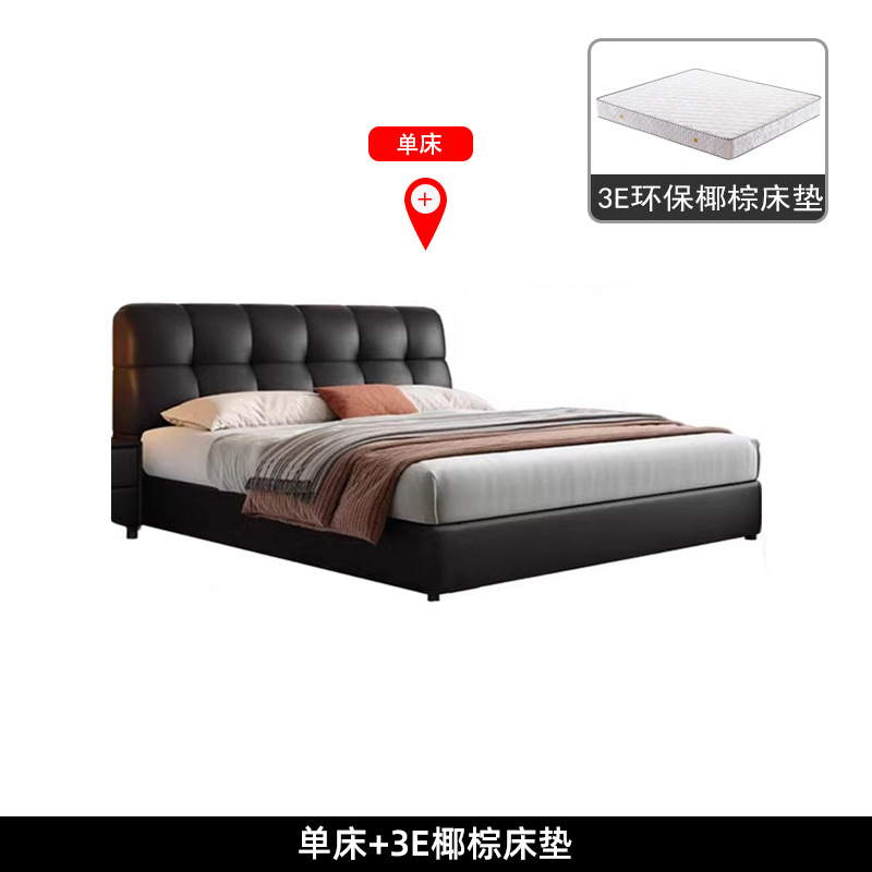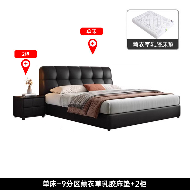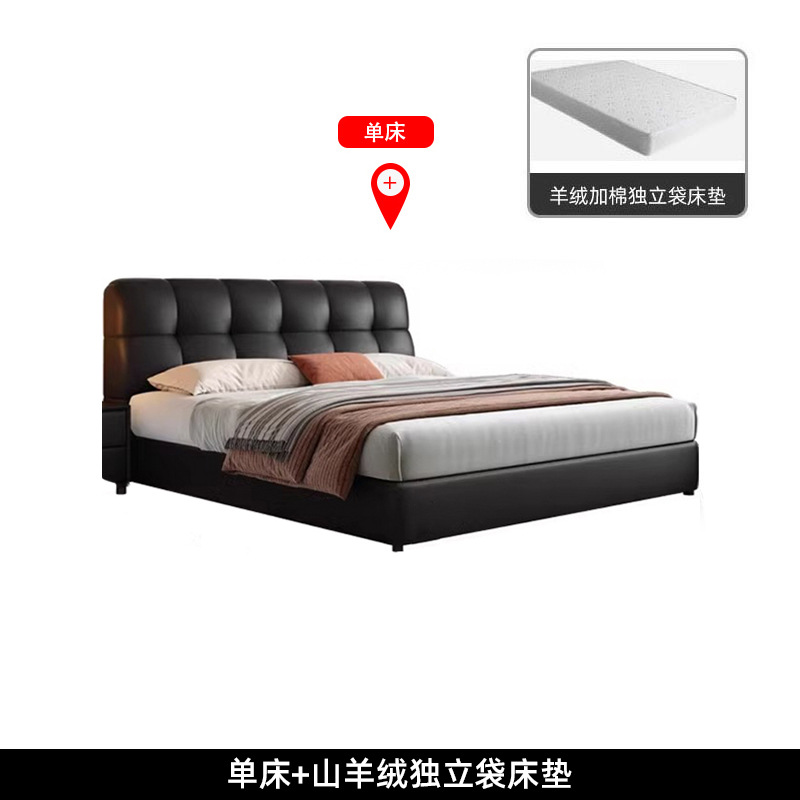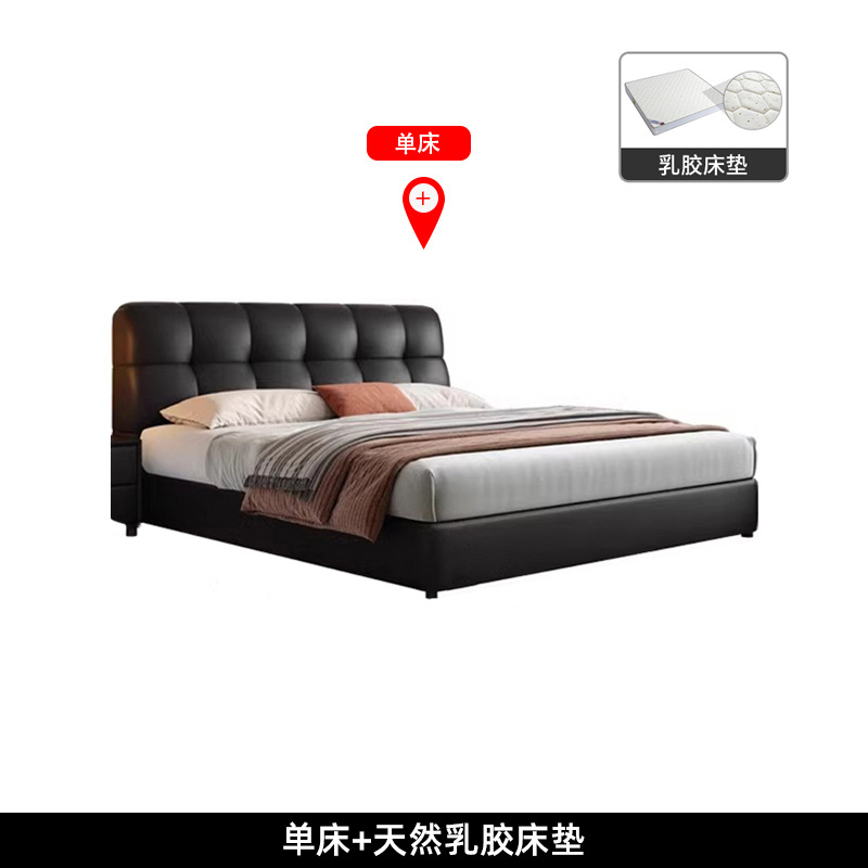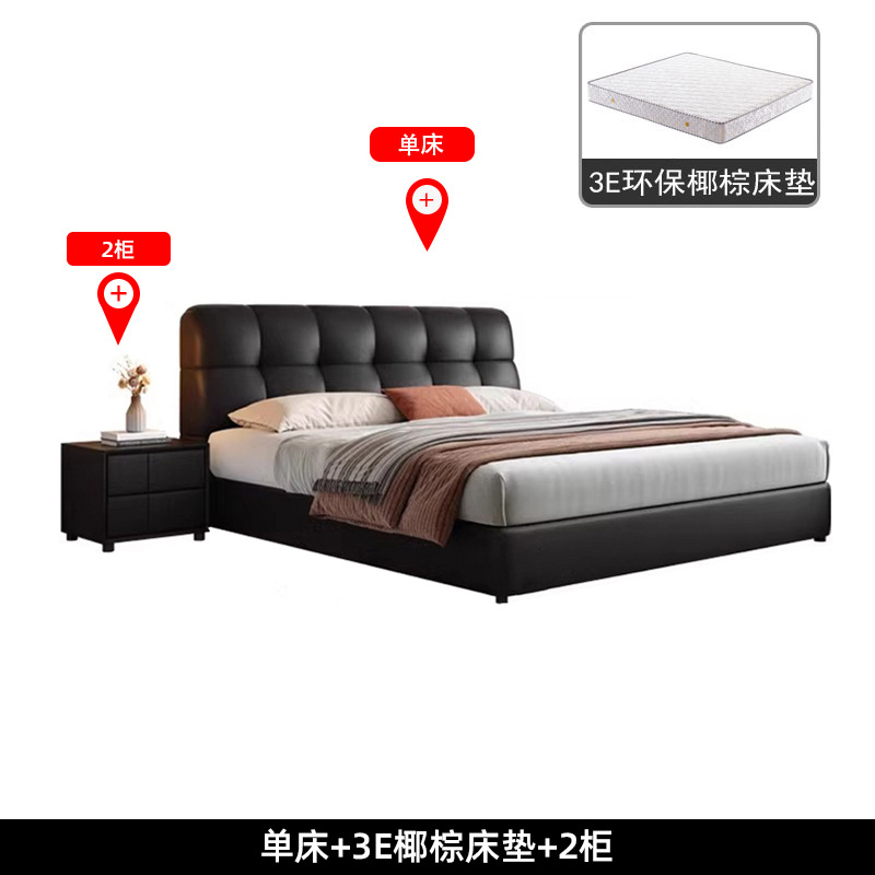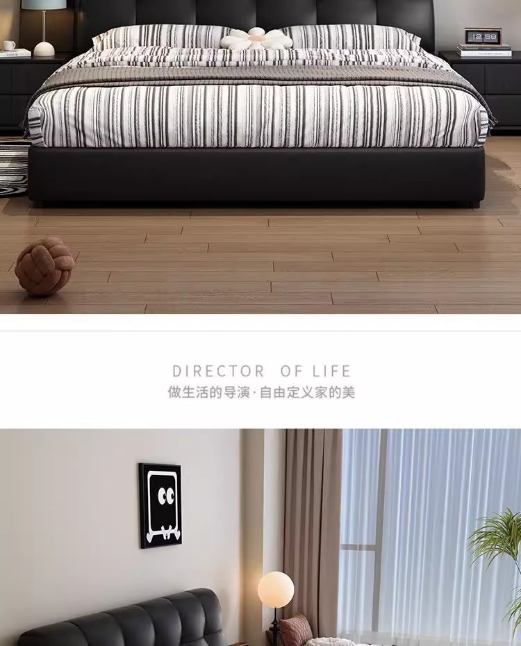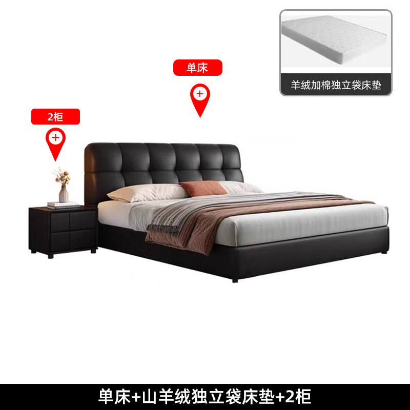 이탈리아 복고풍 검은색 가죽 침대 현대적인 미니멀리스트 크림 퍼프 더블 수납 마스터 침실 대형 침대 작은 아파트 가죽 침대스토어 가기
