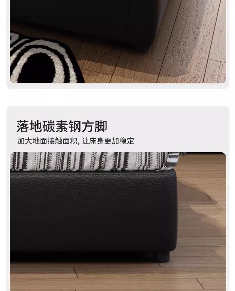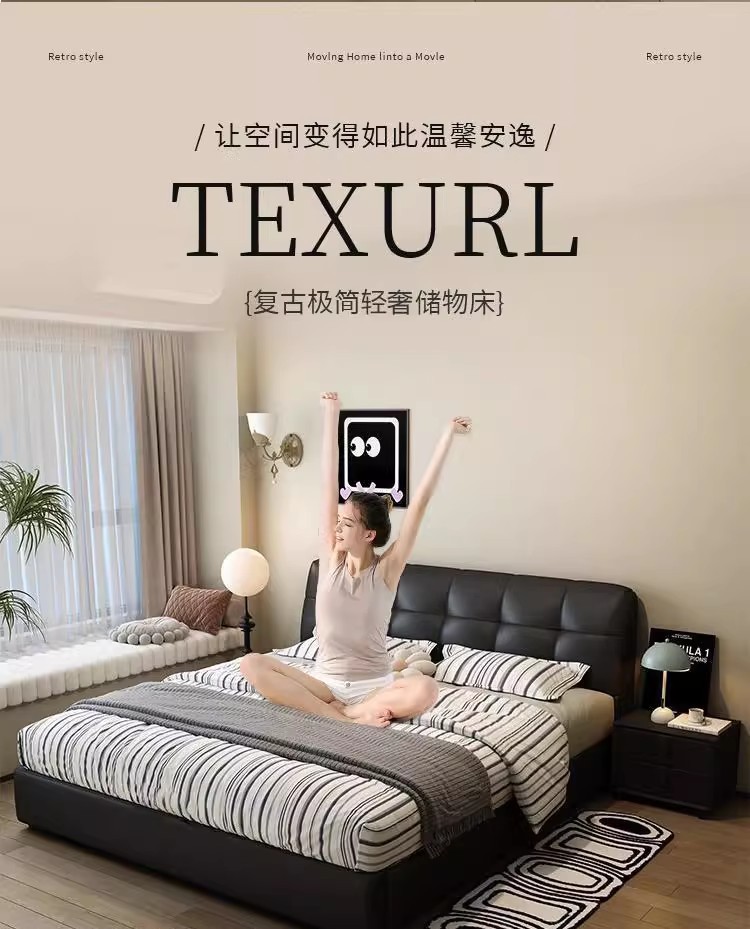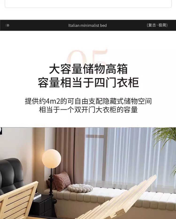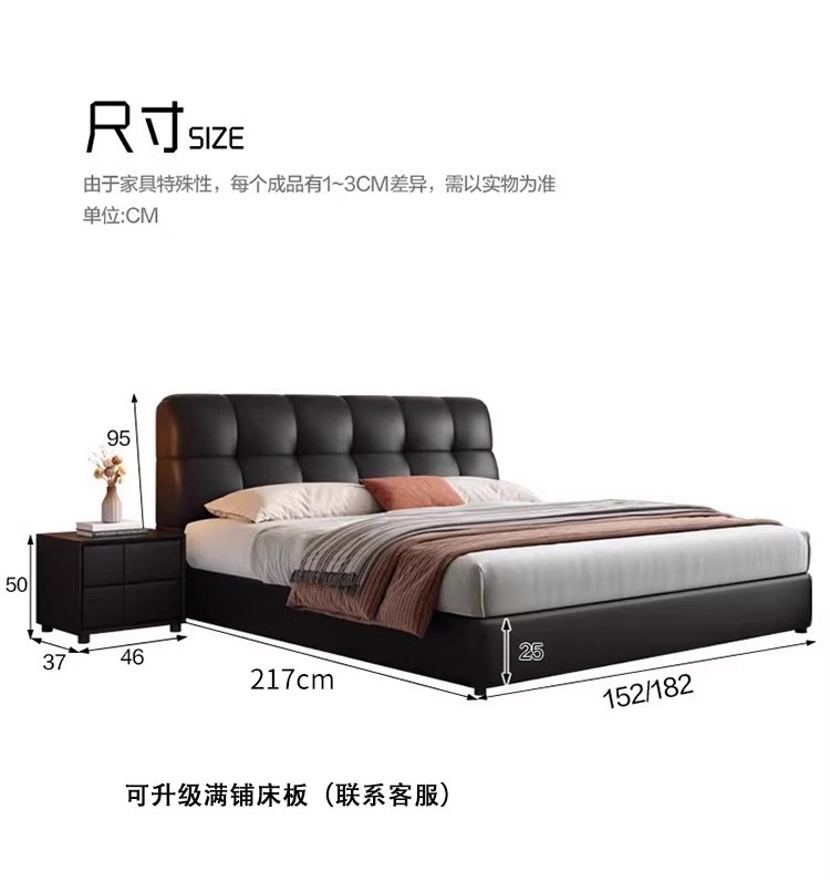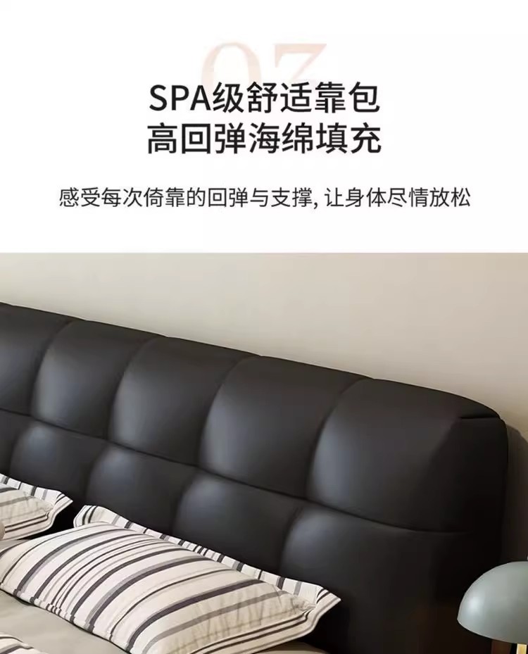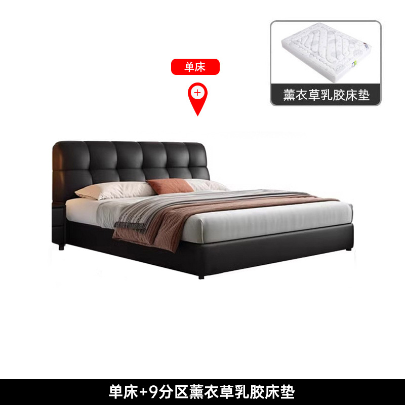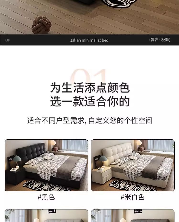 이탈리아 복고풍 검은색 가죽 침대 현대적인 미니멀리스트 크림 퍼프 더블 수납 마스터 침실 대형 침대 작은 아파트 가죽 침대스토어 가기