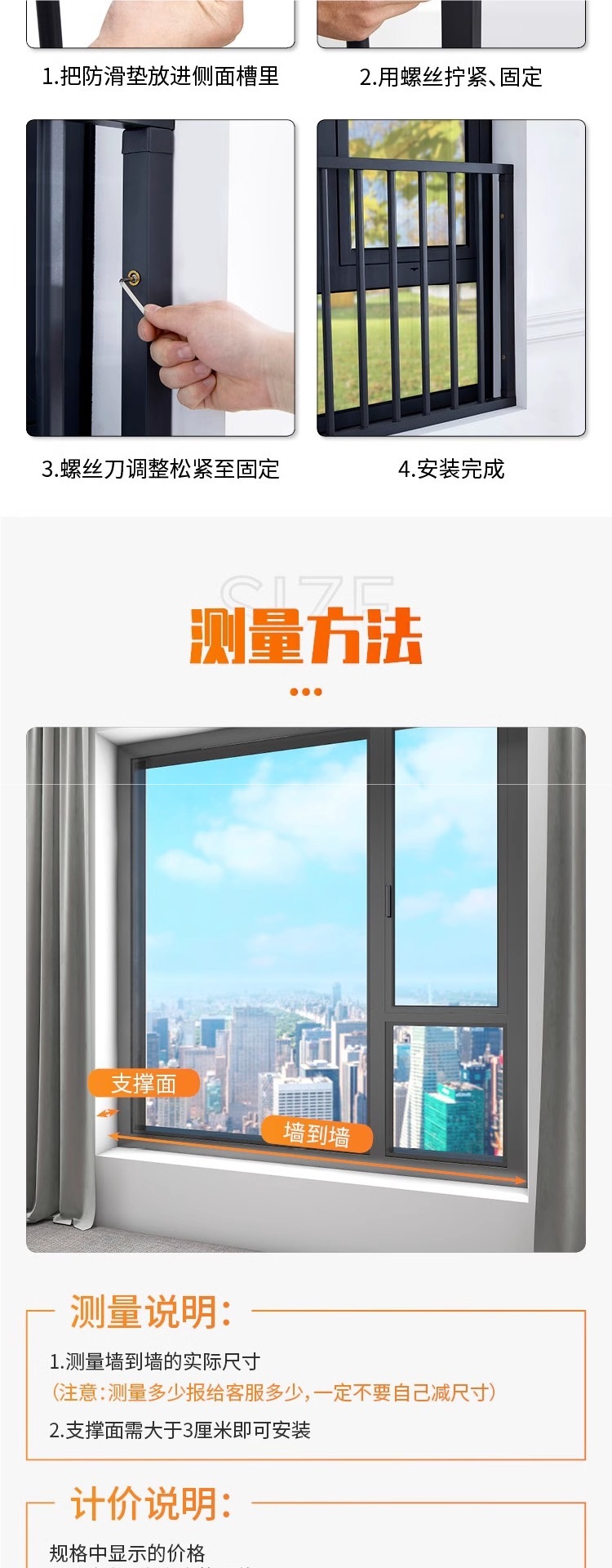 • [다양한 창 유형에 적합한 다양한 보호 울타리가 있습니다. 자세한 내용은 고객 서비스에 문의하십시오.]