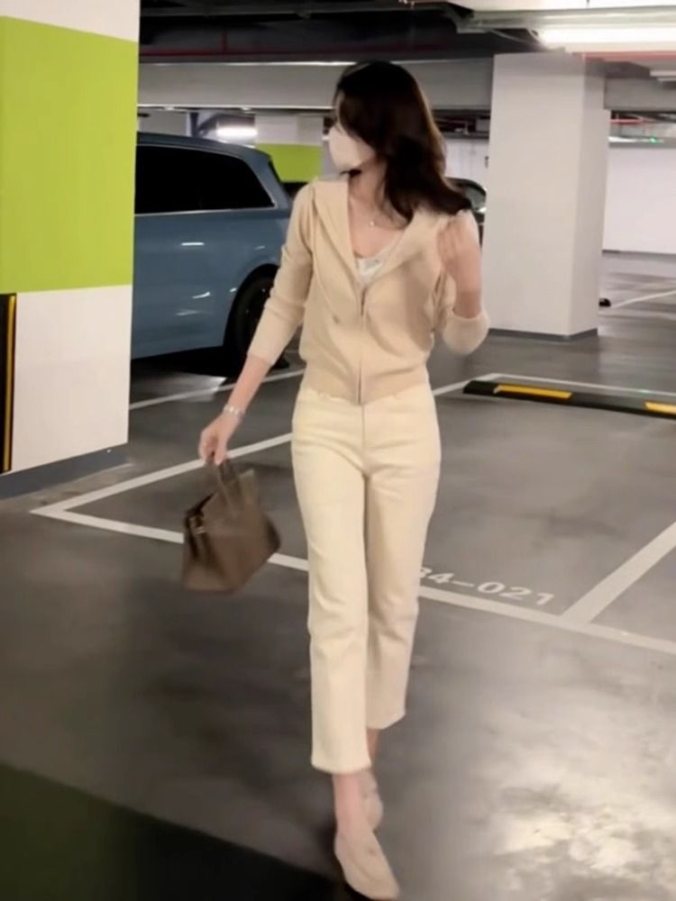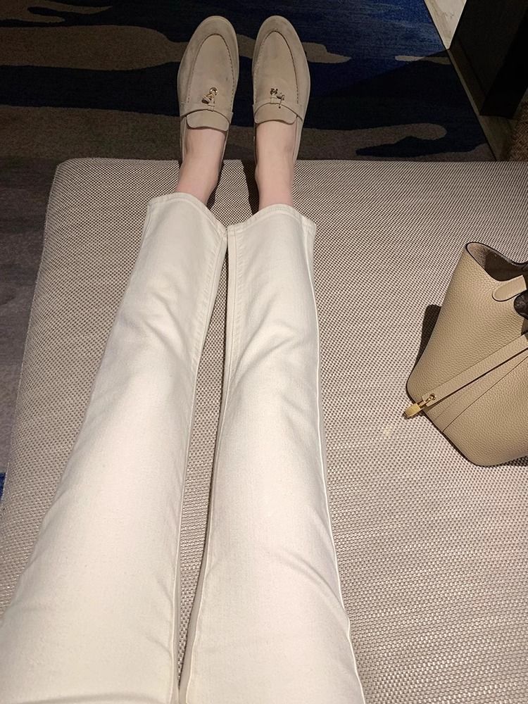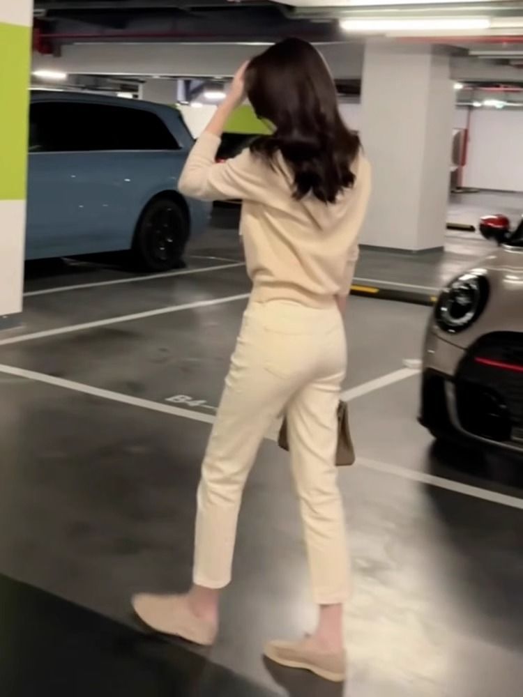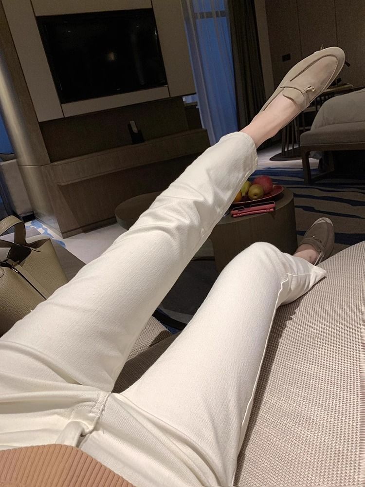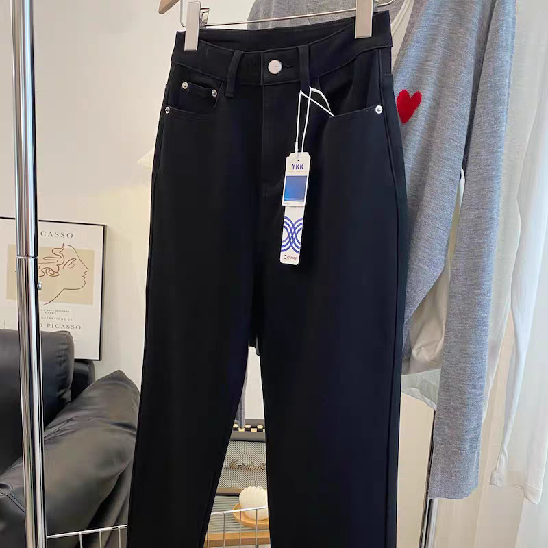 여성용 미색 스트레이트 레그 봄 여름 청바지 2025 새로운 여름 스타일 89 포인트 하이 웨이스트 스트레치 살구색 담배 튜브 바지스토어 가기