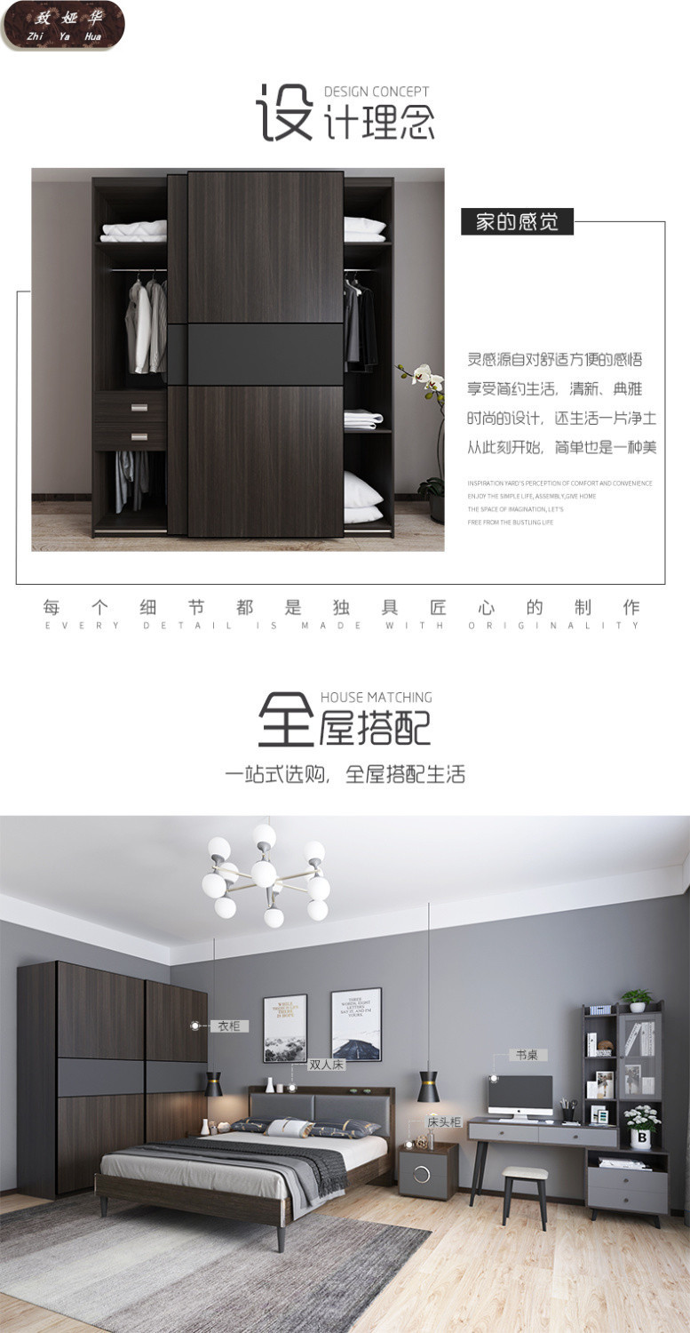 현대적인 미니멀리스트 침실 2 도어 옷장 슬라이딩 도어 옷장 북유럽 슬라이딩 도어