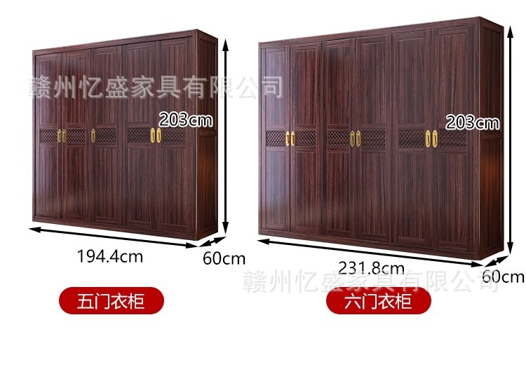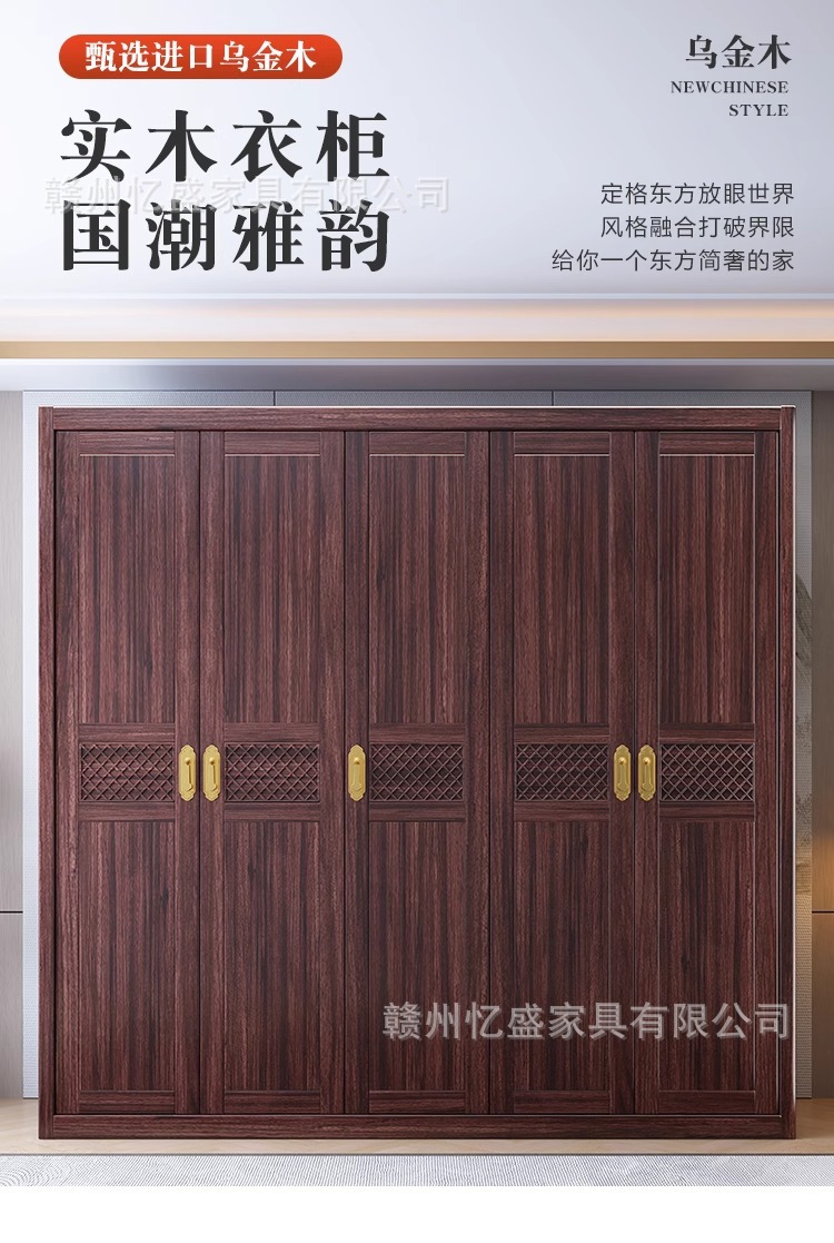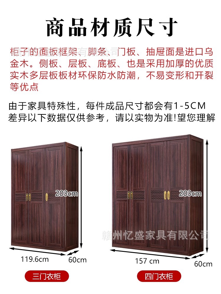 새로운 중국 스타일의 검은 나무 단단한 나무 옷장 침실 스윙 도어 옷장 빌라 홈 마스터 침실 단단한 나무 옷장 보관 캐비닛