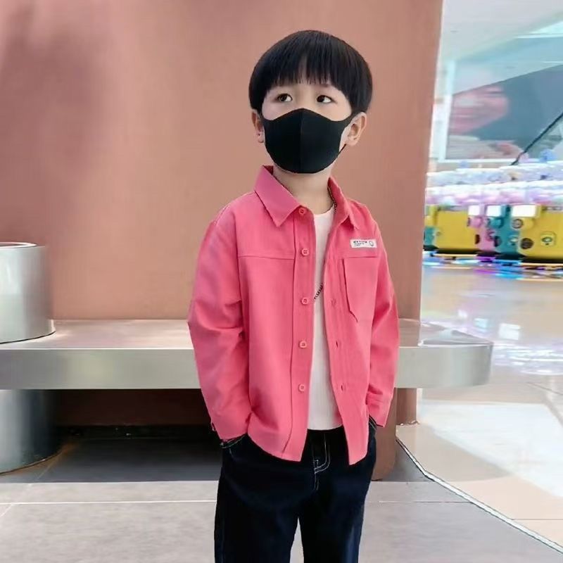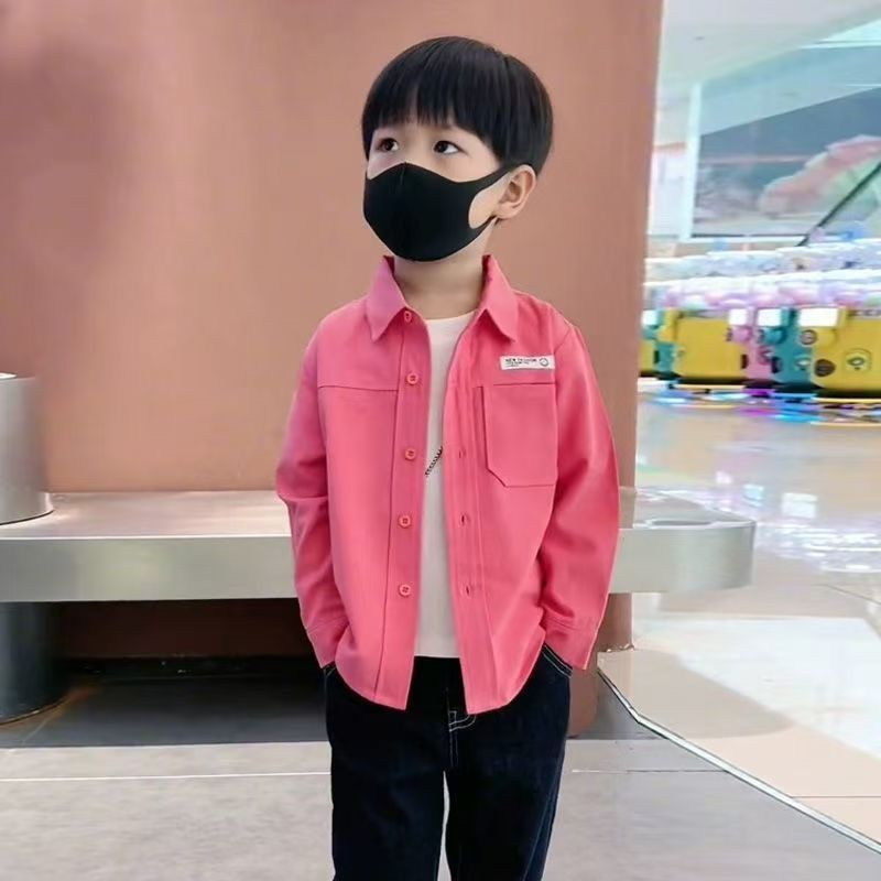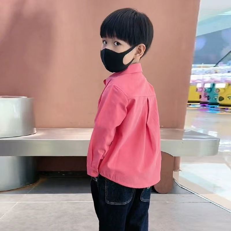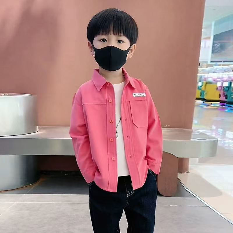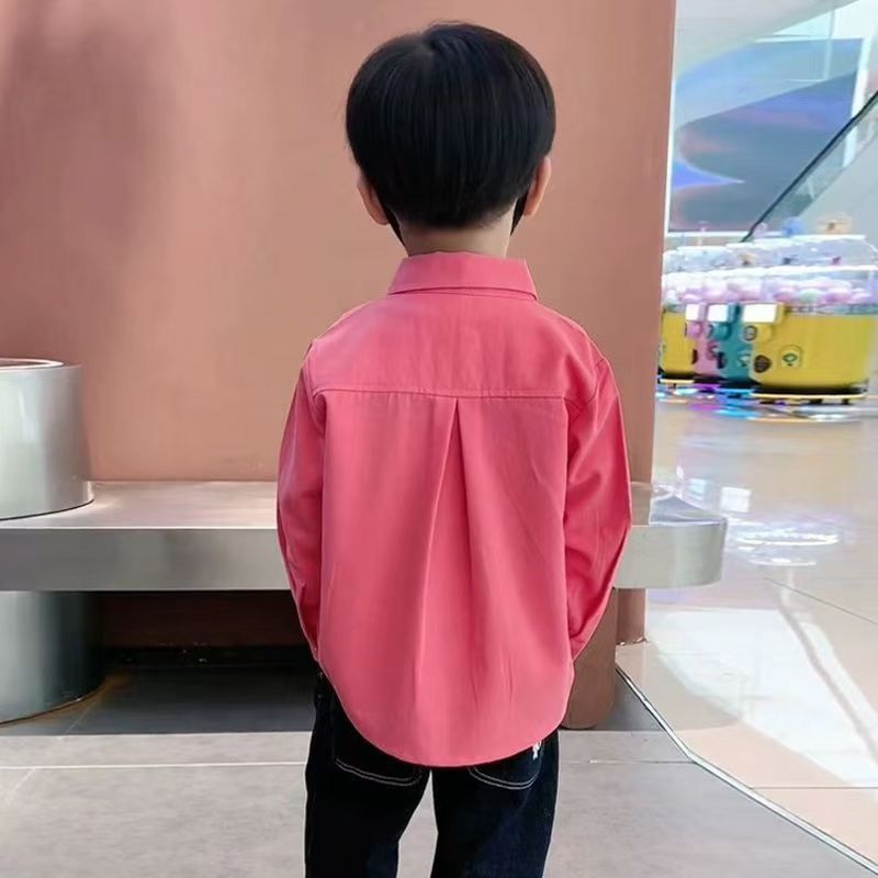소년 순면 캐주얼 핑크 셔츠 봄, 가을 한국 스타일 어린이 단색 패션 긴팔 셔츠 어린이와 중년 어린이를위한