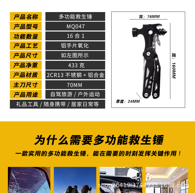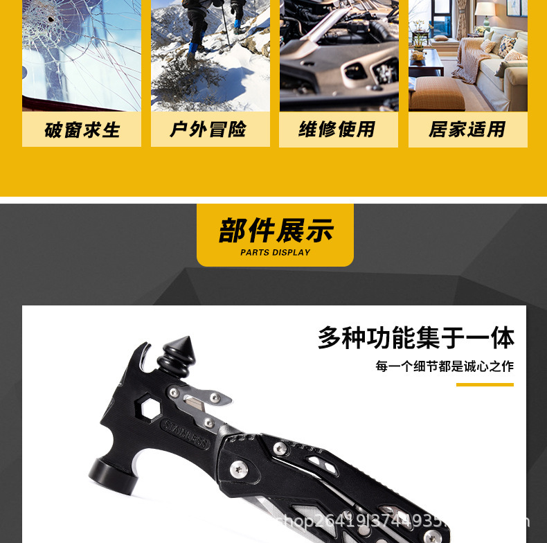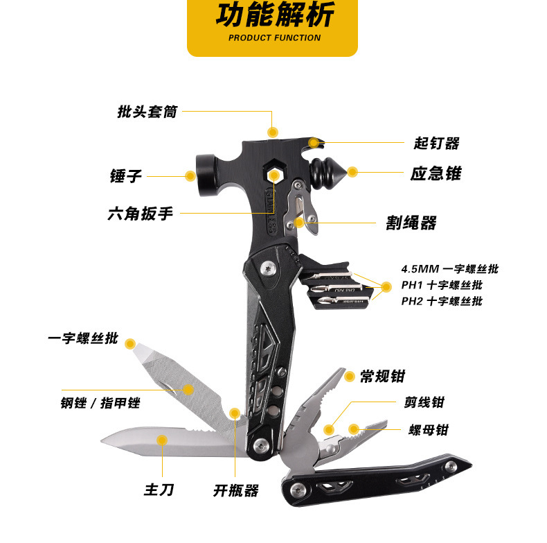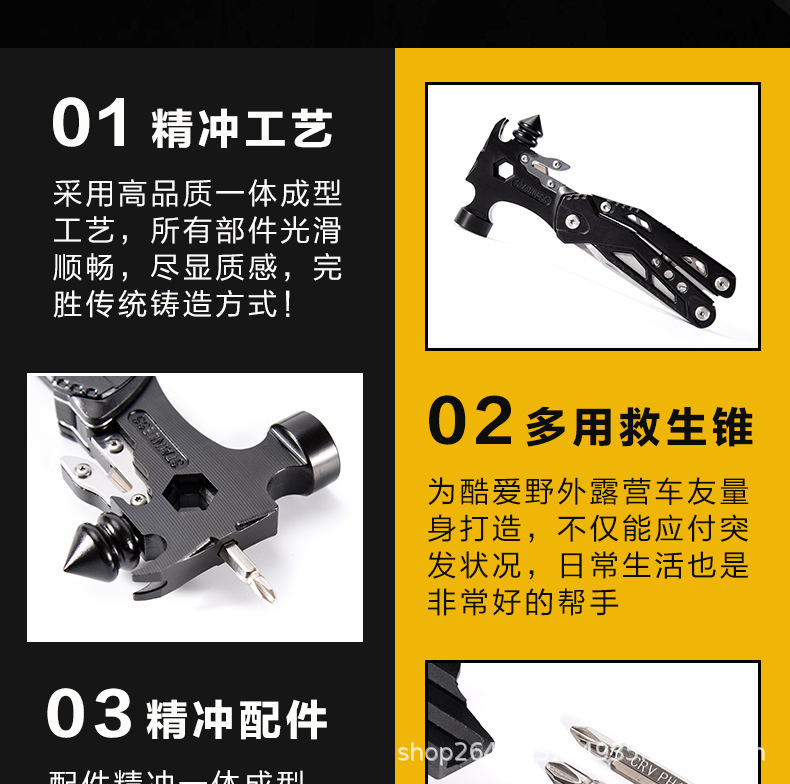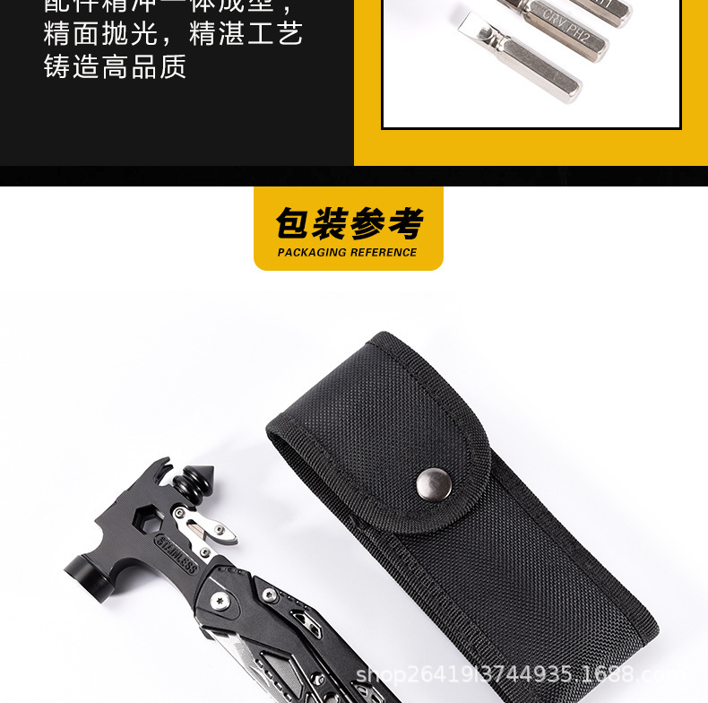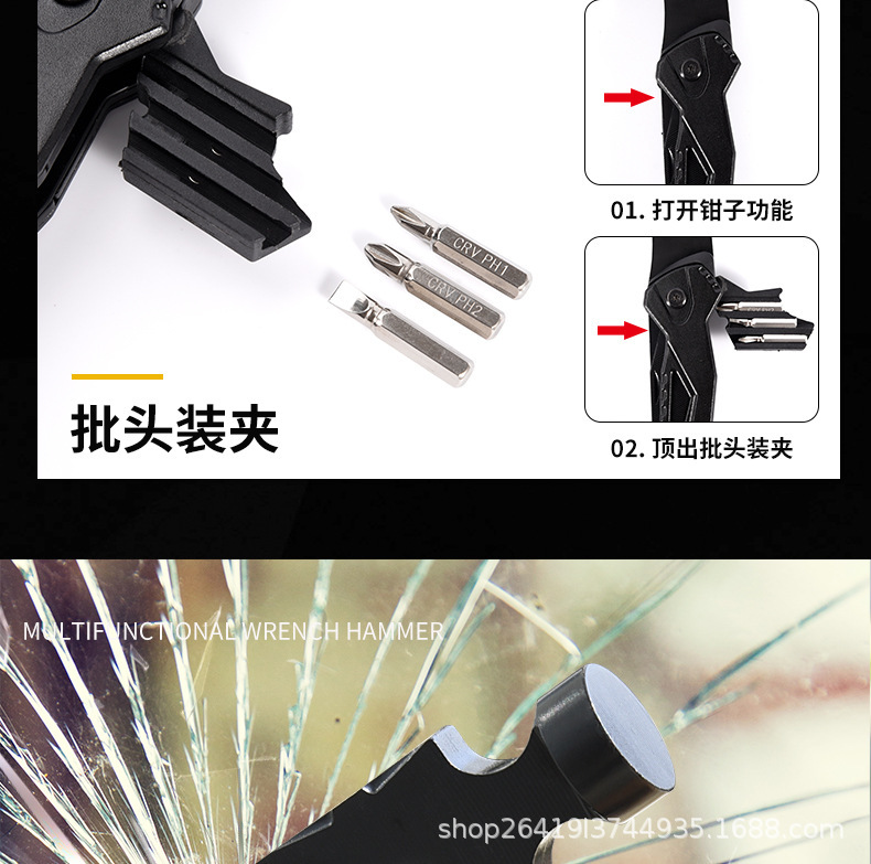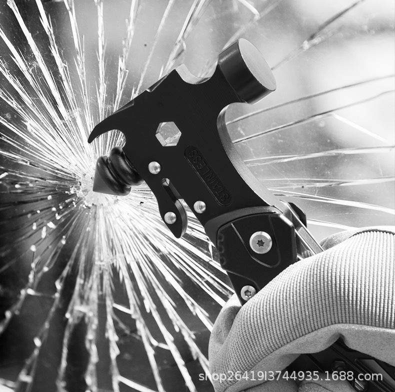 야외 다기능 도구 펜치 조합 망치 접이식 칼 차량 창문 깨기 안전 망치 자동차 탈출 망치 클로 망치스토어 가기