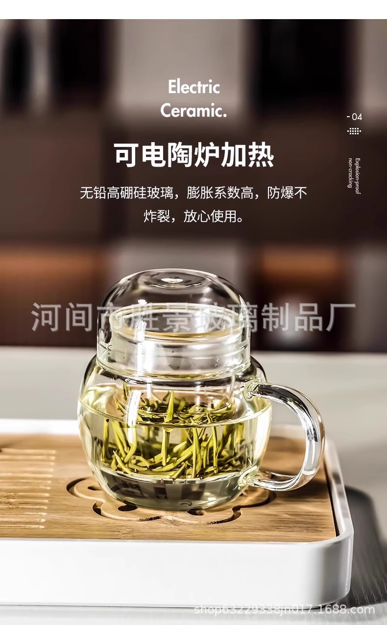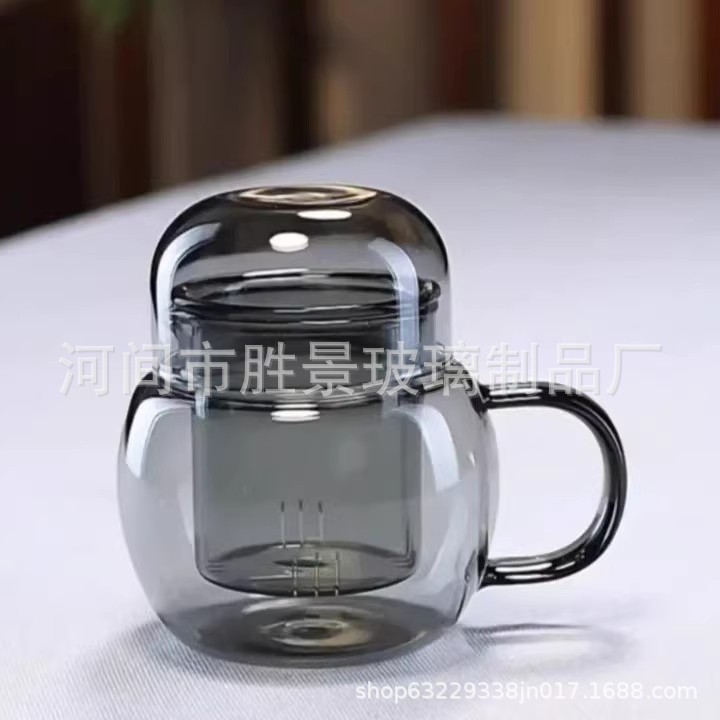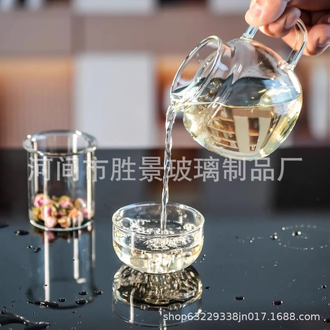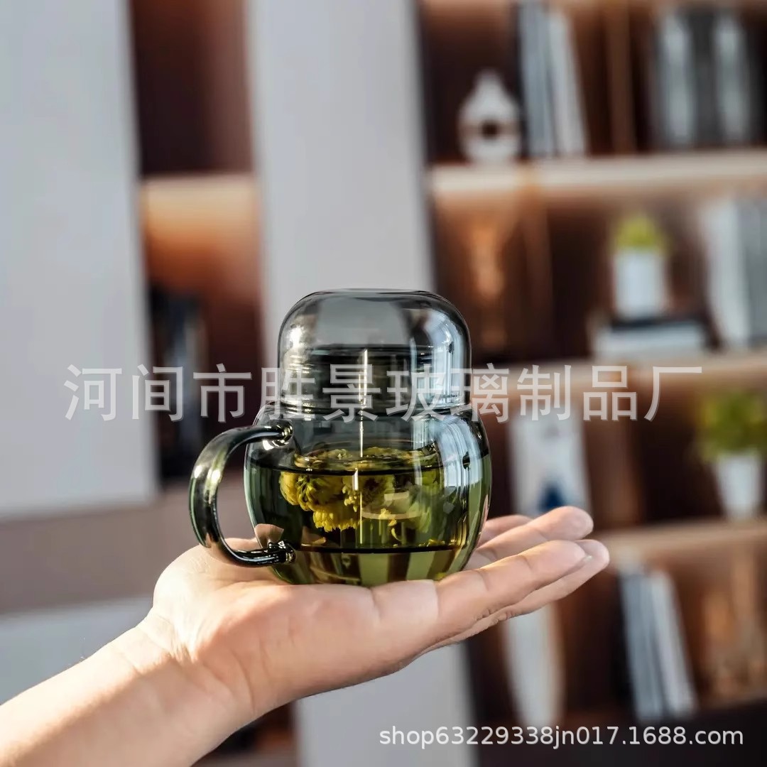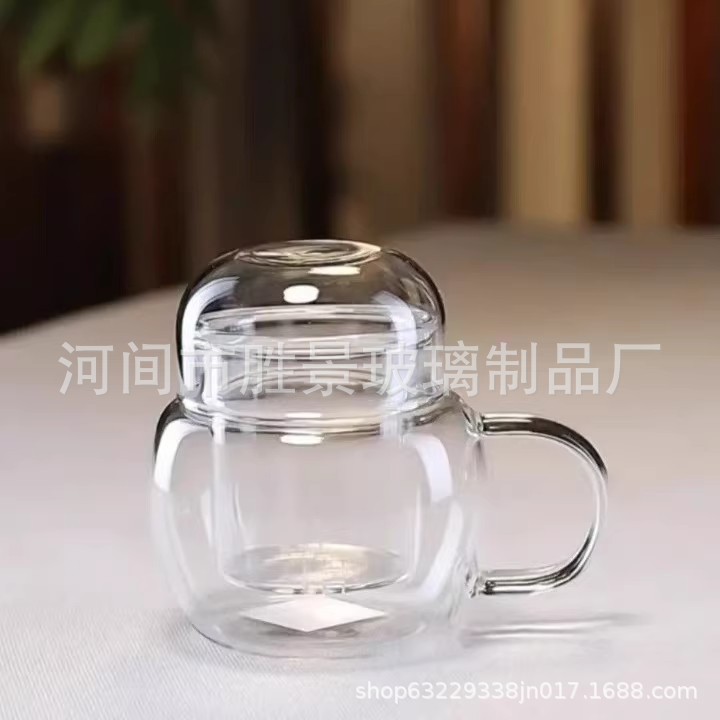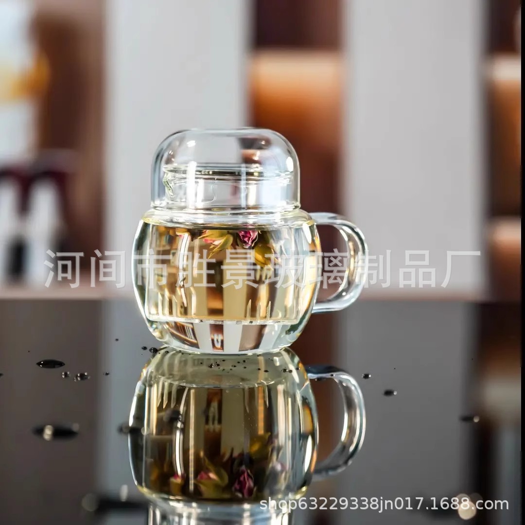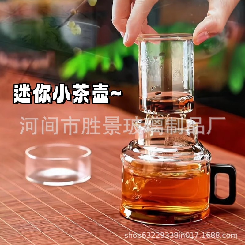 Dundun 컵 고붕규산 유리 미니 찻잔, 손잡이가 있는 차와 물 분리 가능, 가정용 식수용 3피스 컵