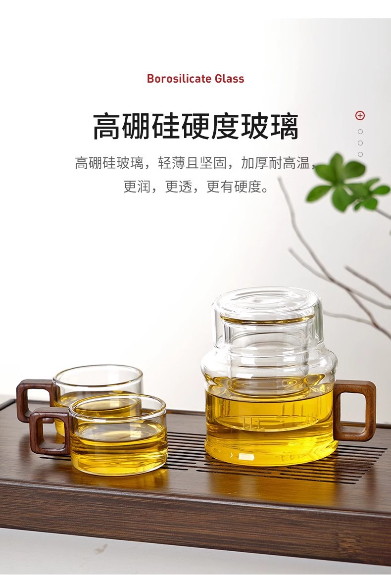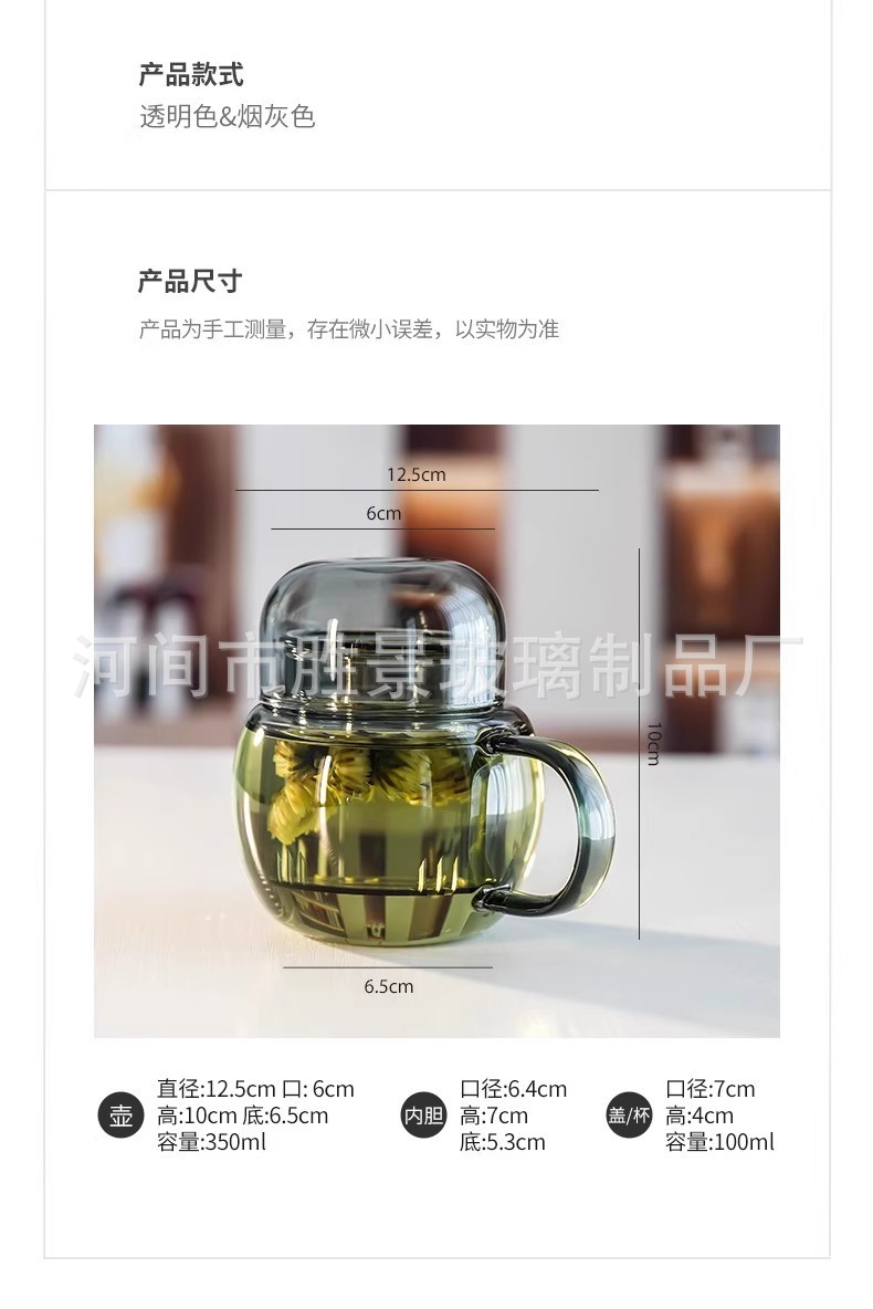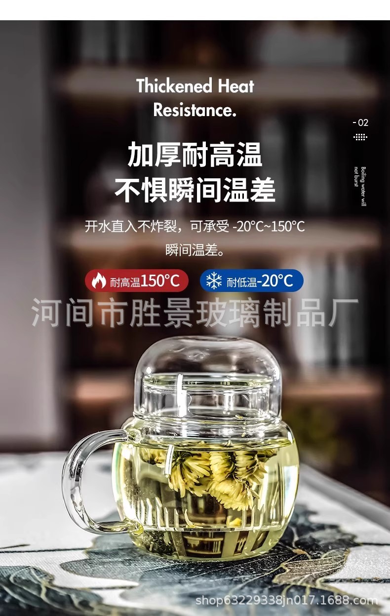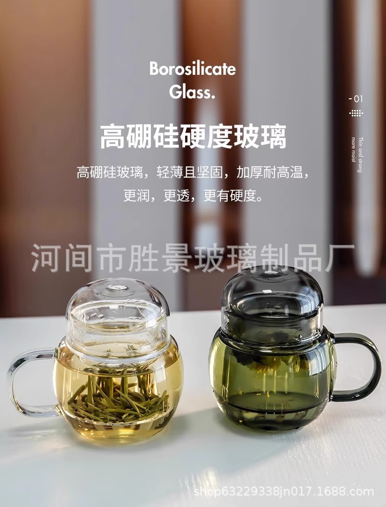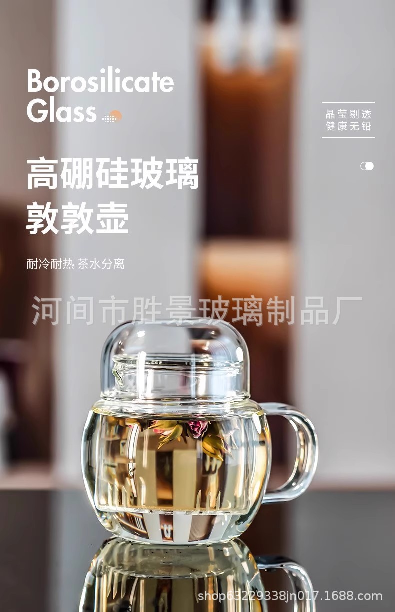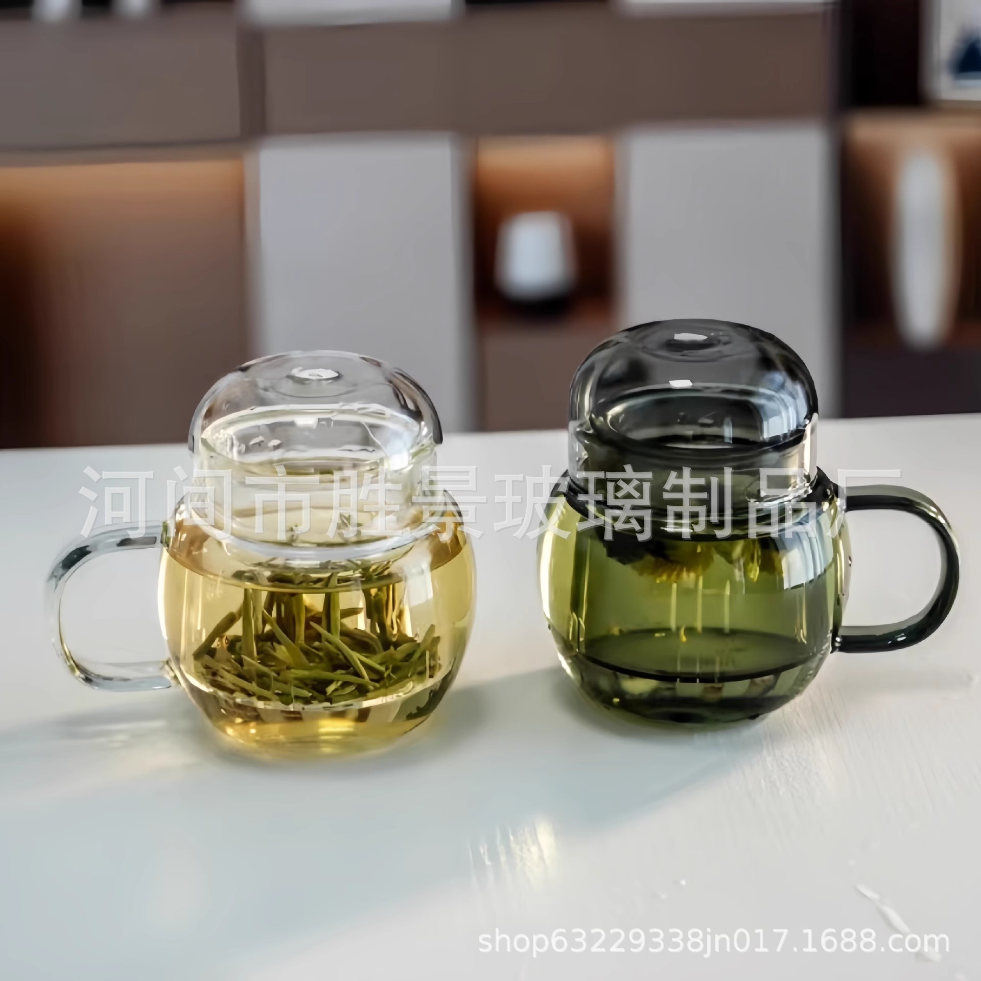 Dundun 컵 고붕규산 유리 미니 찻잔, 손잡이가 있는 차와 물 분리 가능, 가정용 식수용 3피스 컵