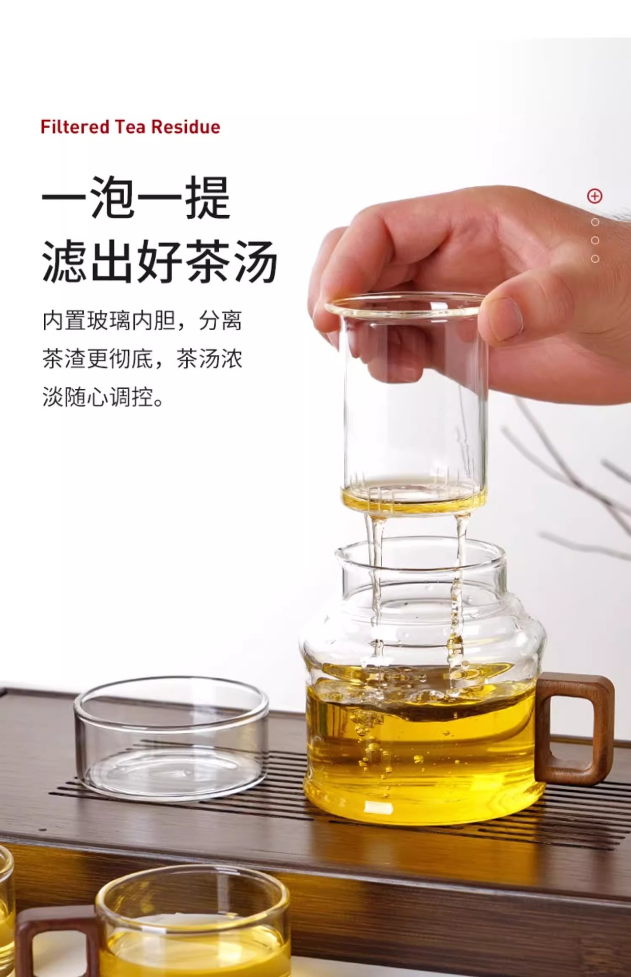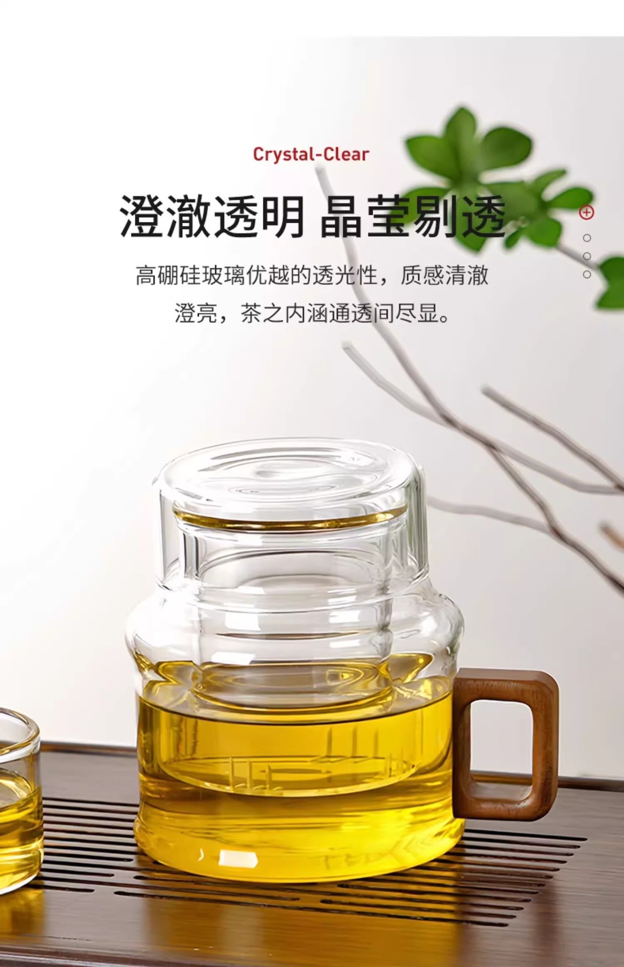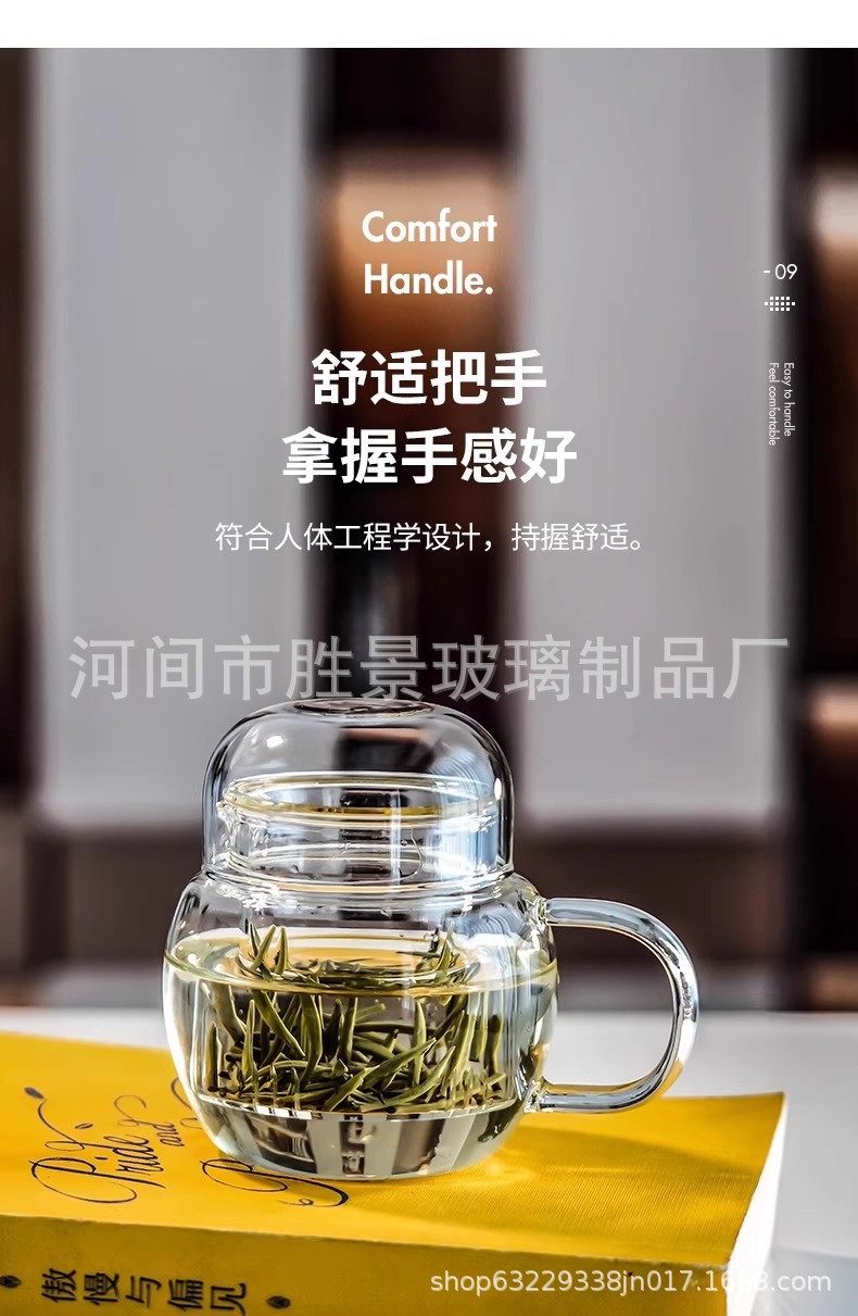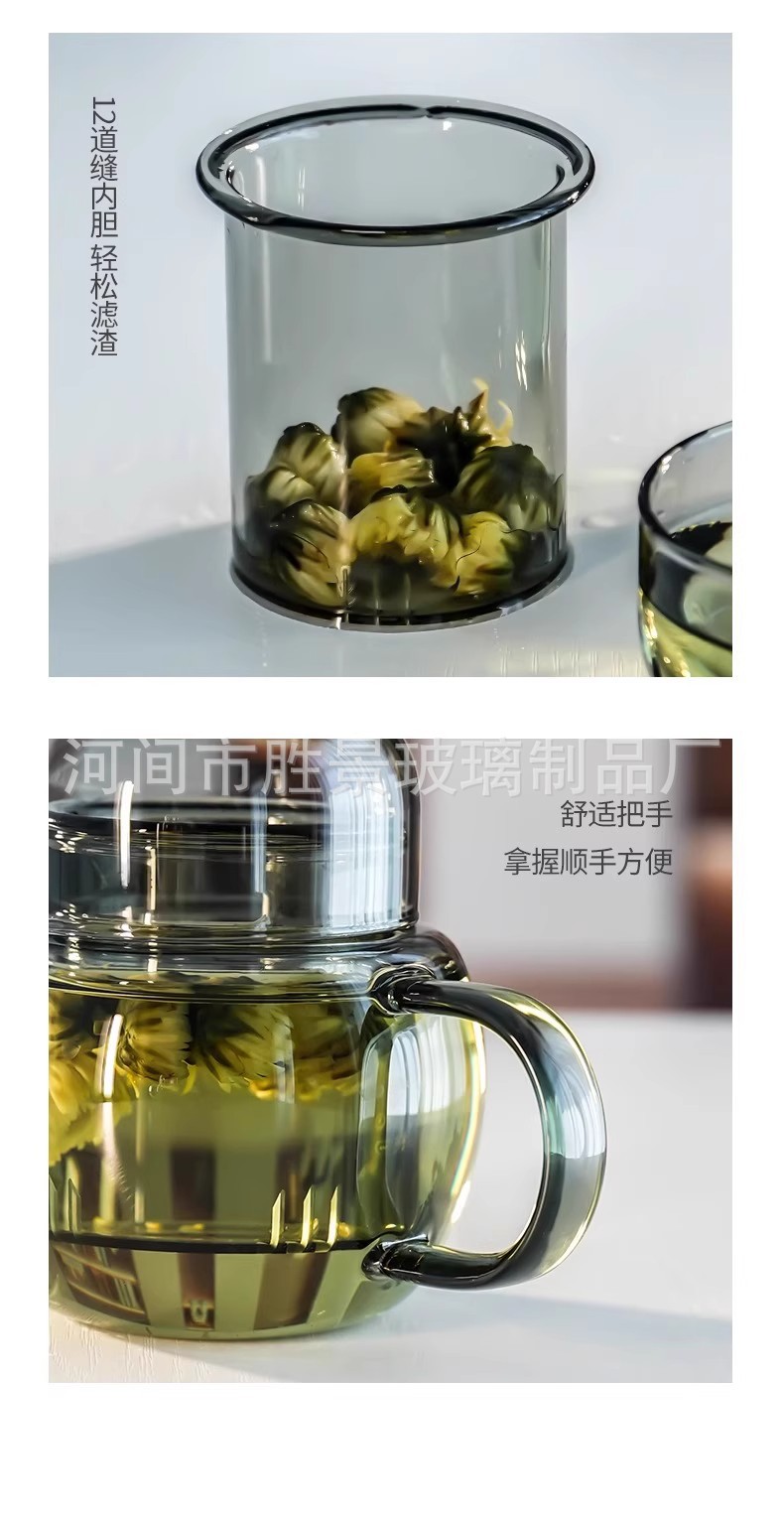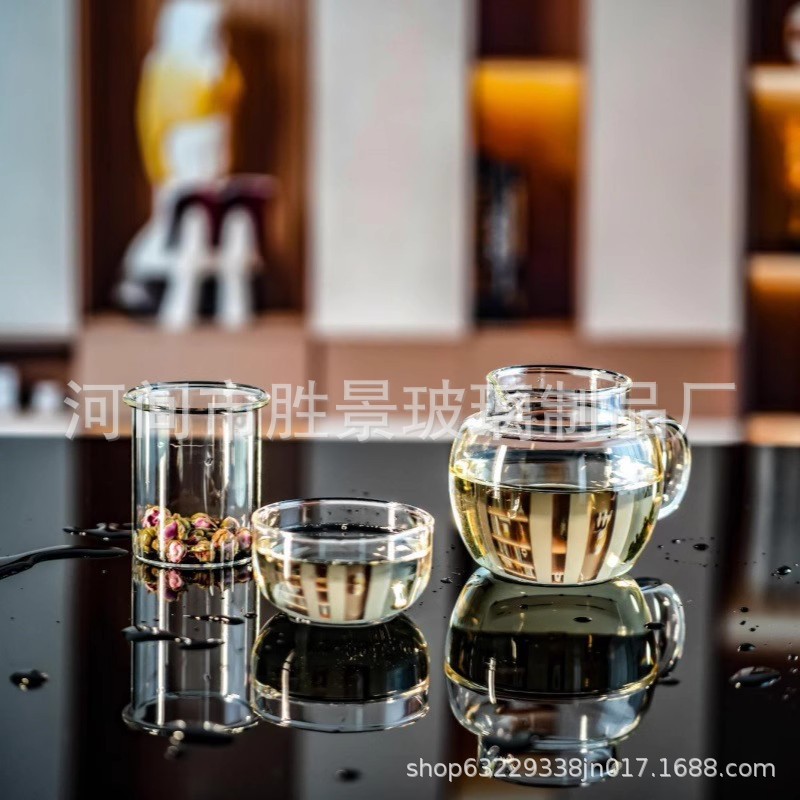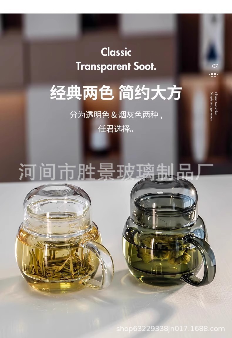 Dundun 컵 고붕규산 유리 미니 찻잔, 손잡이가 있는 차와 물 분리 가능, 가정용 식수용 3피스 컵