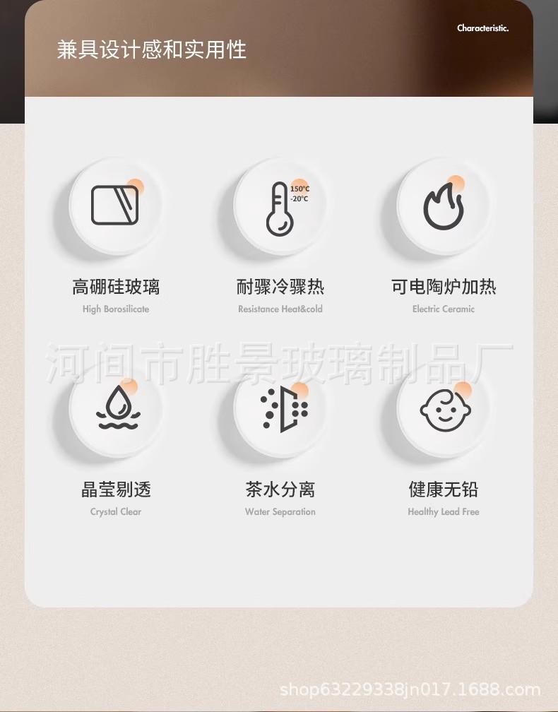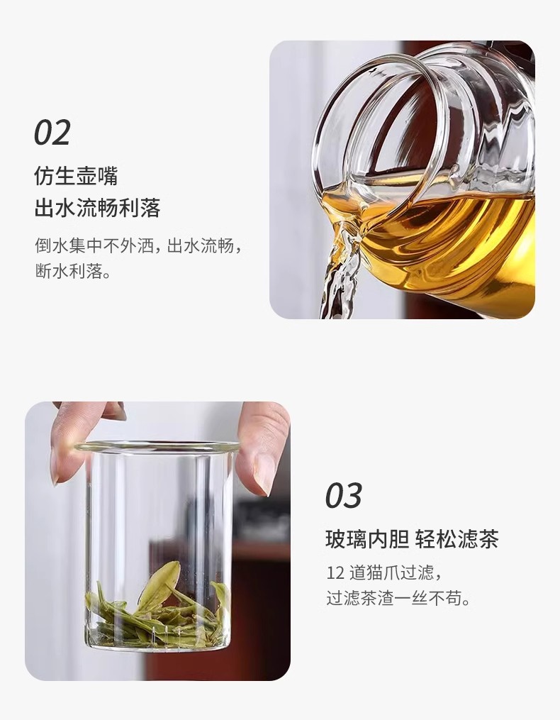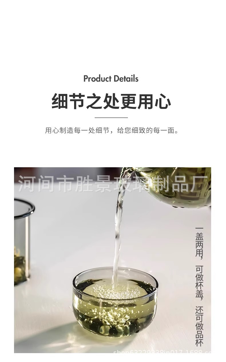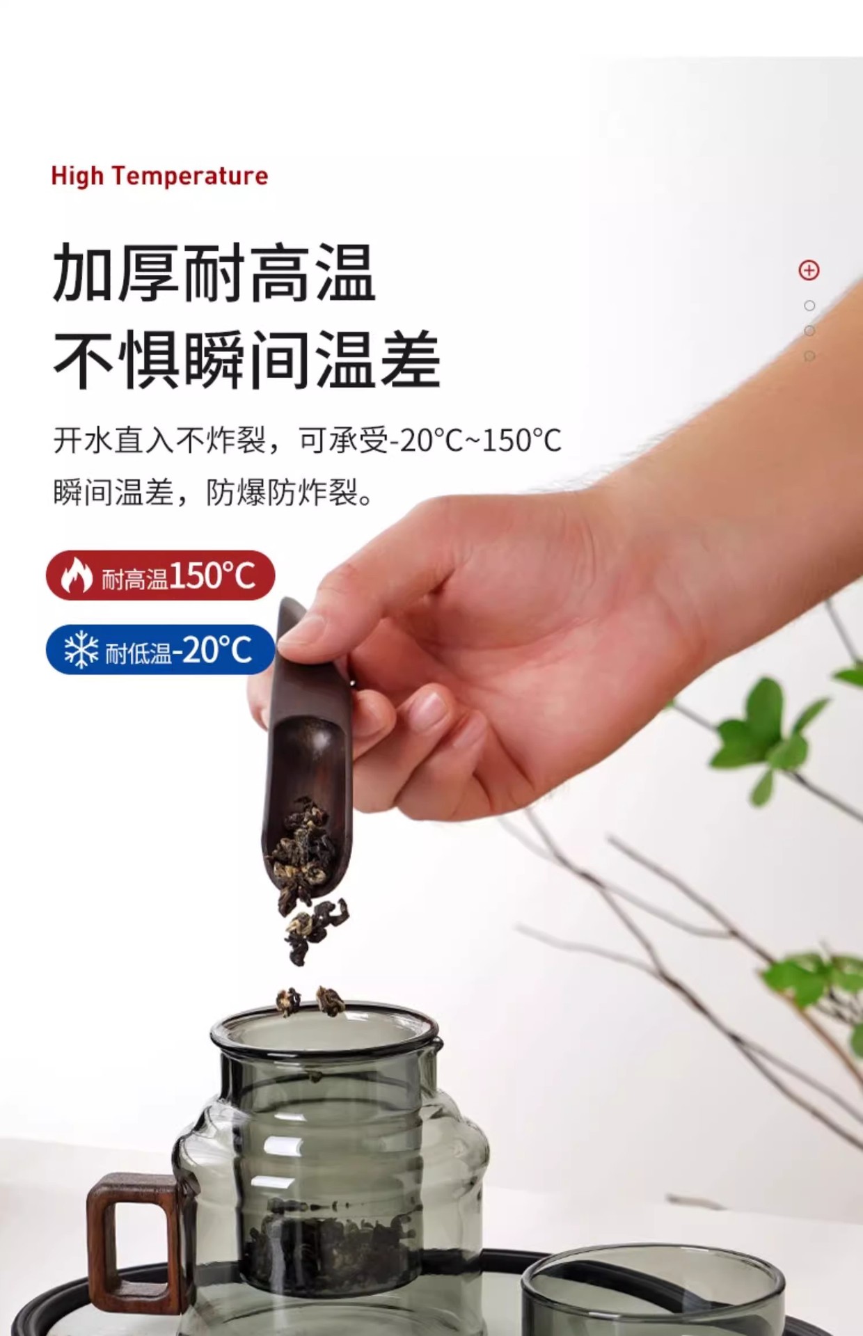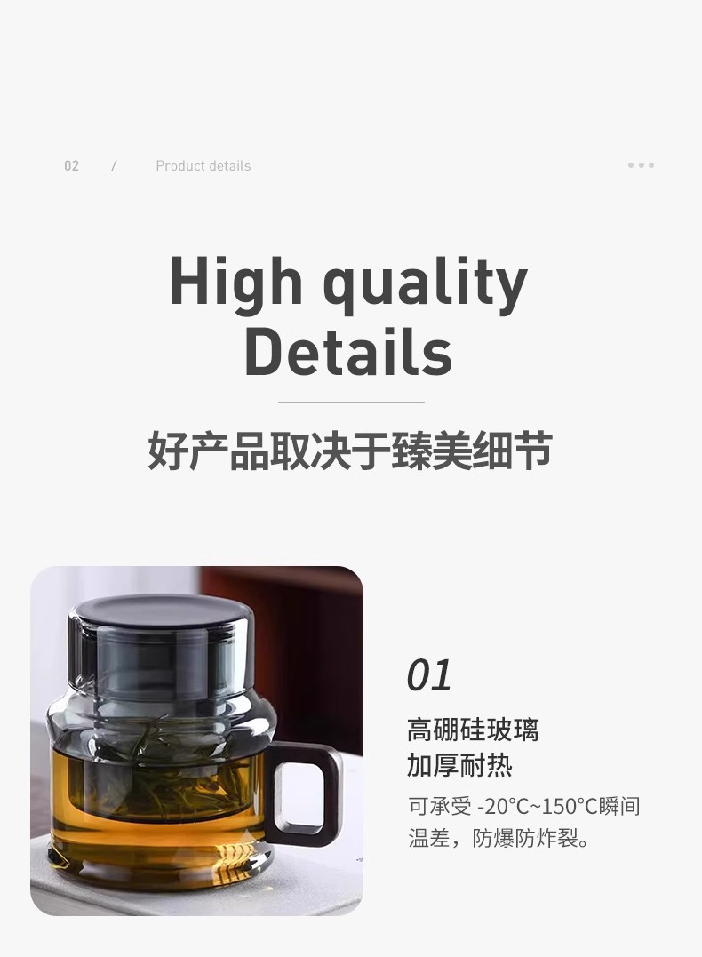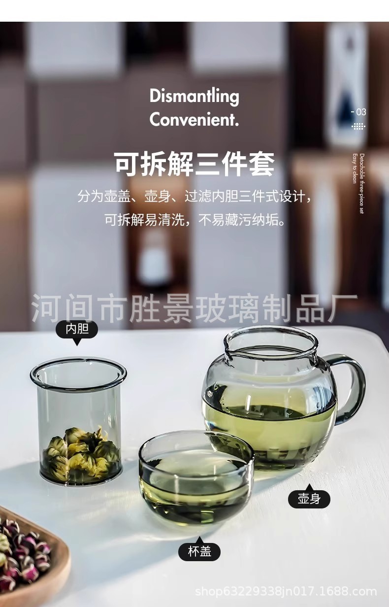 Dundun 컵 고붕규산 유리 미니 찻잔, 손잡이가 있는 차와 물 분리 가능, 가정용 식수용 3피스 컵