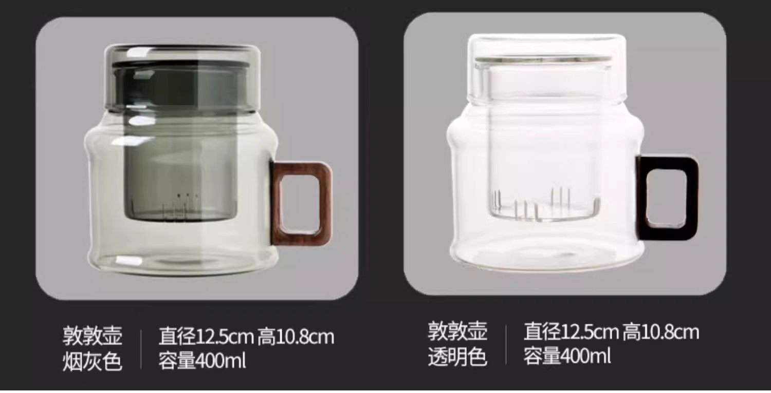 Dundun 컵 고붕규산 유리 미니 찻잔, 손잡이가 있는 차와 물 분리 가능, 가정용 식수용 3피스 컵스토어 가기